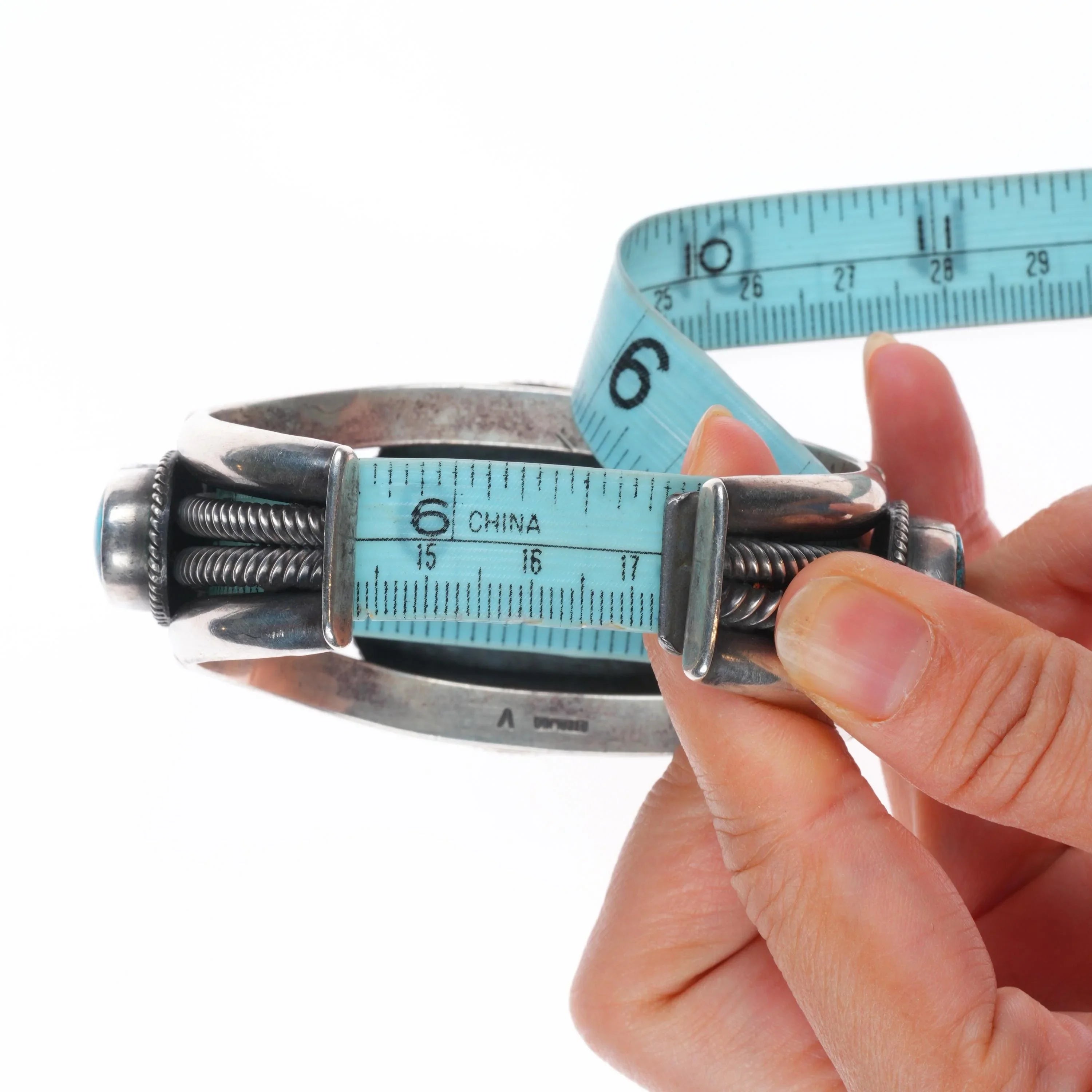 6.75" Verdy Jake Navajo Smoky Bisbee turquoise sterling silver cuff bracelet. Tested and guaranteed solid sterling silver with weight and measurements in pictures. High grade Arizona Bisbee natural turquoise, side pieces with a rare spiderweb matrix. Circa last quarter of the 20th century to early 21st century. Verdy Jake (one of the many working female Navajo silversmiths) grew up in a family with thirteen children. Her oldest brother began silverwork and then taught the rest of his siblings, including Verdy. She has been active since the 1990’s. Her hallmark is a "V" or "Verdy". Verdy lives at Smith Lake on the Navajo reservation. She is in her thirties and has four children.