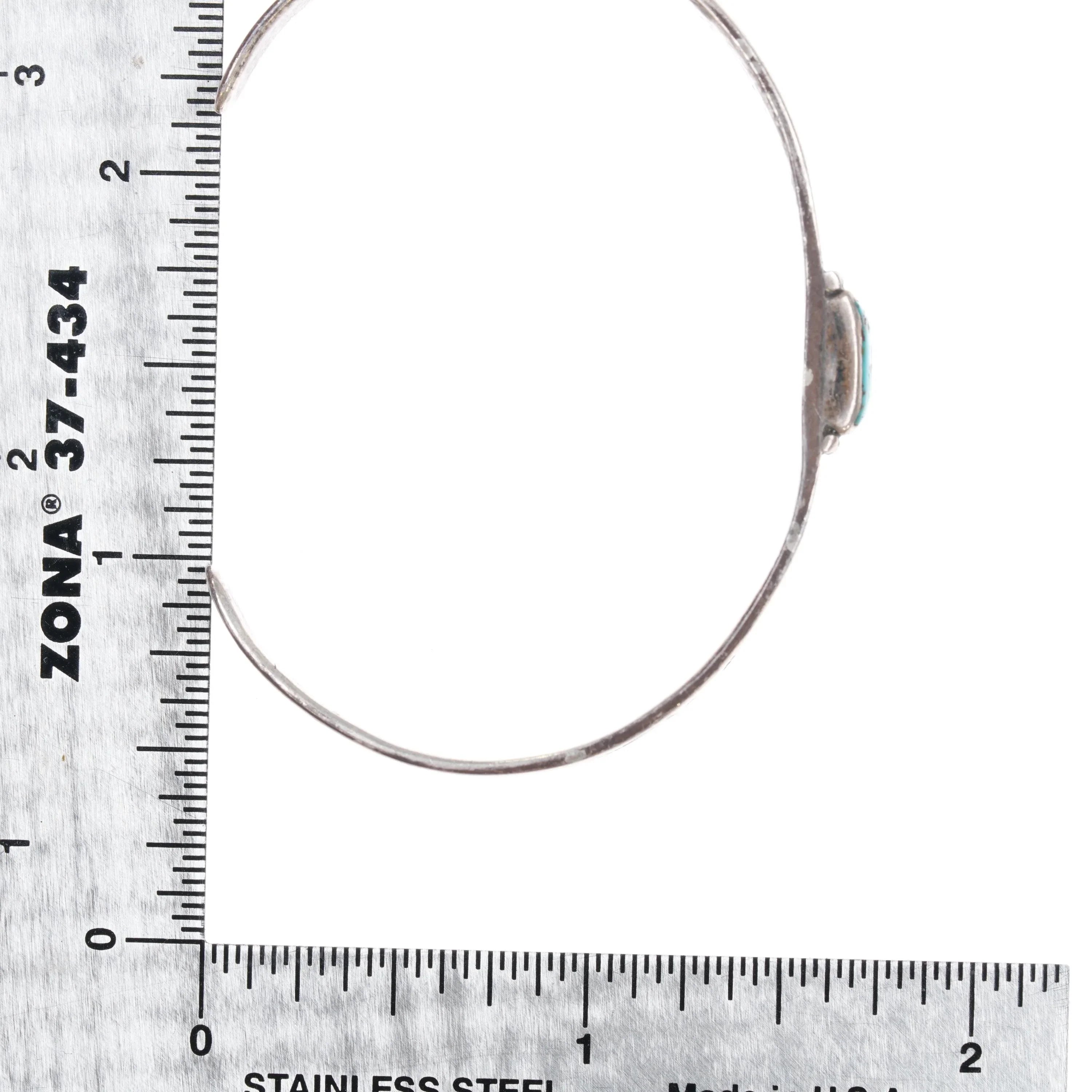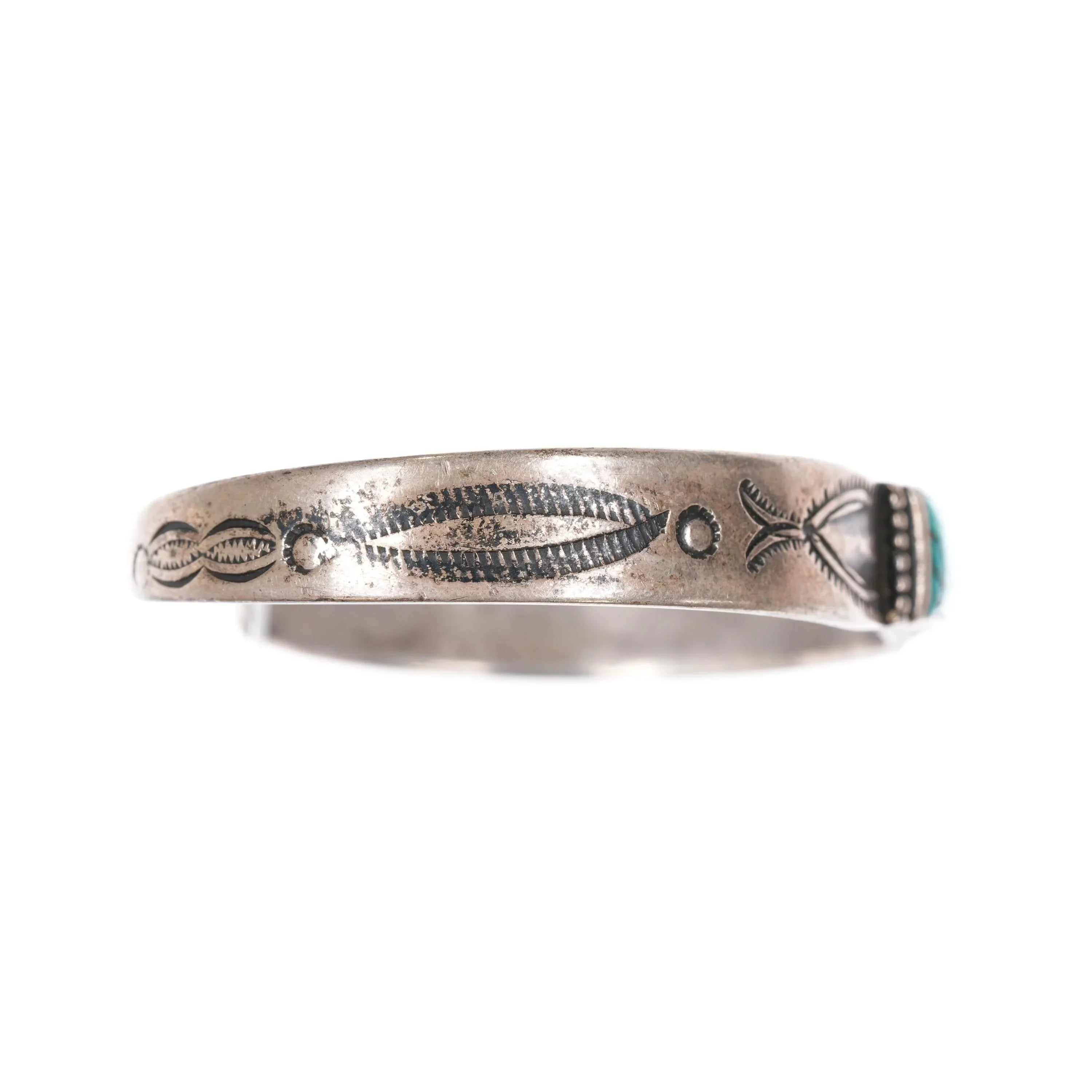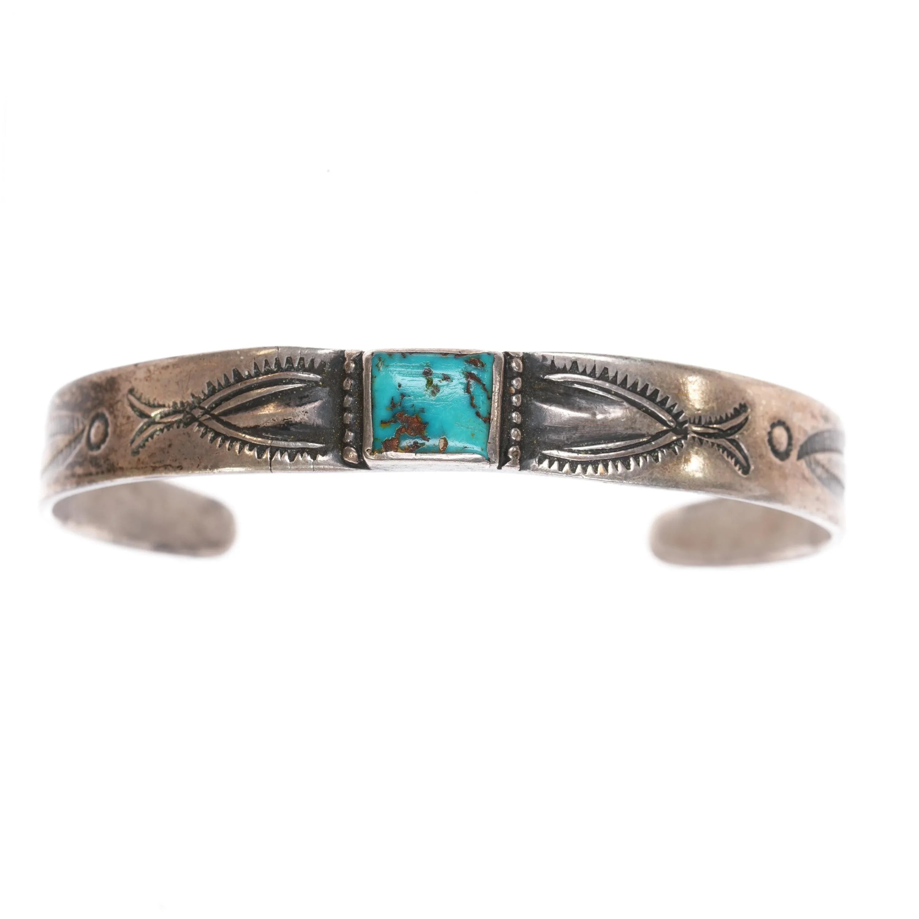 6" c1920's Navajo ingot silver cuff bracelet with turquoise