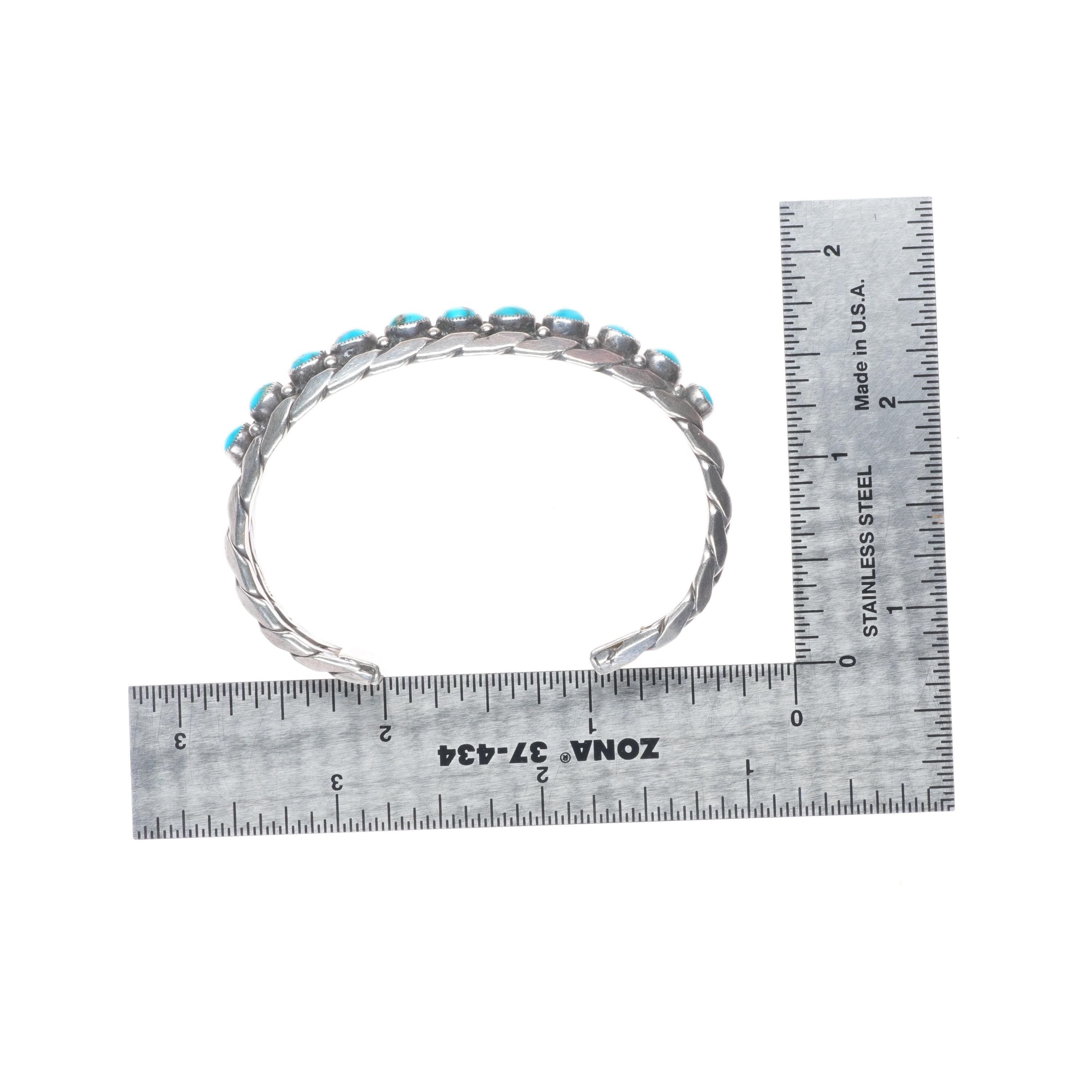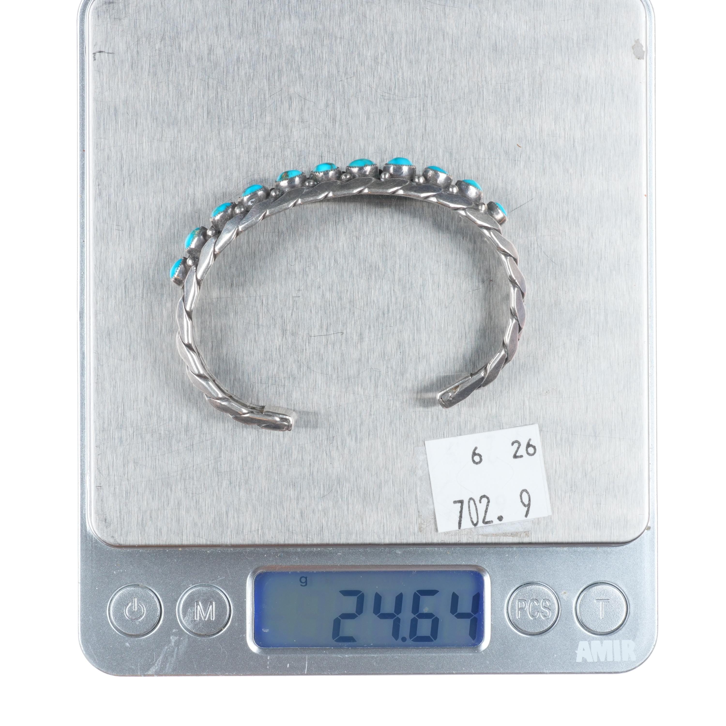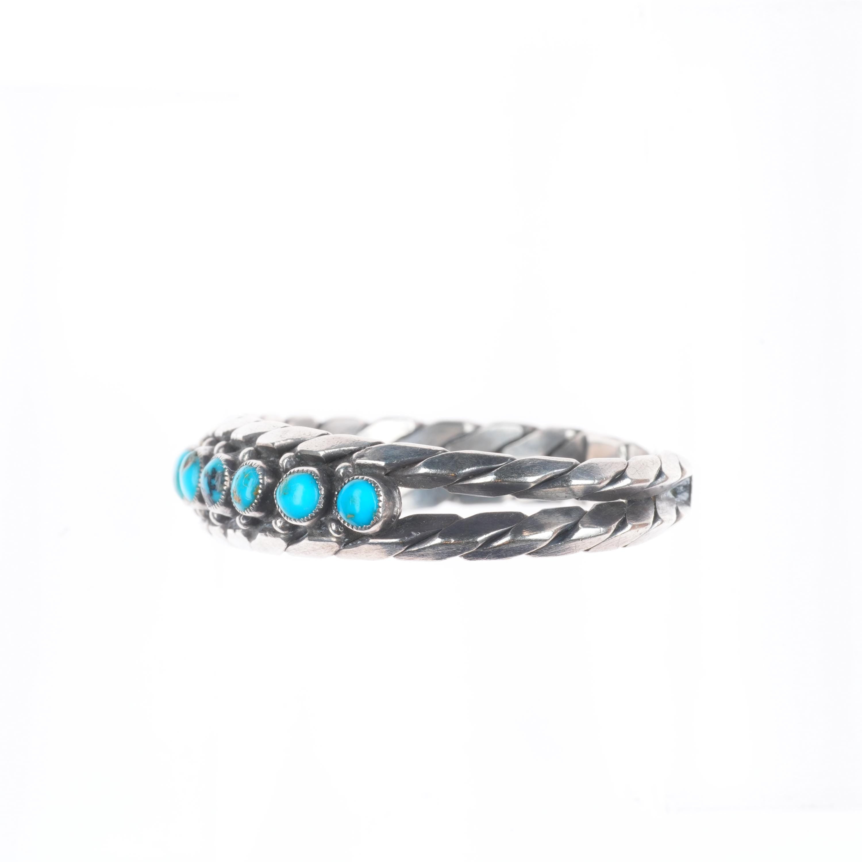 6" c1930's Zuni sterling silver high grade snake eye turquoise cuff bracelet. Beautiful natural turquoise, tested and guaranteed solid sterling silver with weight and measurements in pictures. Overall expected wear circa second quarter of the 20th century. From a high end collection of historic Navajo and Zuni jewelry.