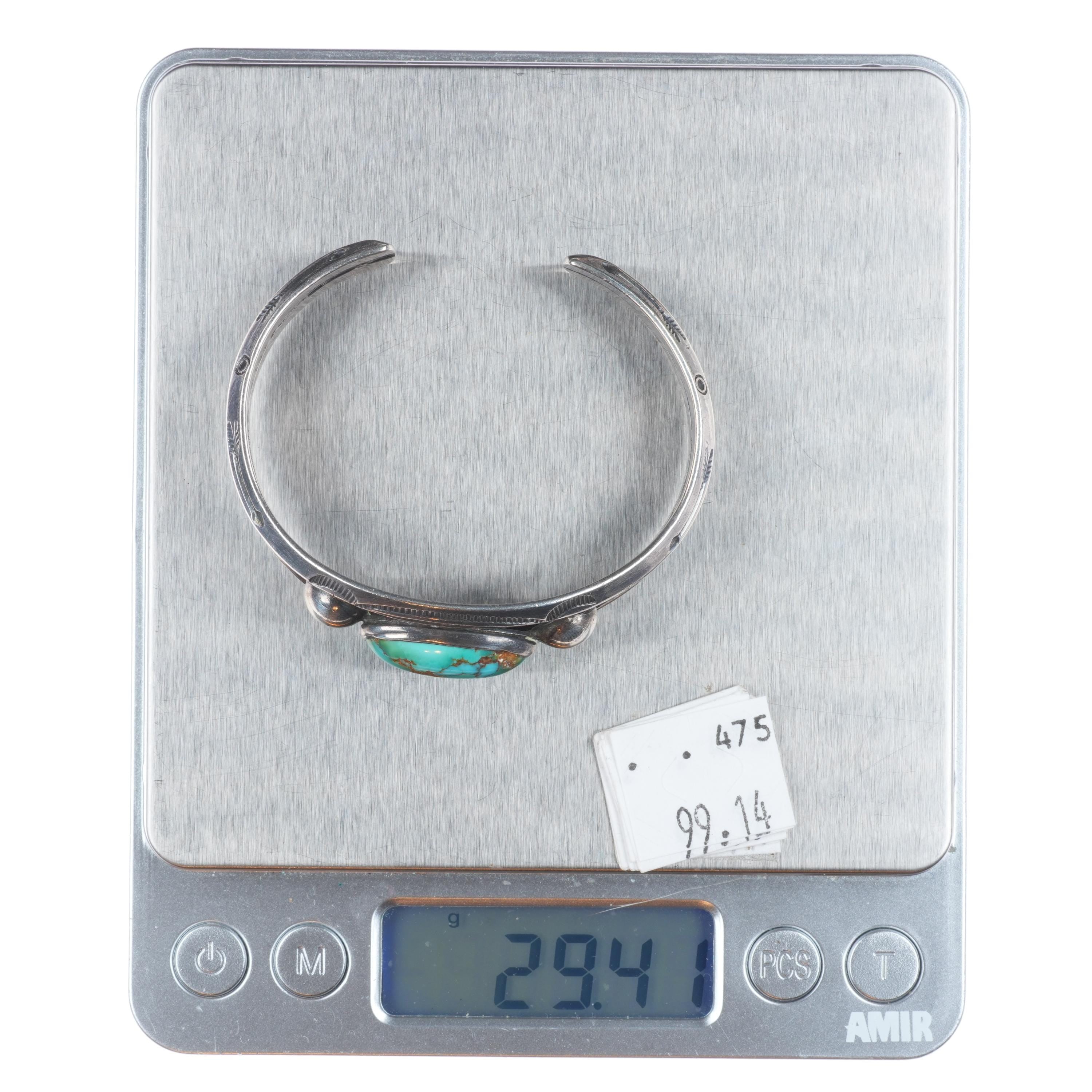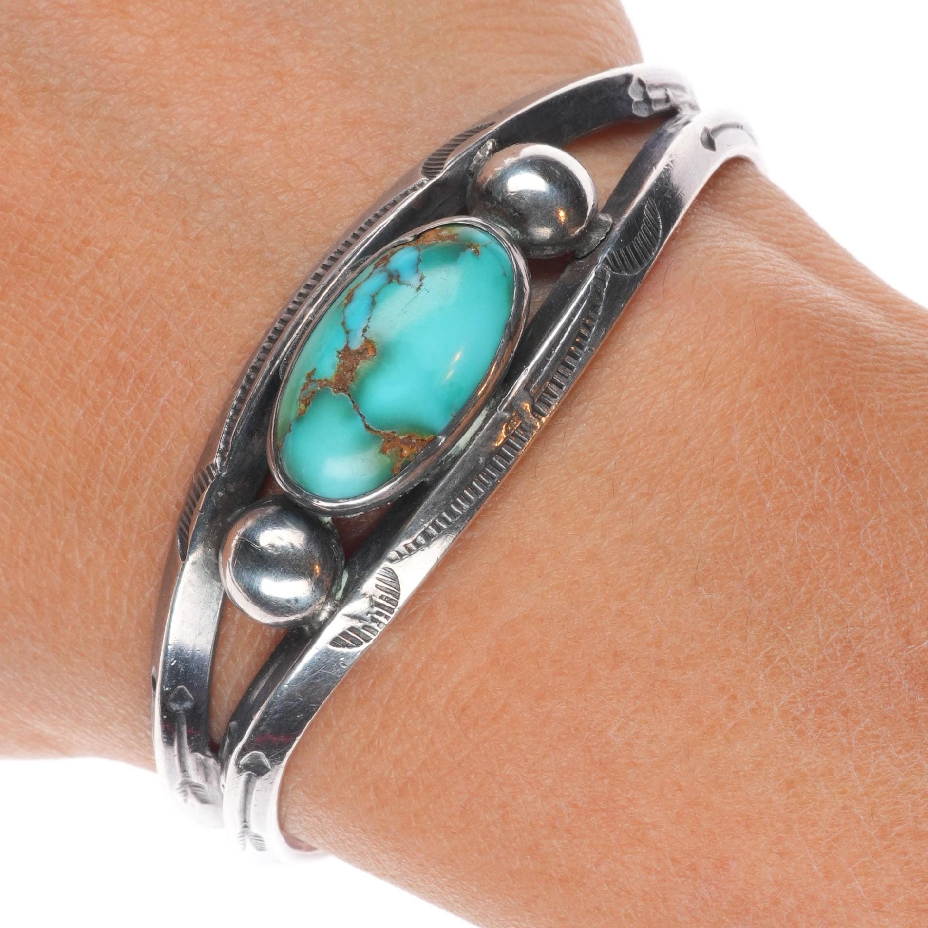 6" c1940's Navajo Royston turquoise carinated sterling silver cuff bracelet