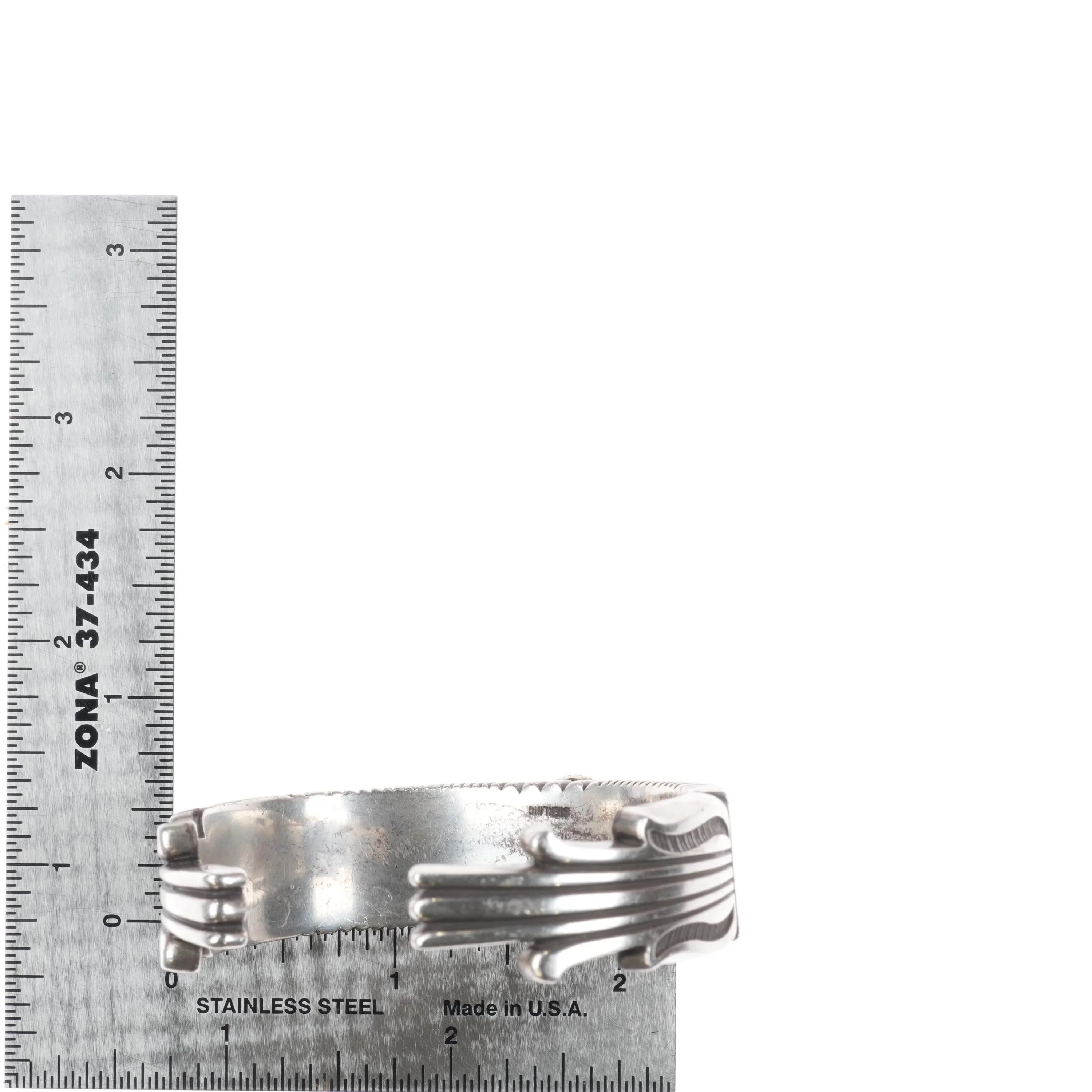 Elegant, chiseled silverwork defines Ron Bedonie‘s fine Navajo jewelry. His buckles, bracelets, bolas, and concha belts are distinguished by extraordinary stamping and chiseling--work that earned him many first-prize ribbons over the years at the Gallup Inter-Tribal Indian Ceremonial competition.