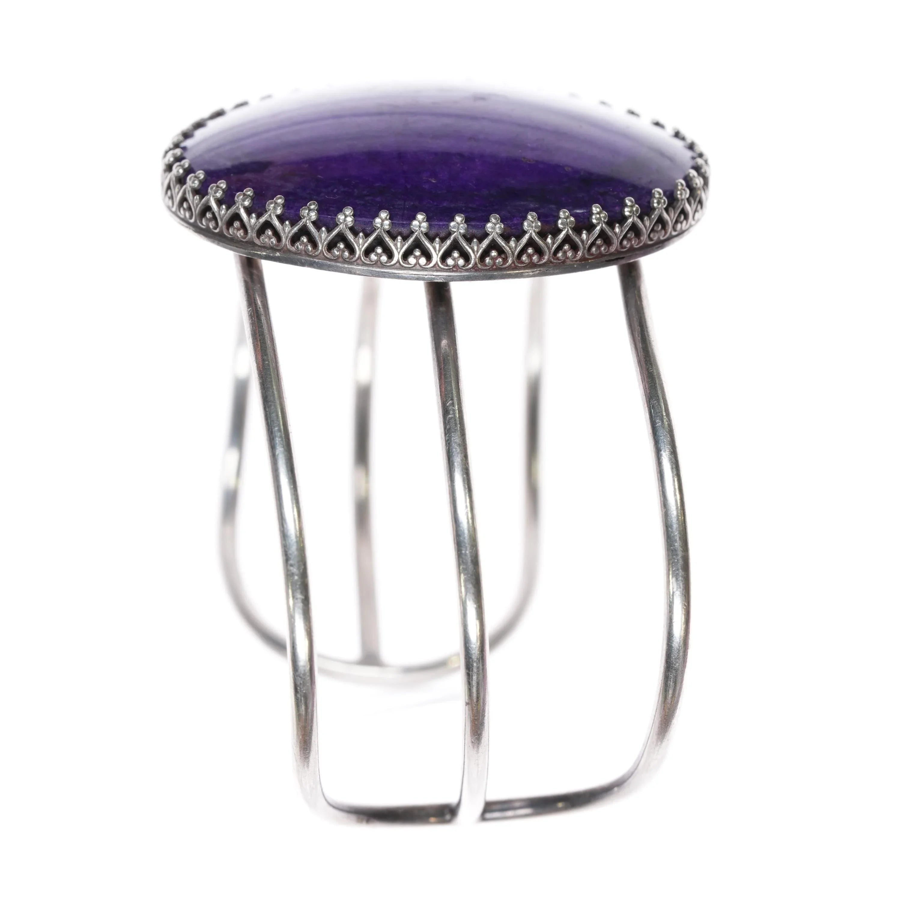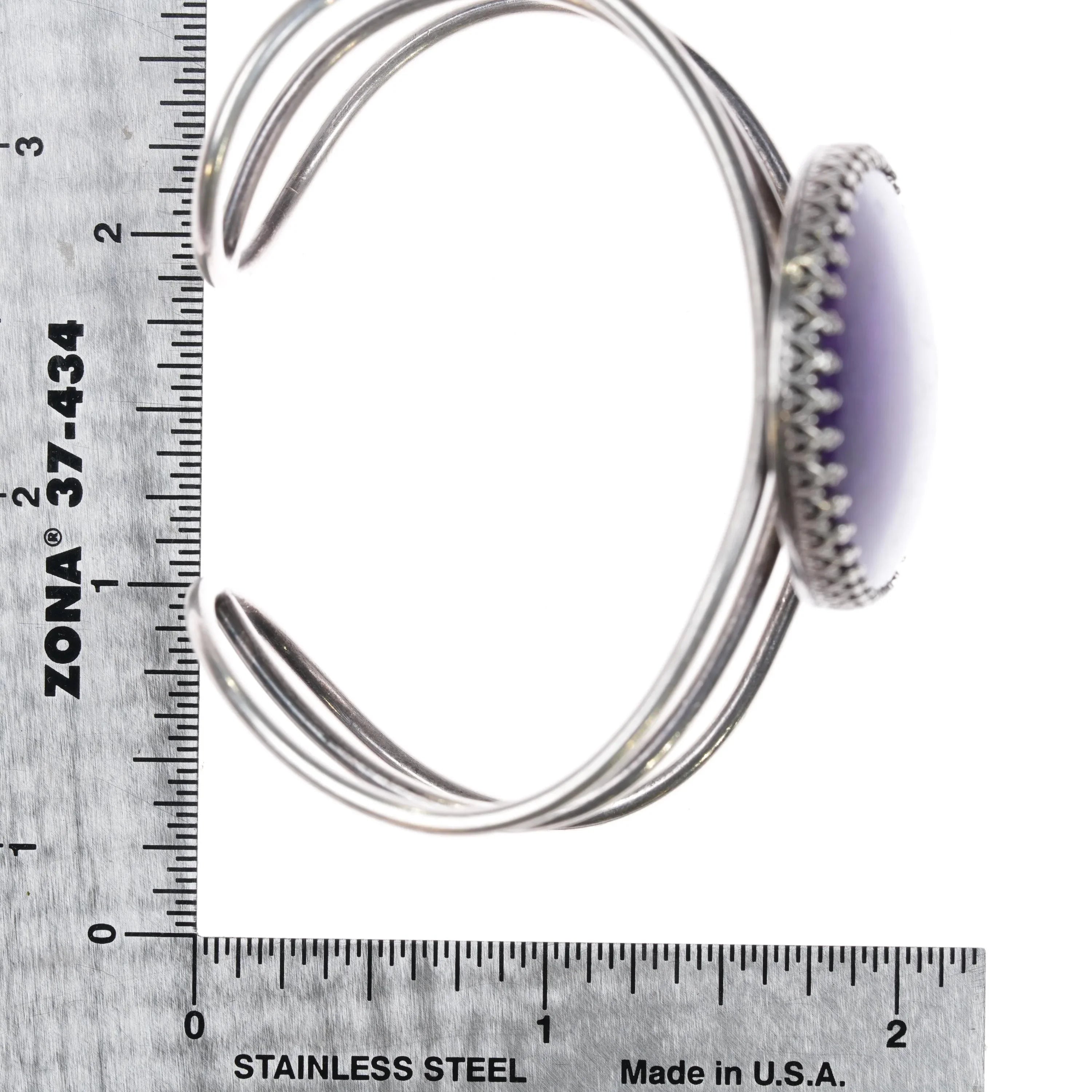 6" RV Vintage Sugilite sterling silver cuff bracelet. Weight and measurements in pictures, solid sterling silver with no issues. Minimal wear circa last quarter of 20th century.