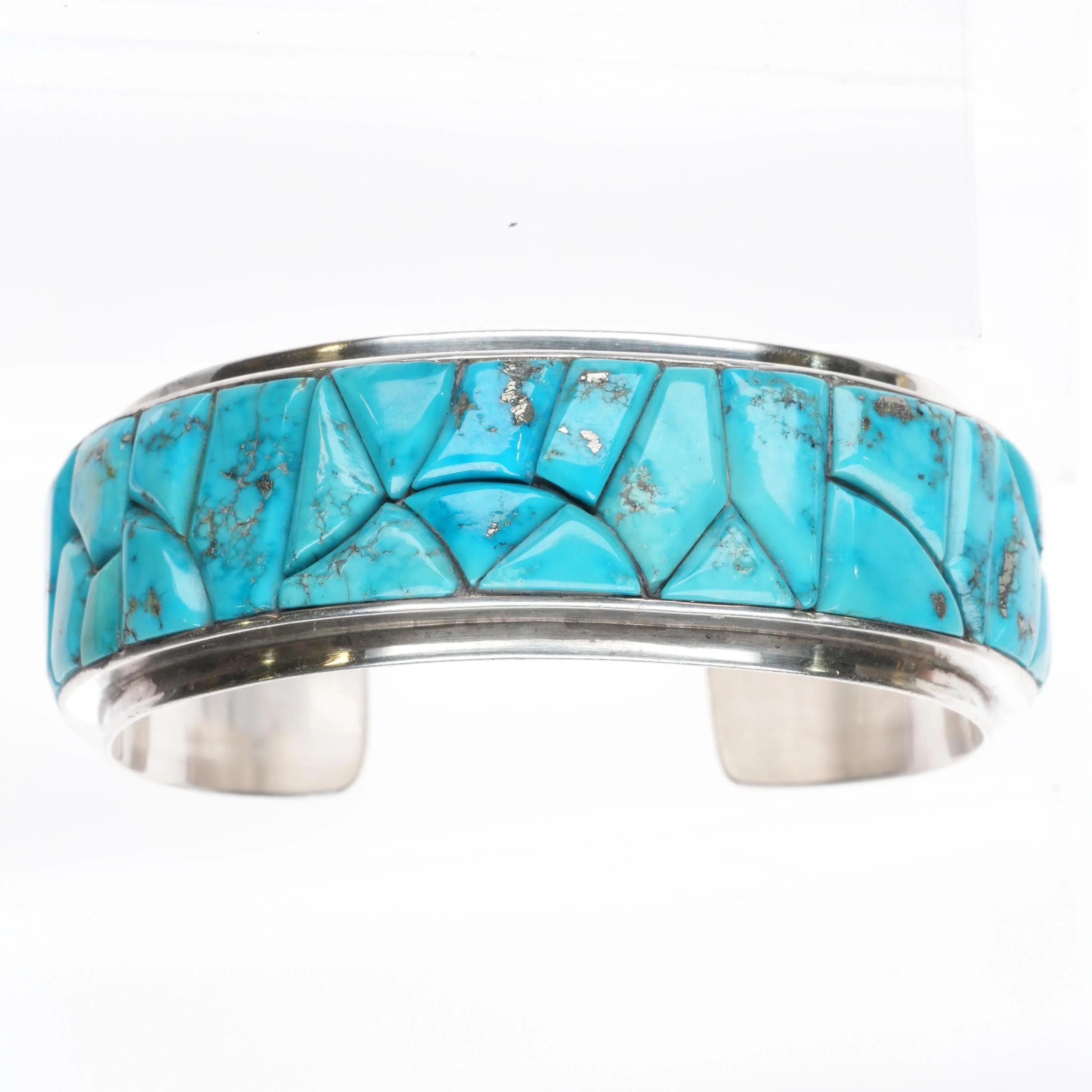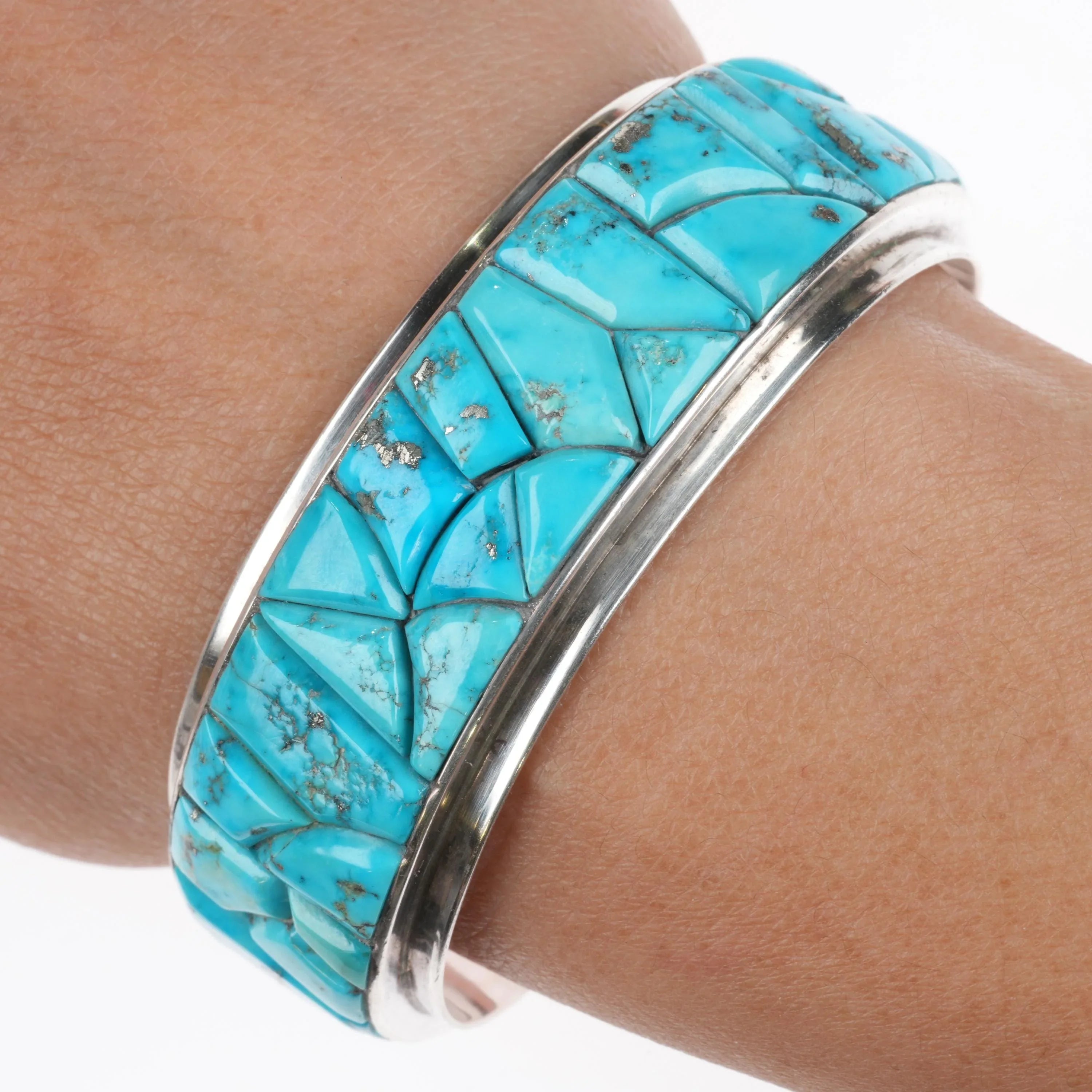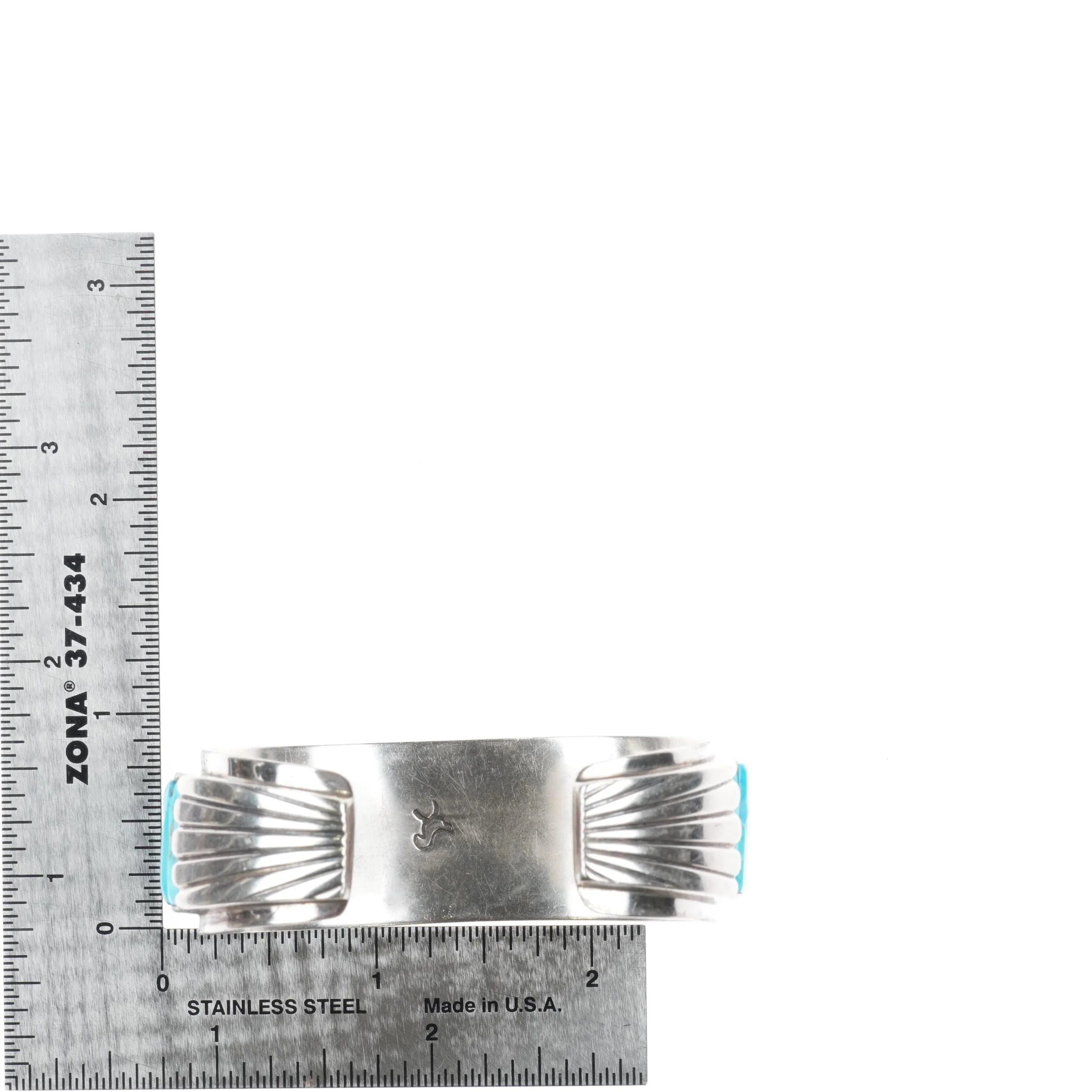 6" Sadie Calvin Navajo Turquoise cobblestone cuff bracelet sterling silver