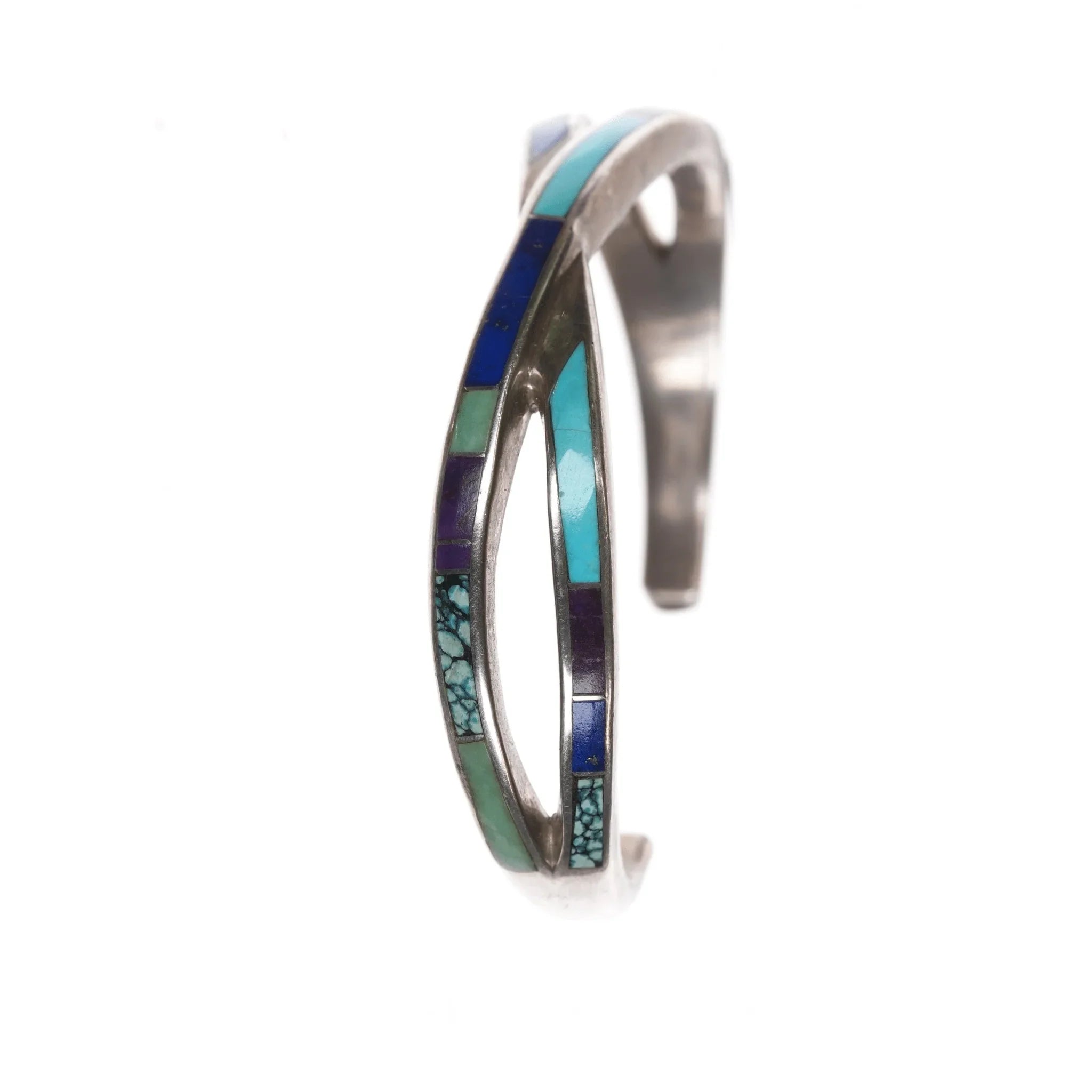 6" Supersmith David Rosales Navajo Sugilite, turquoise, lapis, variscite sterling cuff.