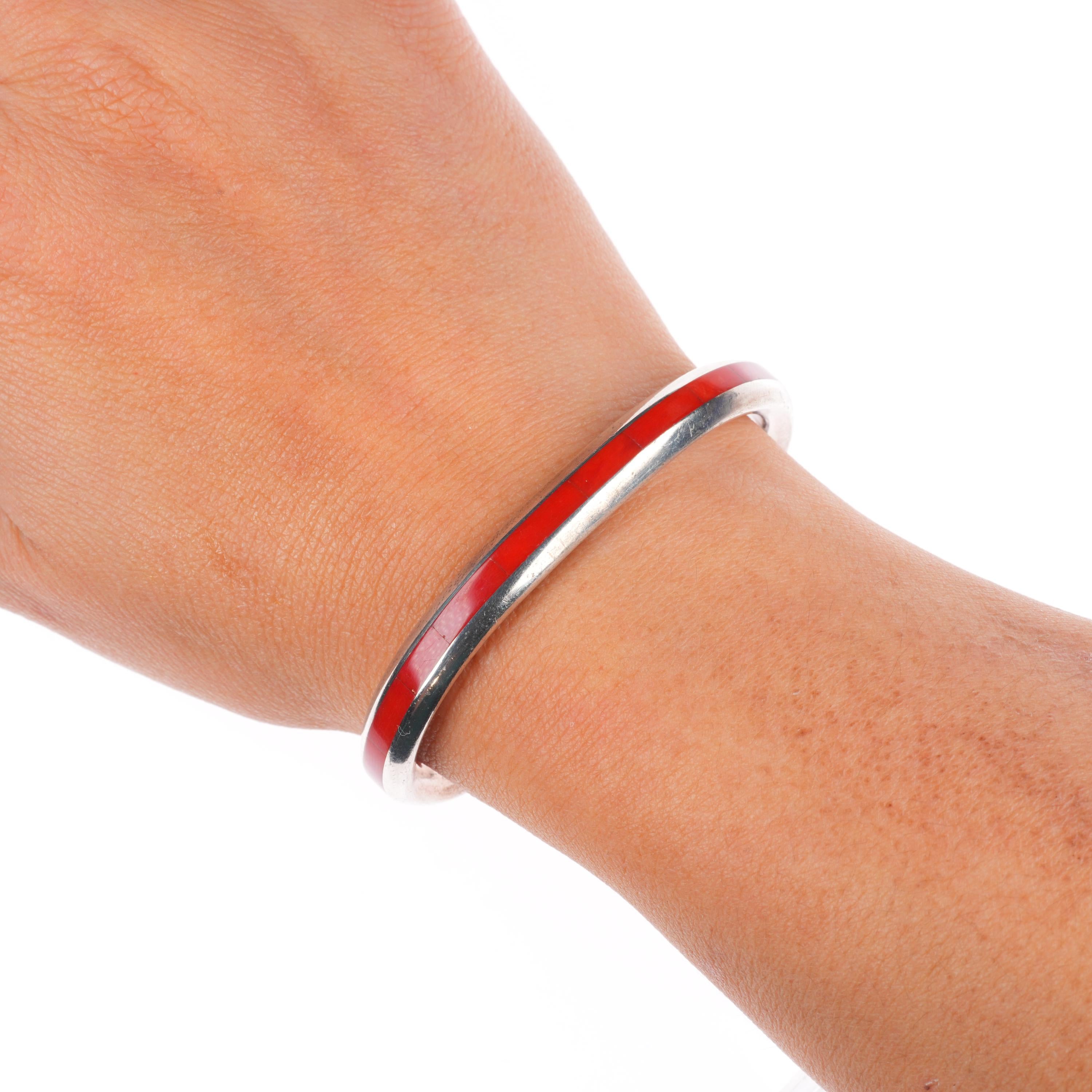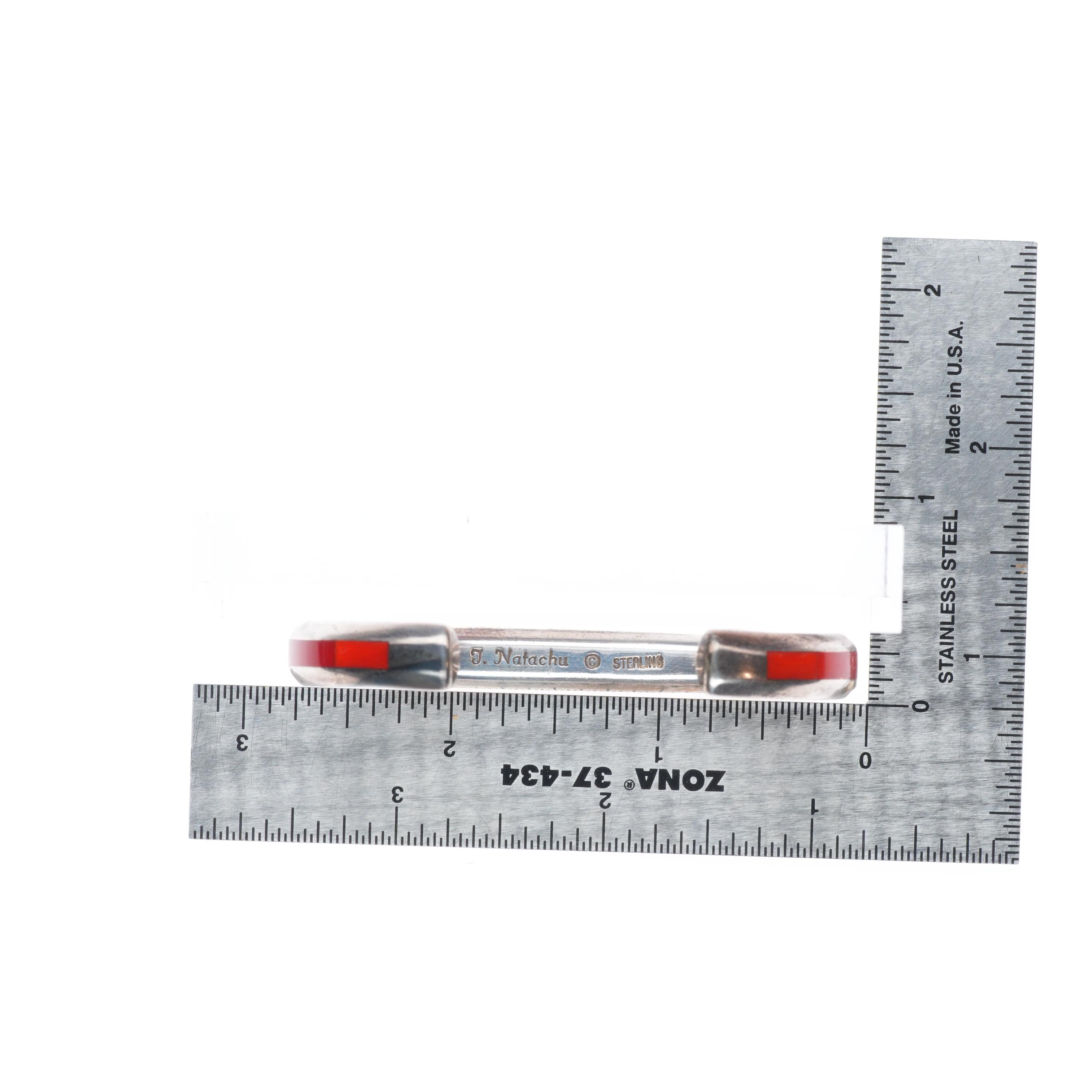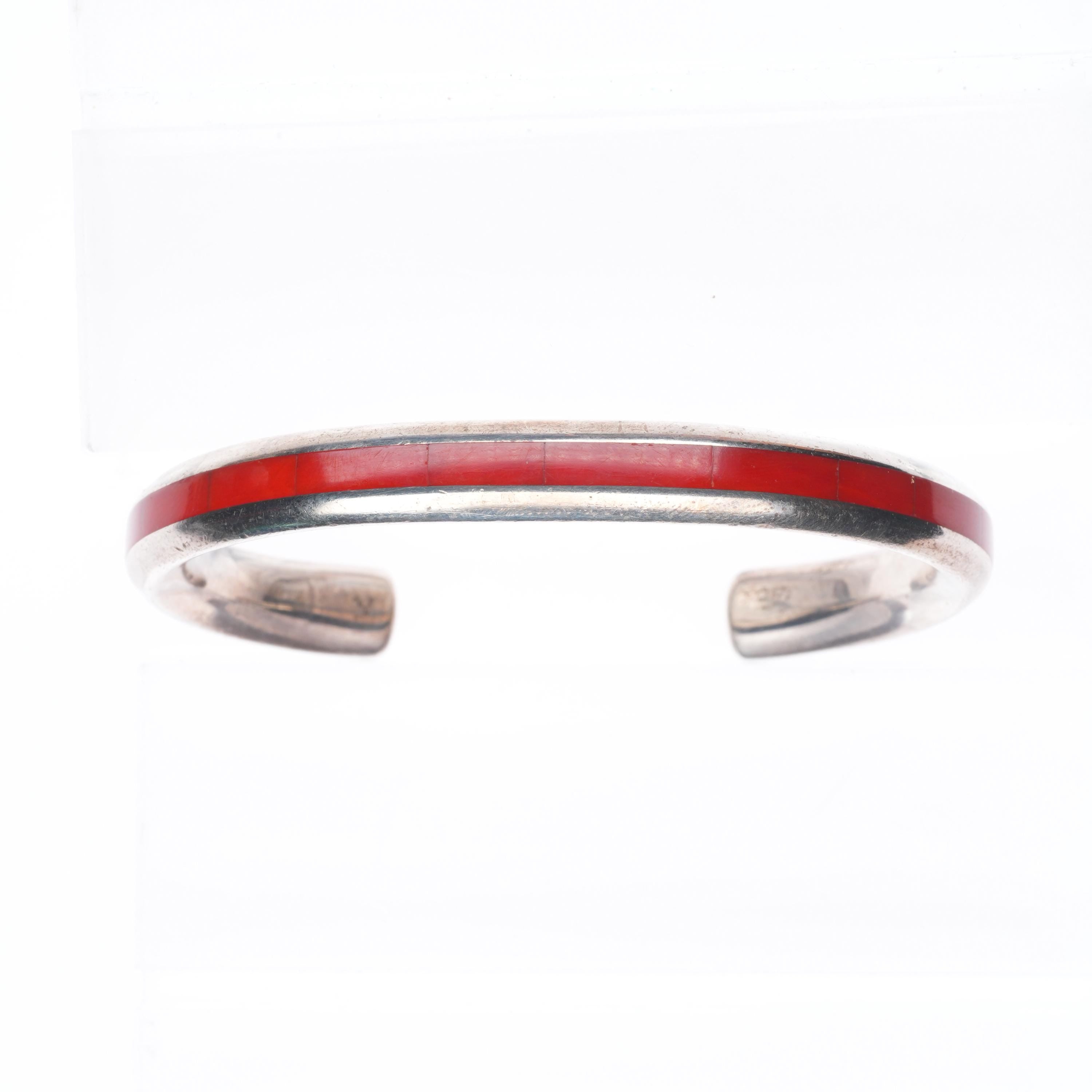 6" Troy Natachu Zuni sterling silver Mediterranean coral inlay cuff bracelet. Tested and guaranteed solid sterling silver with weight and measurements in pictures. Circa third quarter of the 20th century with some expected age appropriate wear.