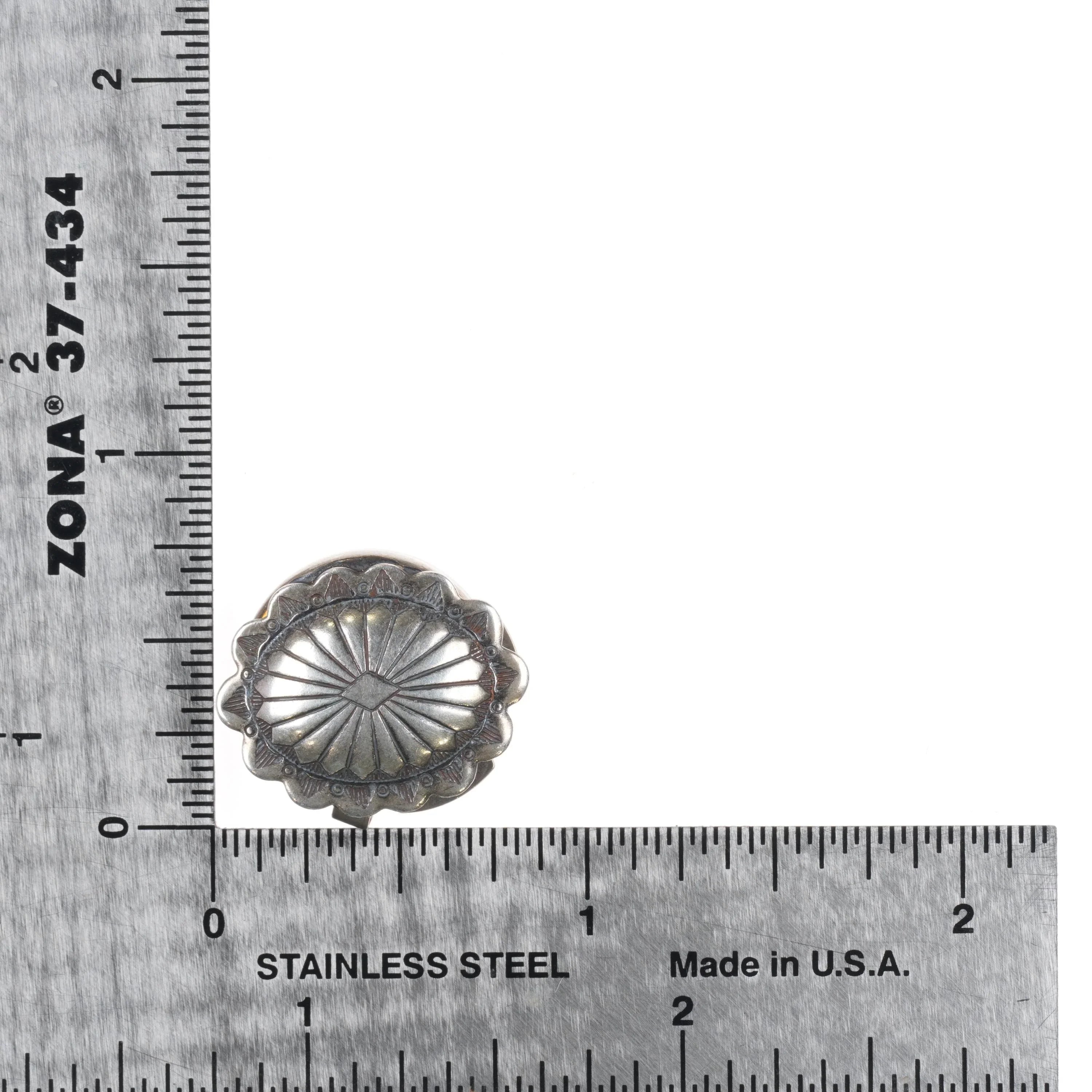 6 Vintage Southwestern sterling silver button covers with concho design. Selling the 6 shown, solid sterling silver fronts with base metal backs which is always the case with these. No issues. Weight and measurements in the pictures.