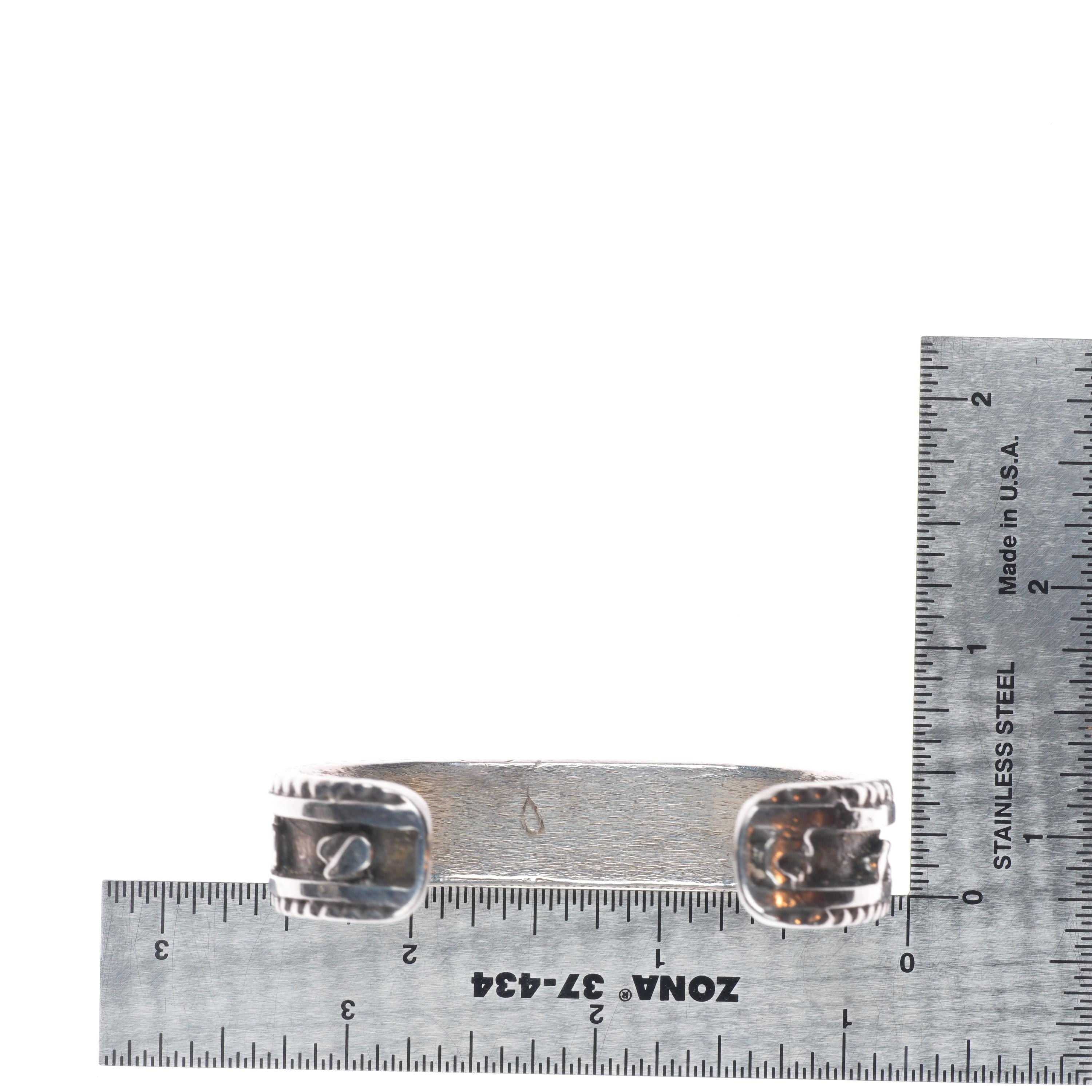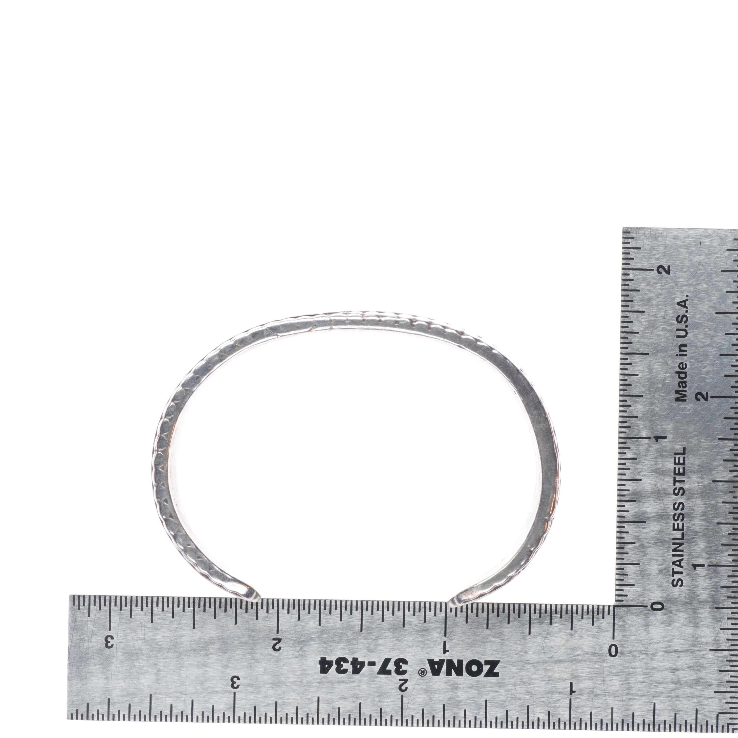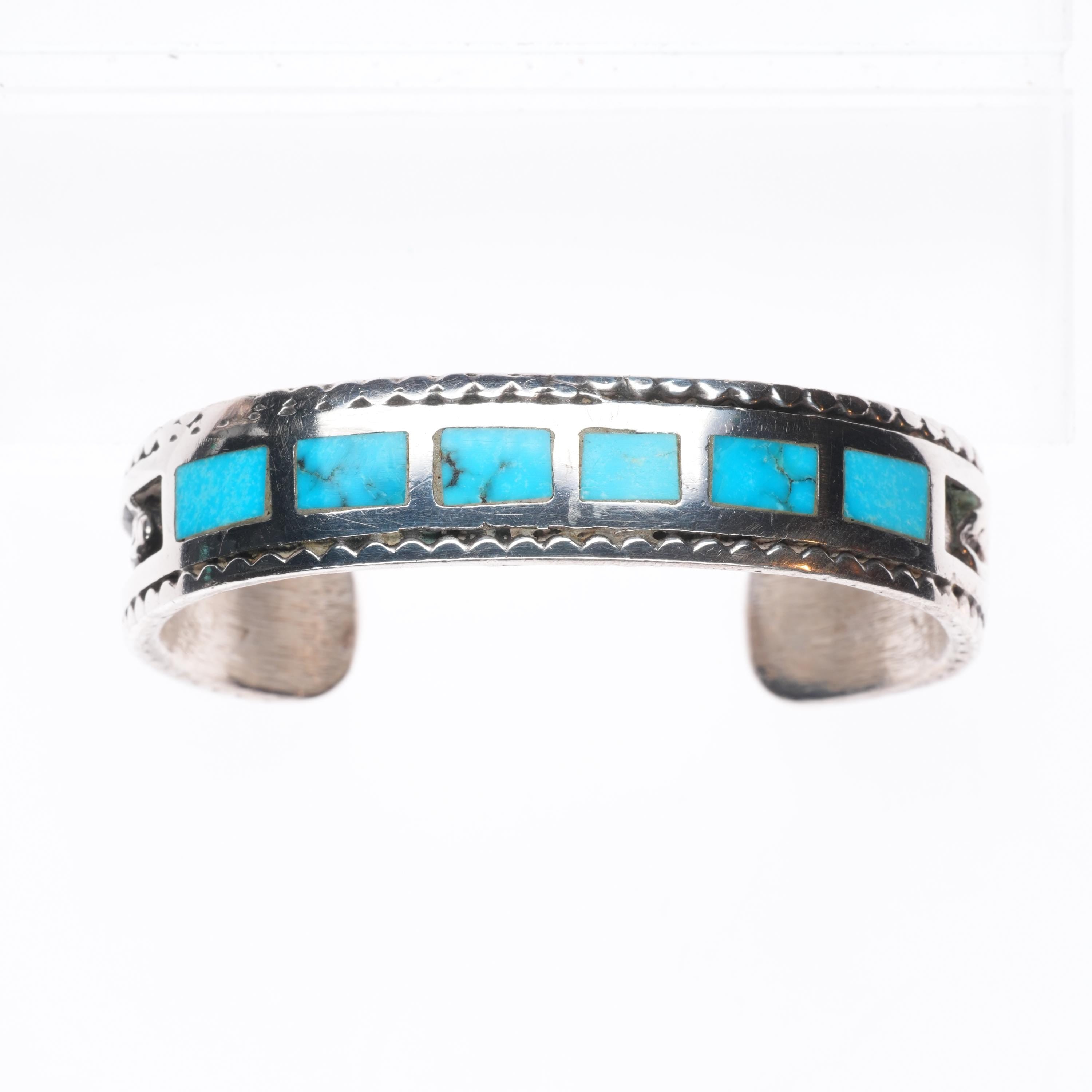 6" Vintage Zuni sterling silver flush channel inlay turquoise row cuff bracelet