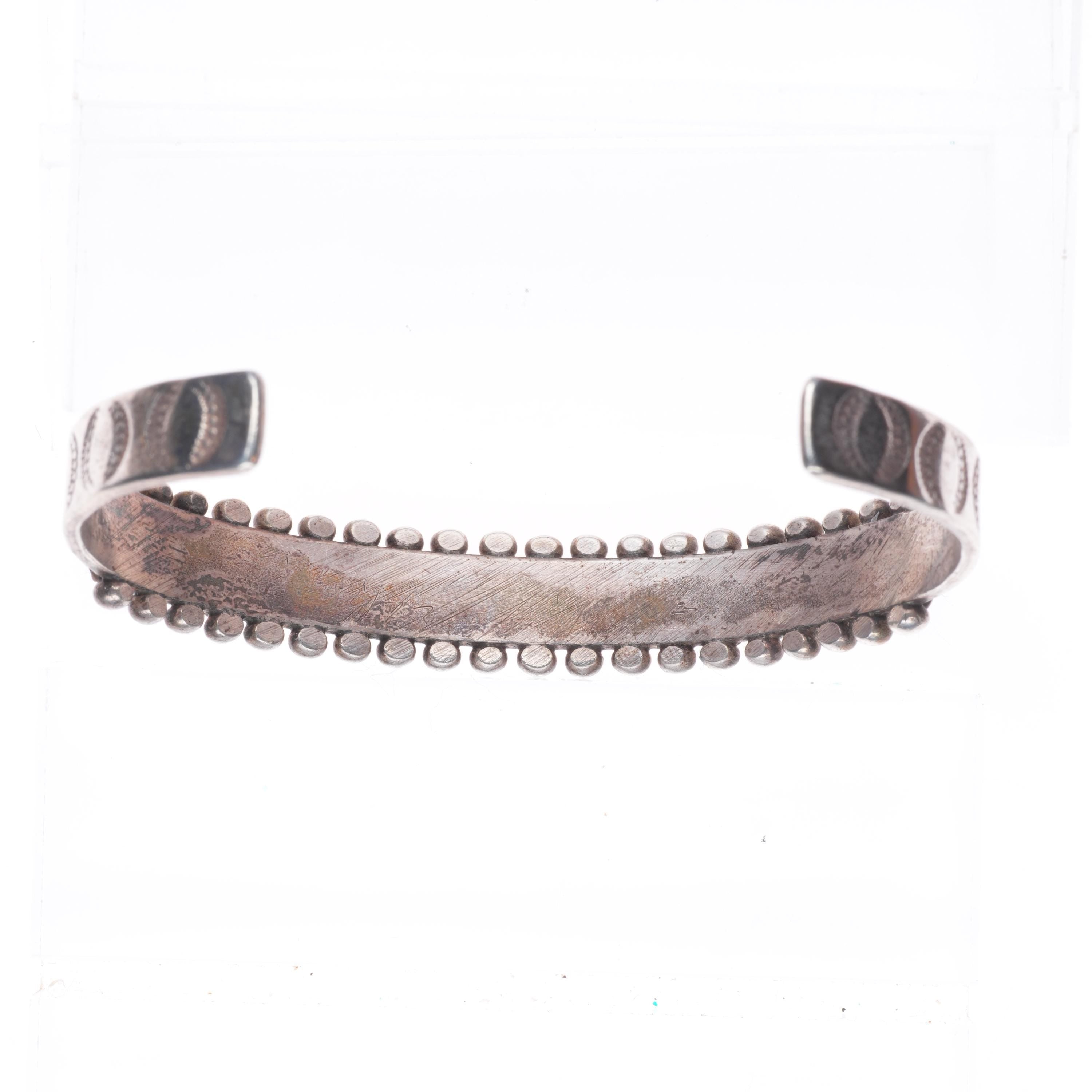 If no maker is mentioned or mark shown in the pictures please assume this piece is unmarked which is to be expected with older Native American silver jewelry. If it‘s hallmarked and I‘m not familiar with the artist most of the time I will just mention the hallmark with no research/attribution as time is everything in our business. Thank you for looking.