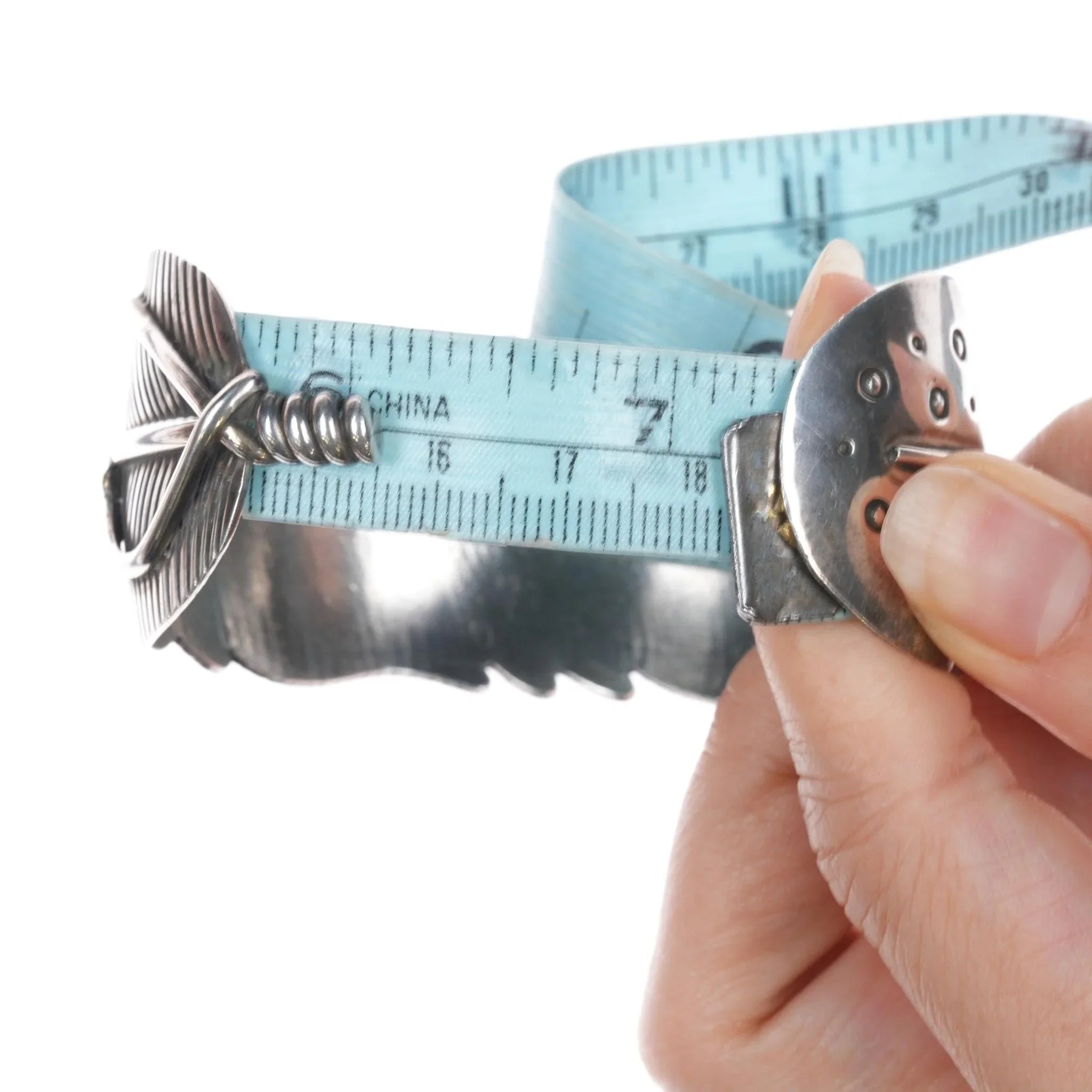 All precious metals are tested and guaranteed, any Native American jewelry<br>referred to as Silver or Sterling is guaranteed to be a minimum of 90% (coin)<br>silver and possibly higher content. Anything marked is guaranteed to be what<br>it‘s marked, most bracelets are photographed on a 6" wrist (non hairy), rings<br>photographed on the appropriate sized finger when possible. With bracelets if<br>the measurement is not given in the description then inside circumference is<br>shown where the metal meets the number on the the cloth tape measure.