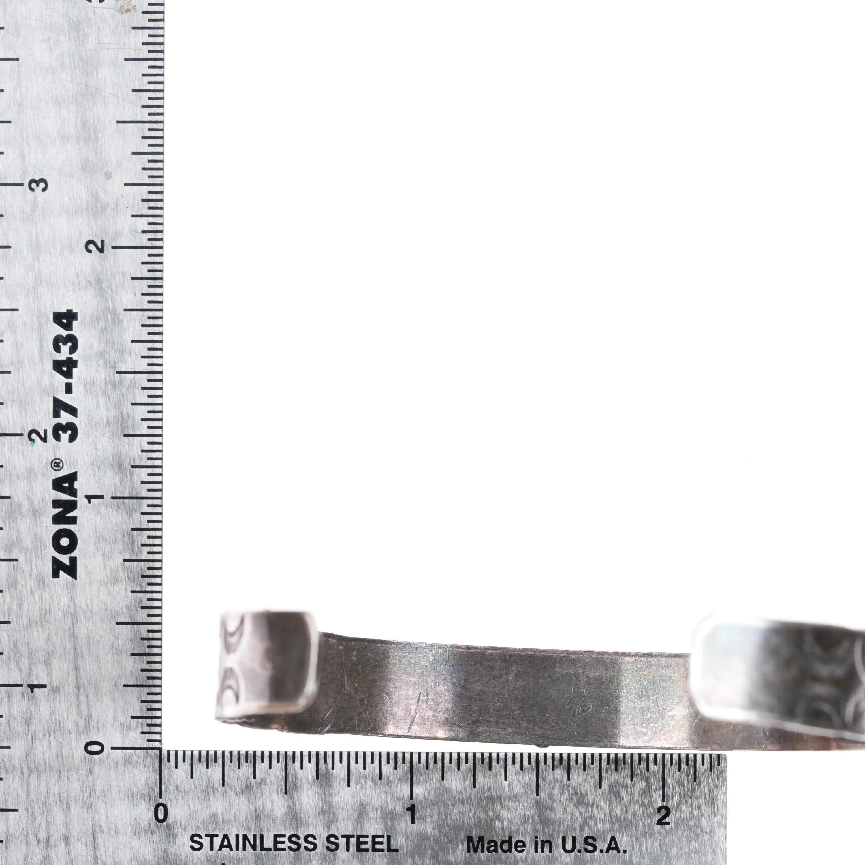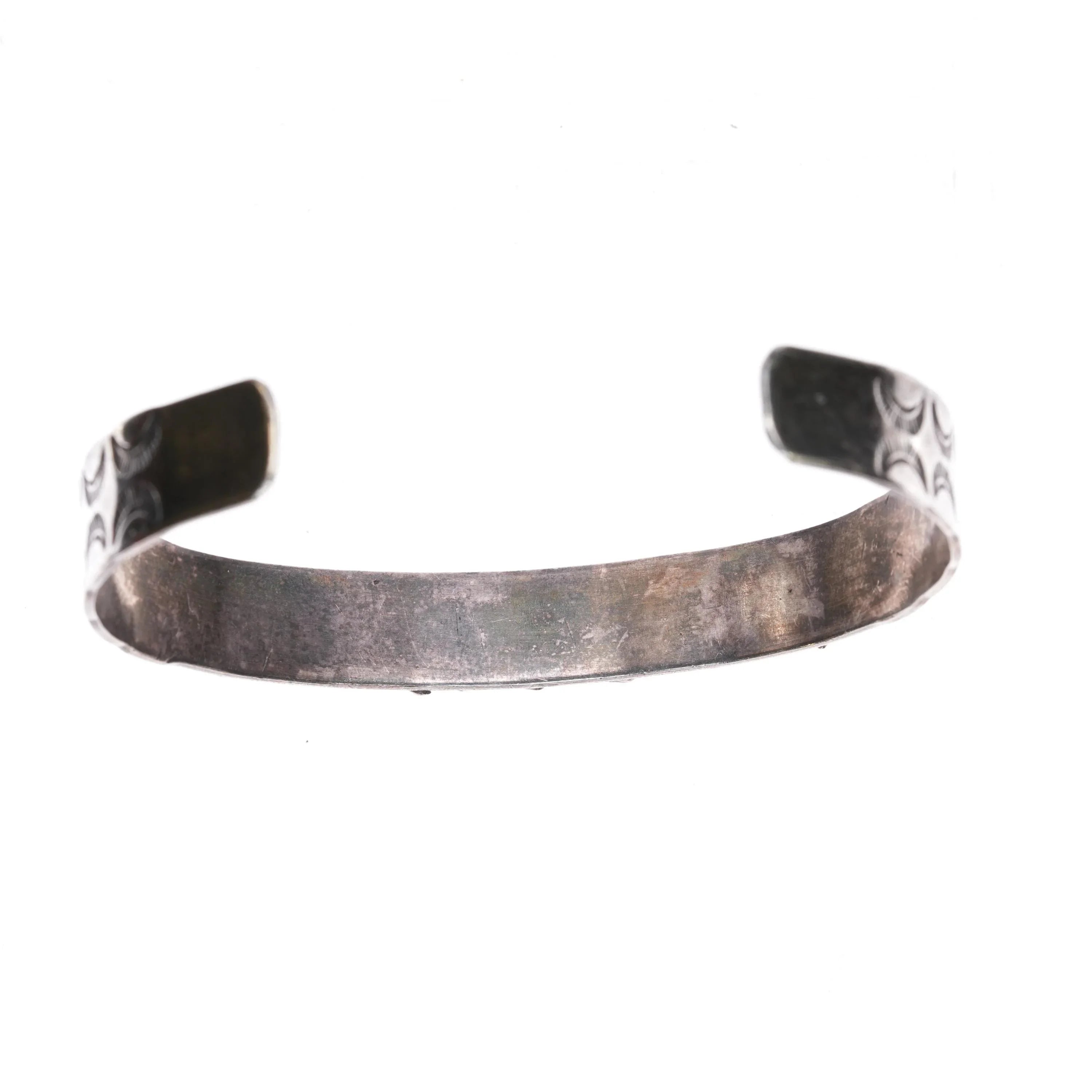 7.625" 40‘s Mexican Sterling Silver Carved Hardstone cuff bracelet. Weight and measurements in pictures, solid sterling silver.