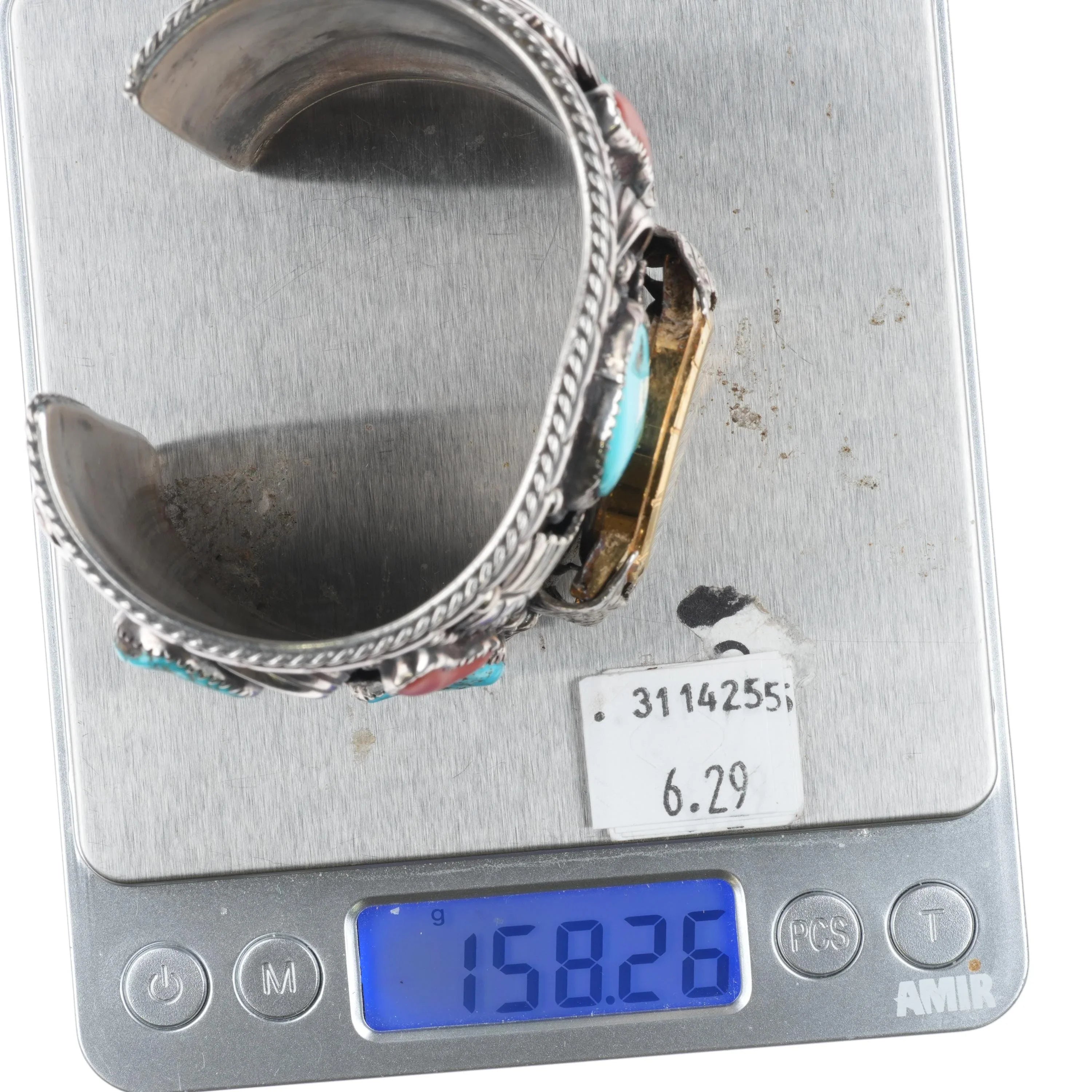 7" Skeet Yellowhair Sr Navajo Huge sterling, turquoise/coral watch cuff bracelet