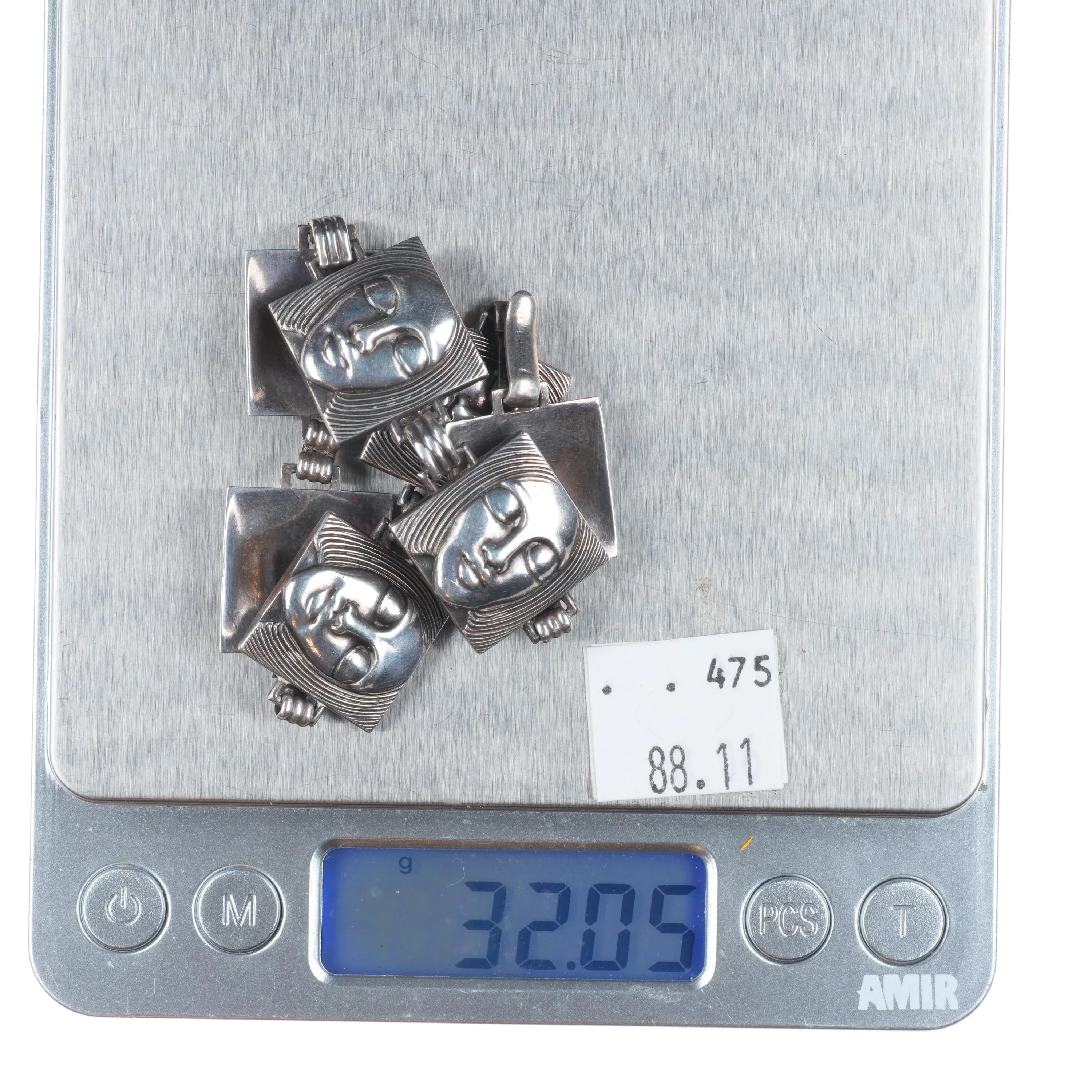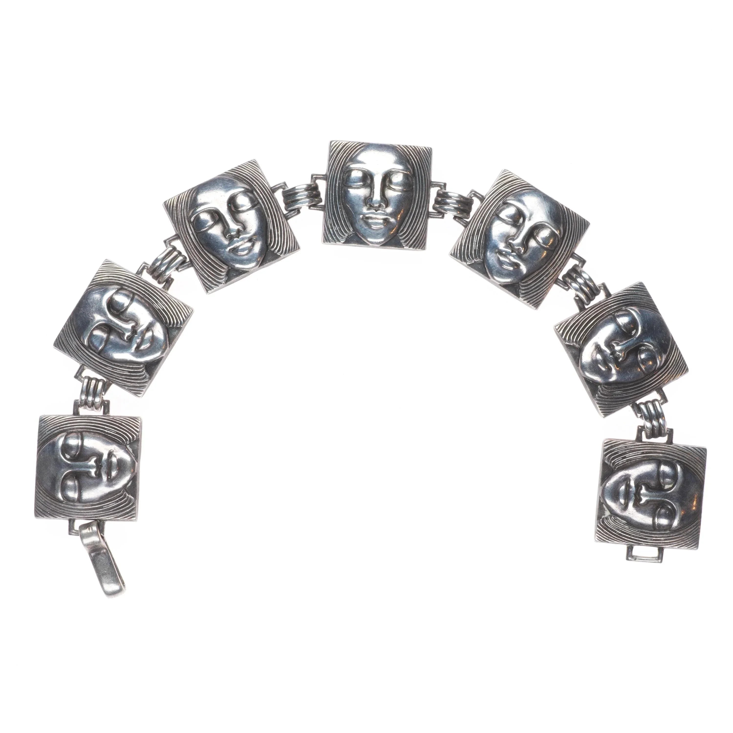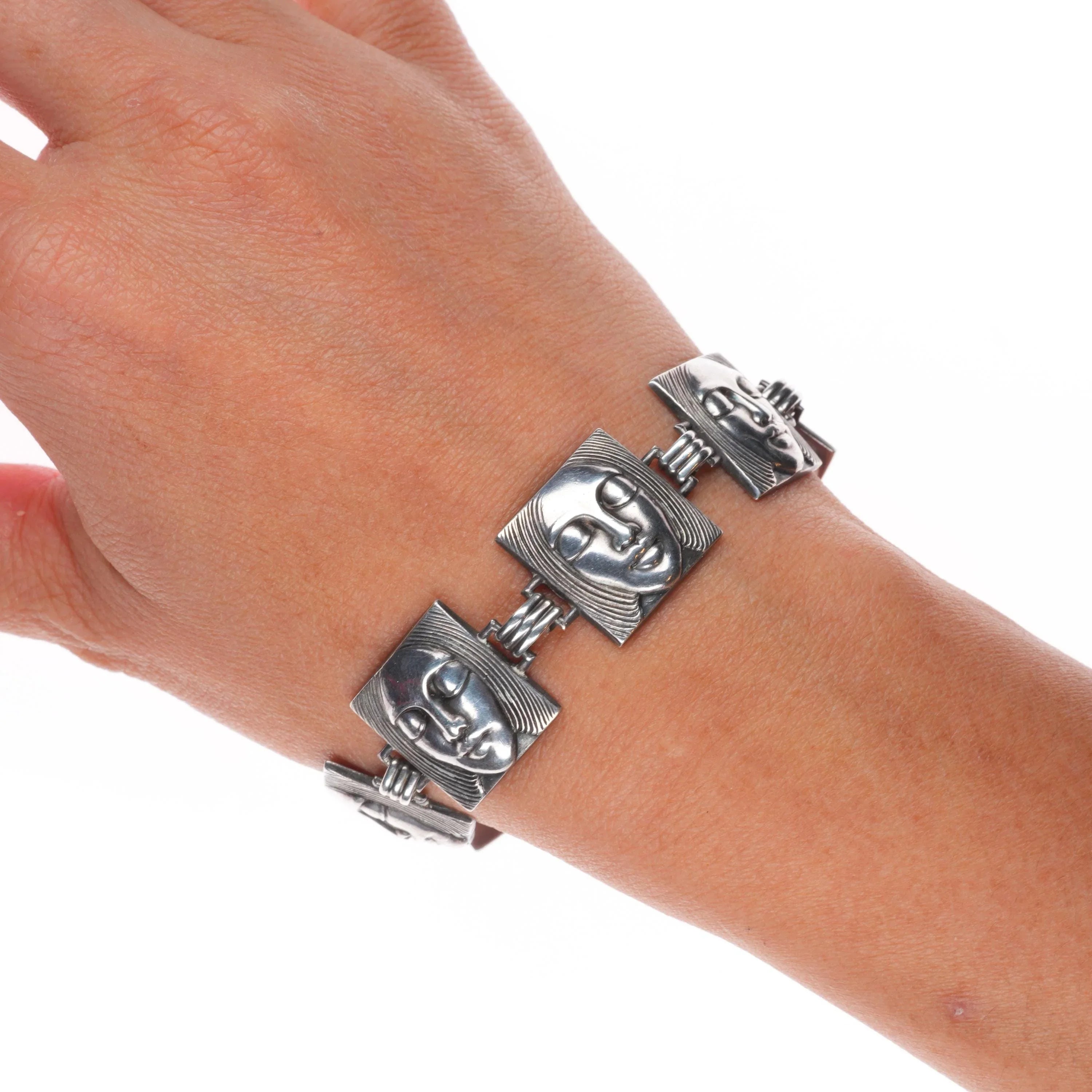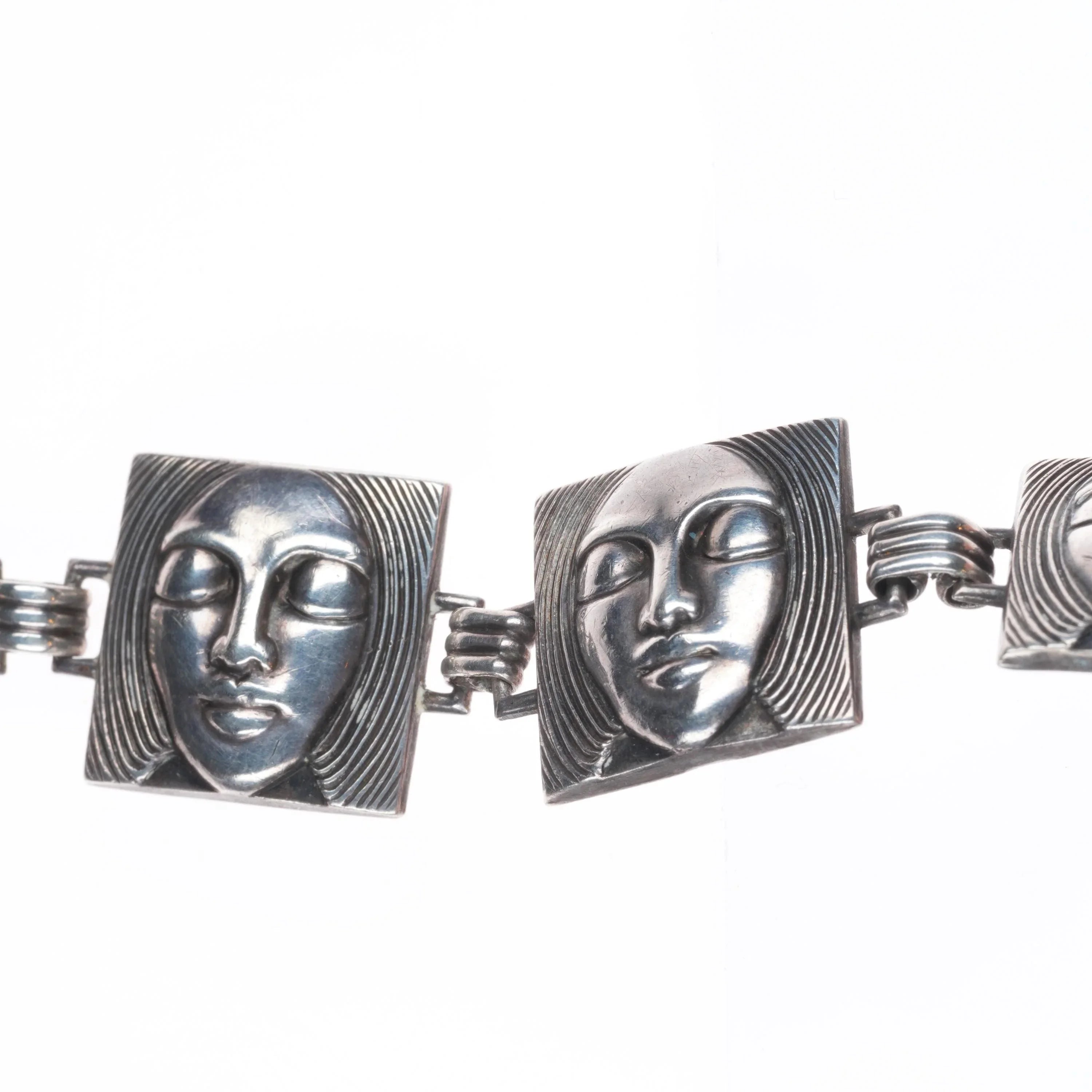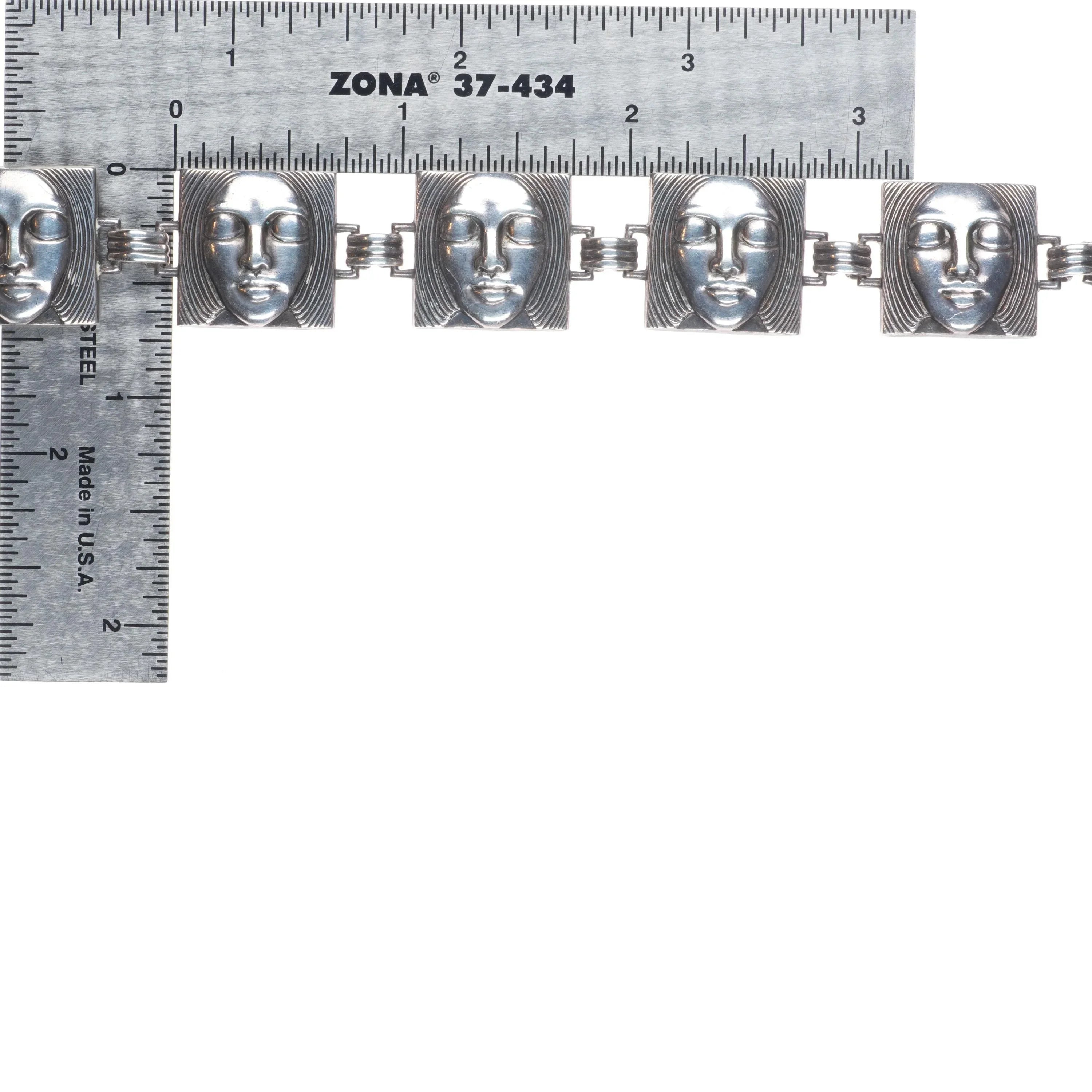 Vintage Goldberg Kirschman "Old Crest" Sterling silver faces link bracelet. Selling the bracelet shown in clean condition with no issues. Circa third quarter of the 20th century.