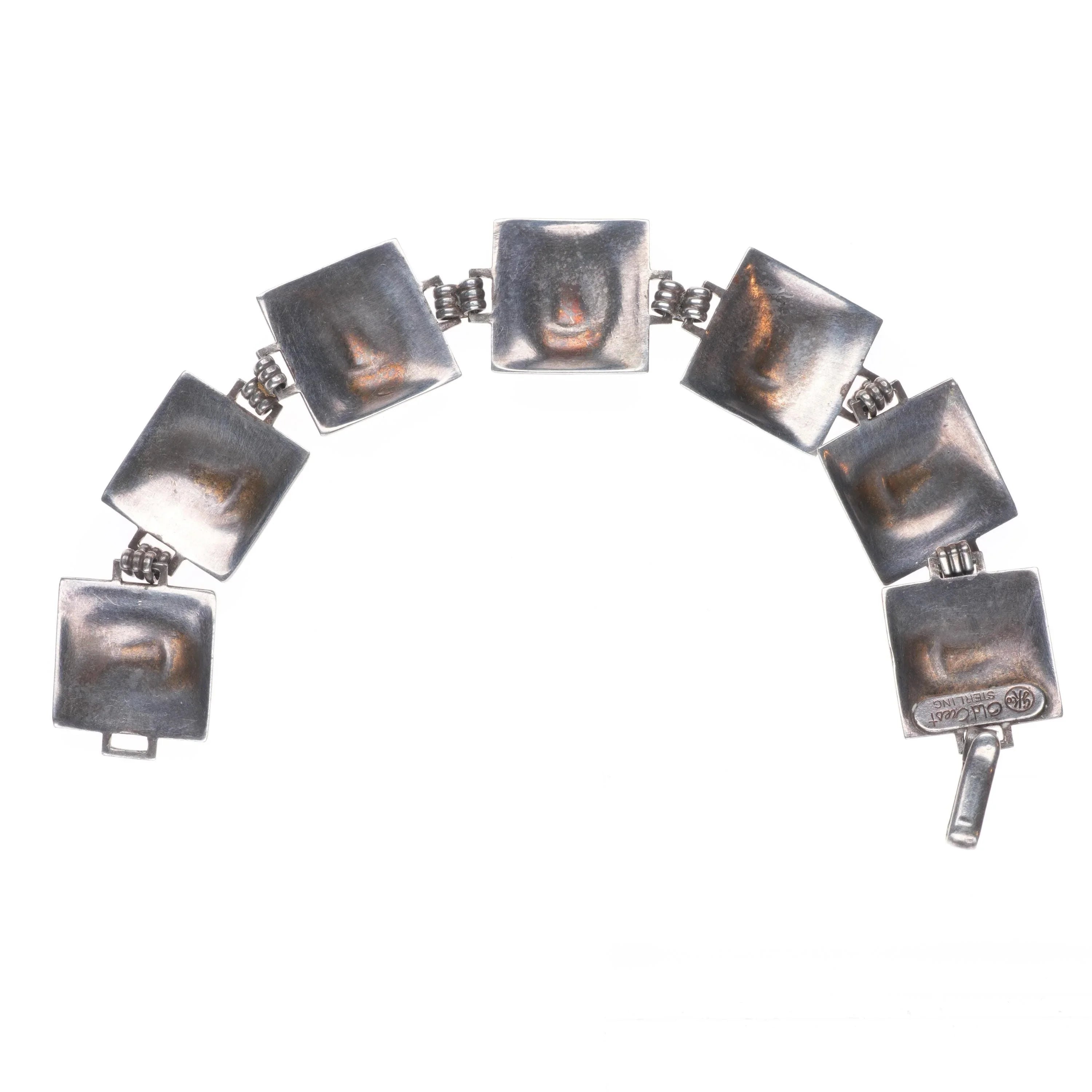 7" Vintage Goldberg Kirschman "Old Crest" Sterling silver faces link bracelet
