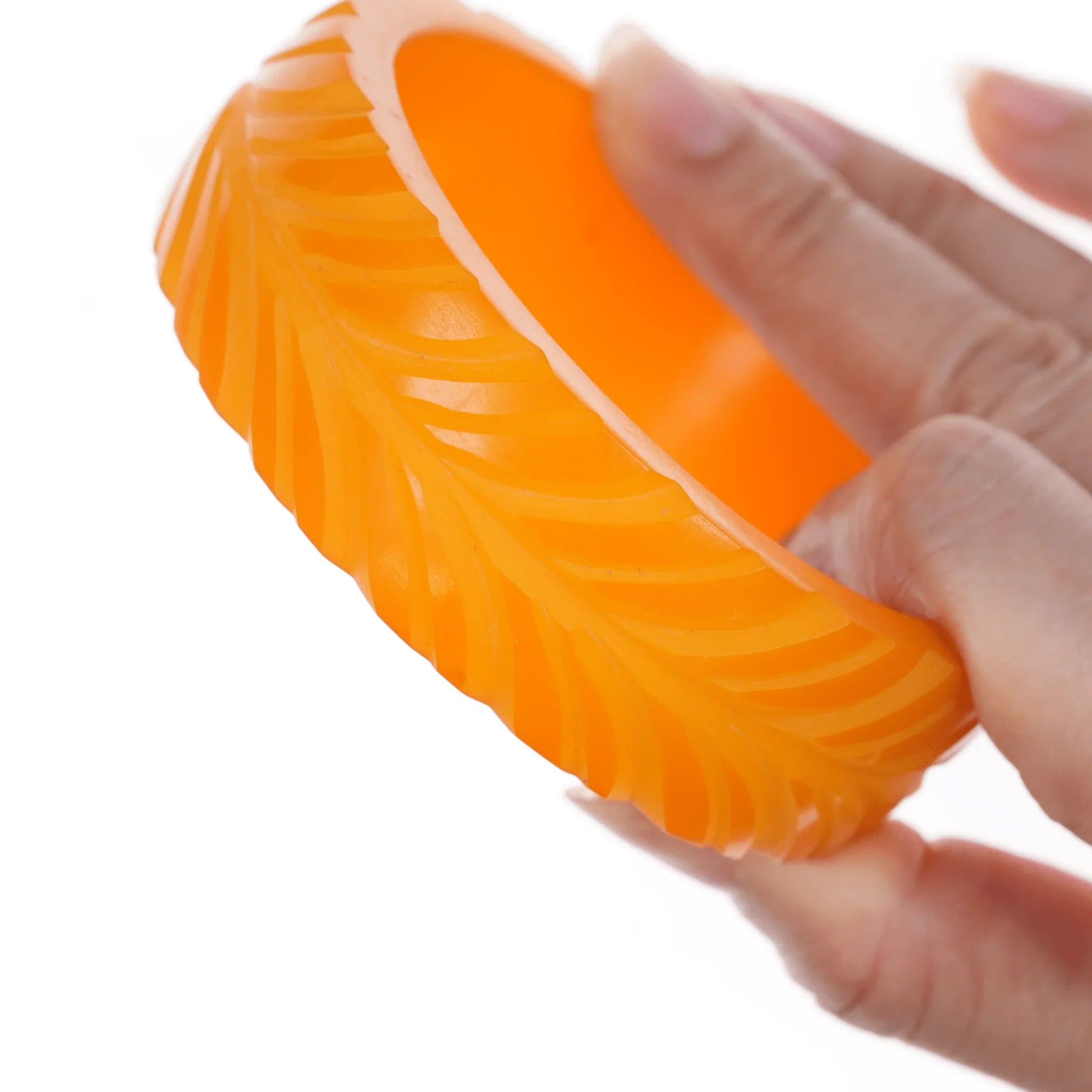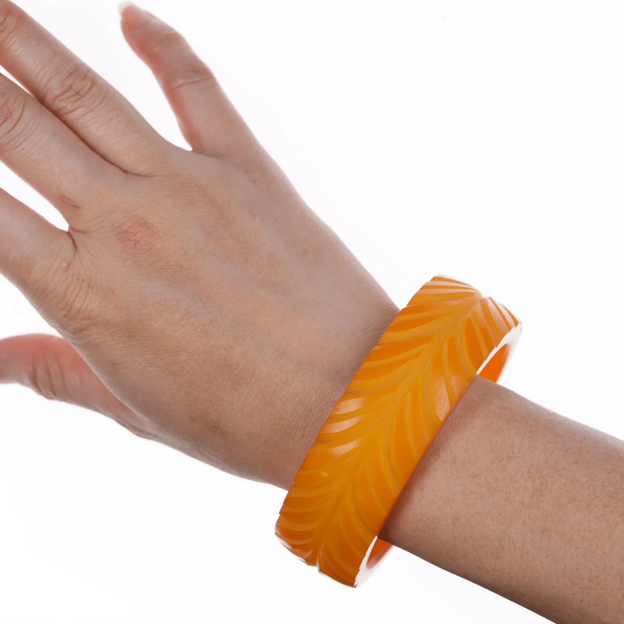 8.25" c1940's Carved Bakelite Bangle bracelet Butterscotch