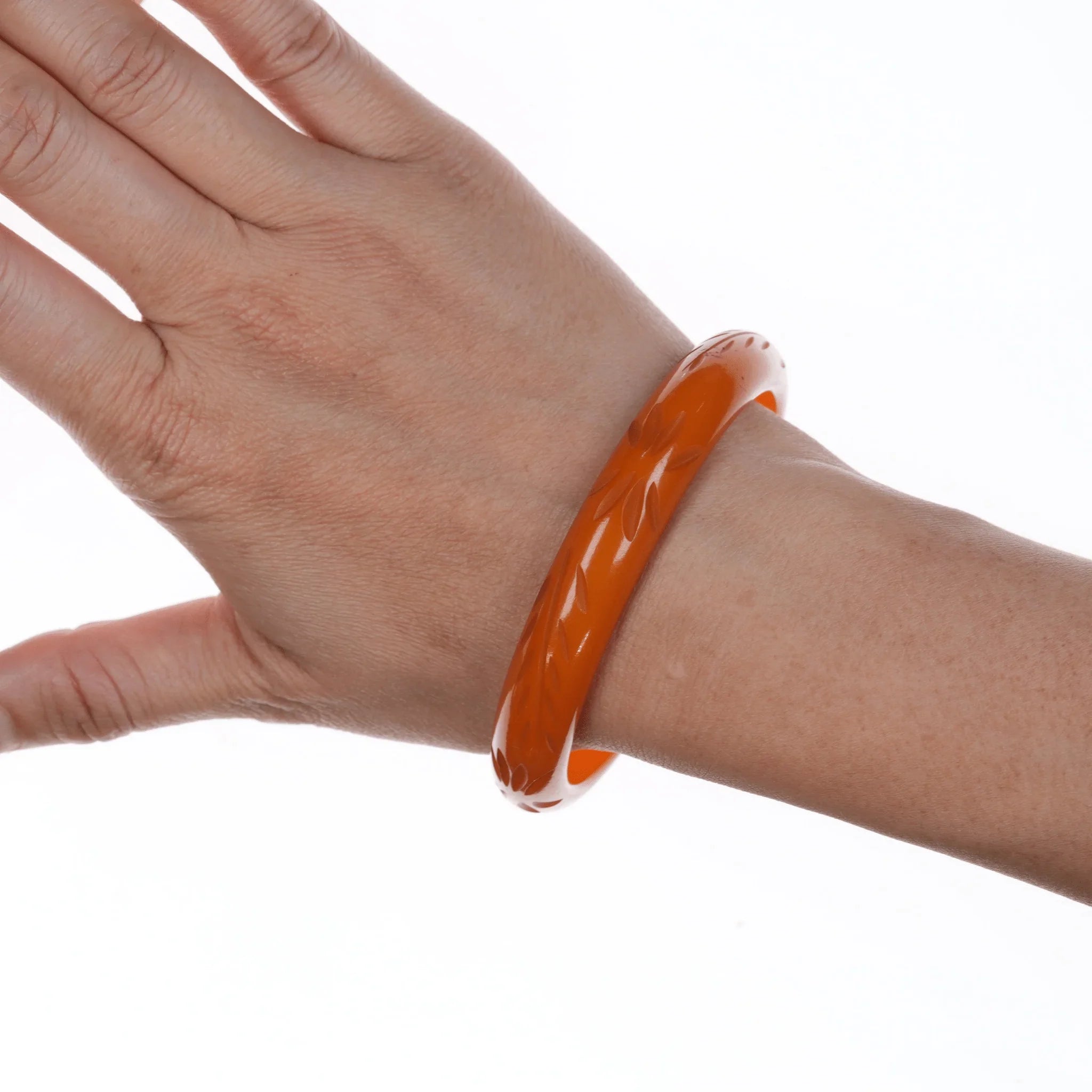 8" c1940's Carved Butterscotch bakelite bangle bracelet