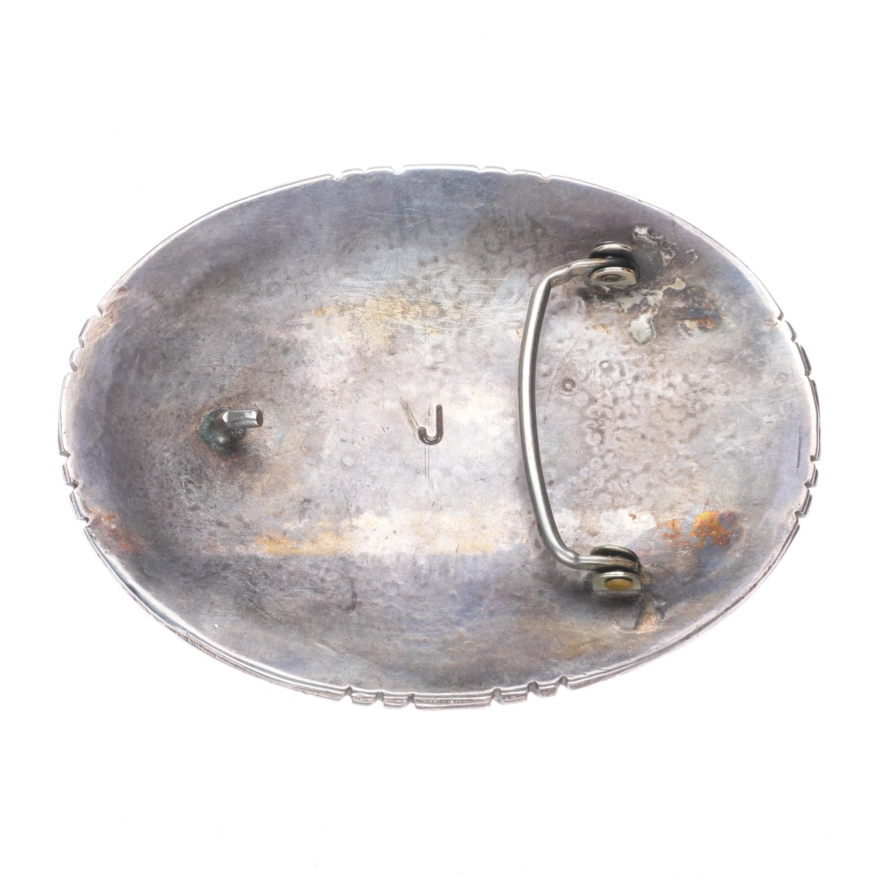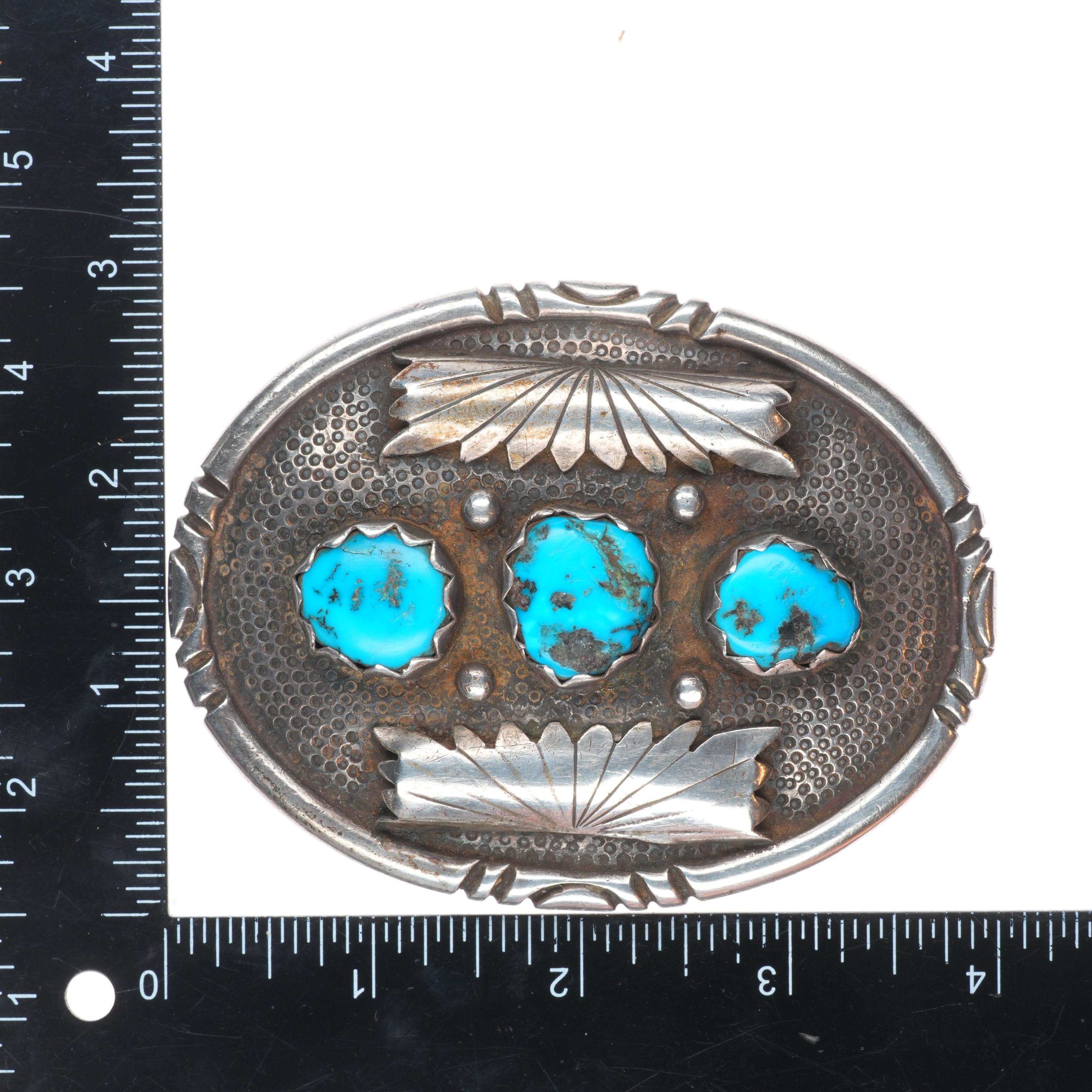 Big Heavy Vintage J Zuni sterling silver/turquoise belt buckle 3 stone