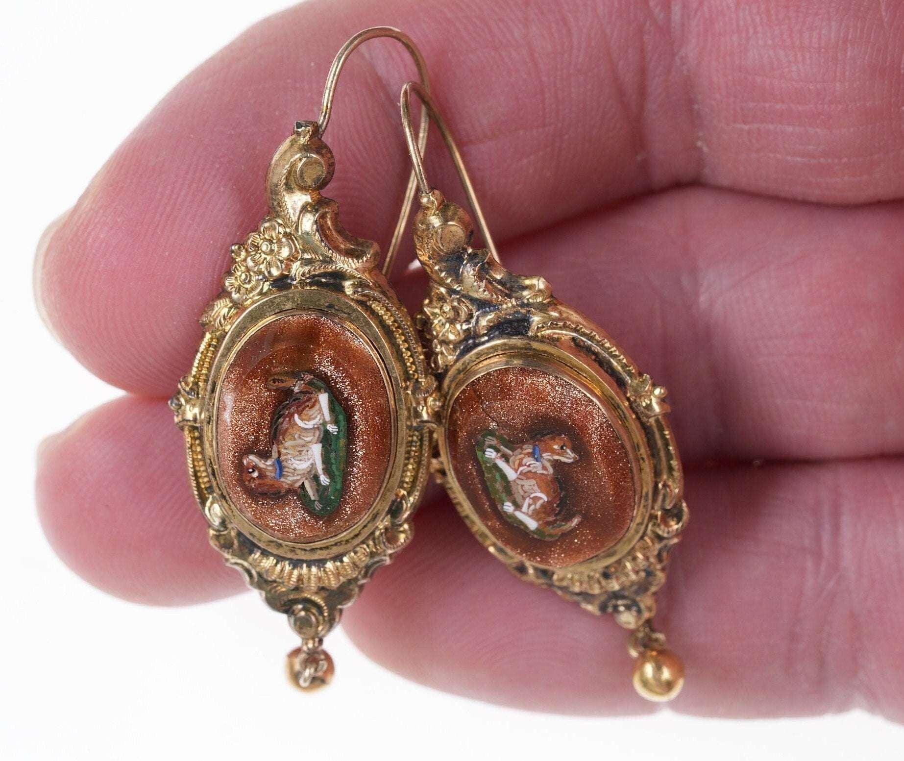 c1890 Victorian 14k Micro-Mosaic Dog earrings