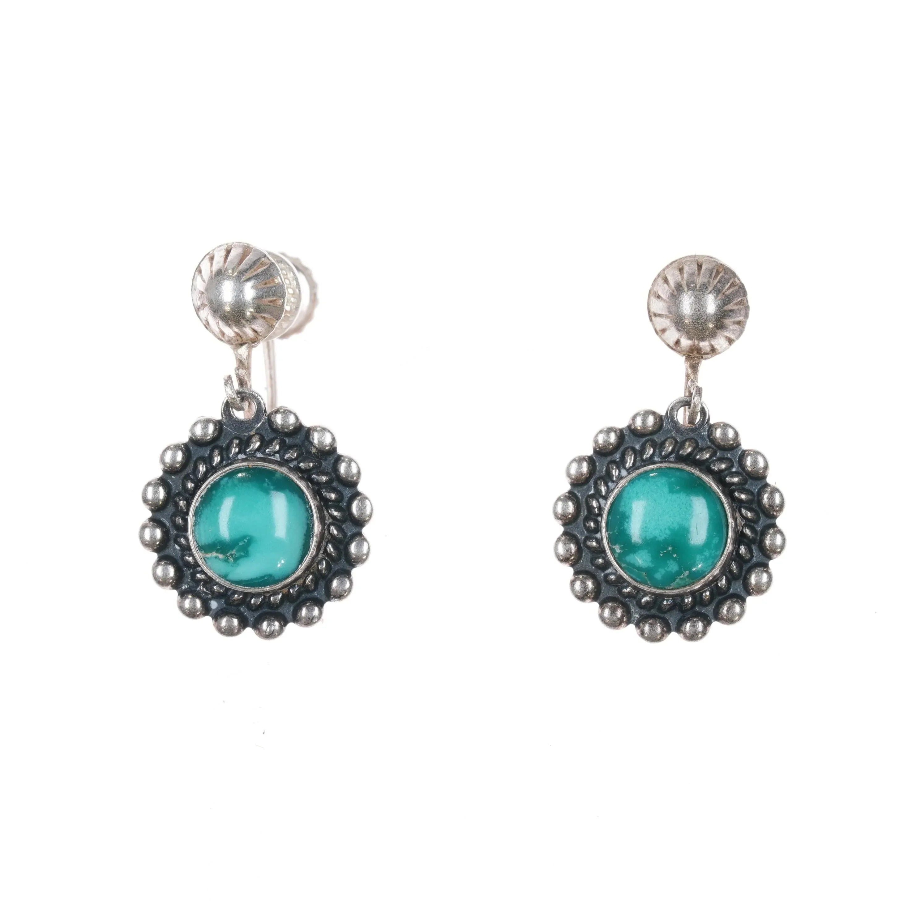 c1940's Fred Harvey Era Sterling silver screw back earrings with nice turquoise