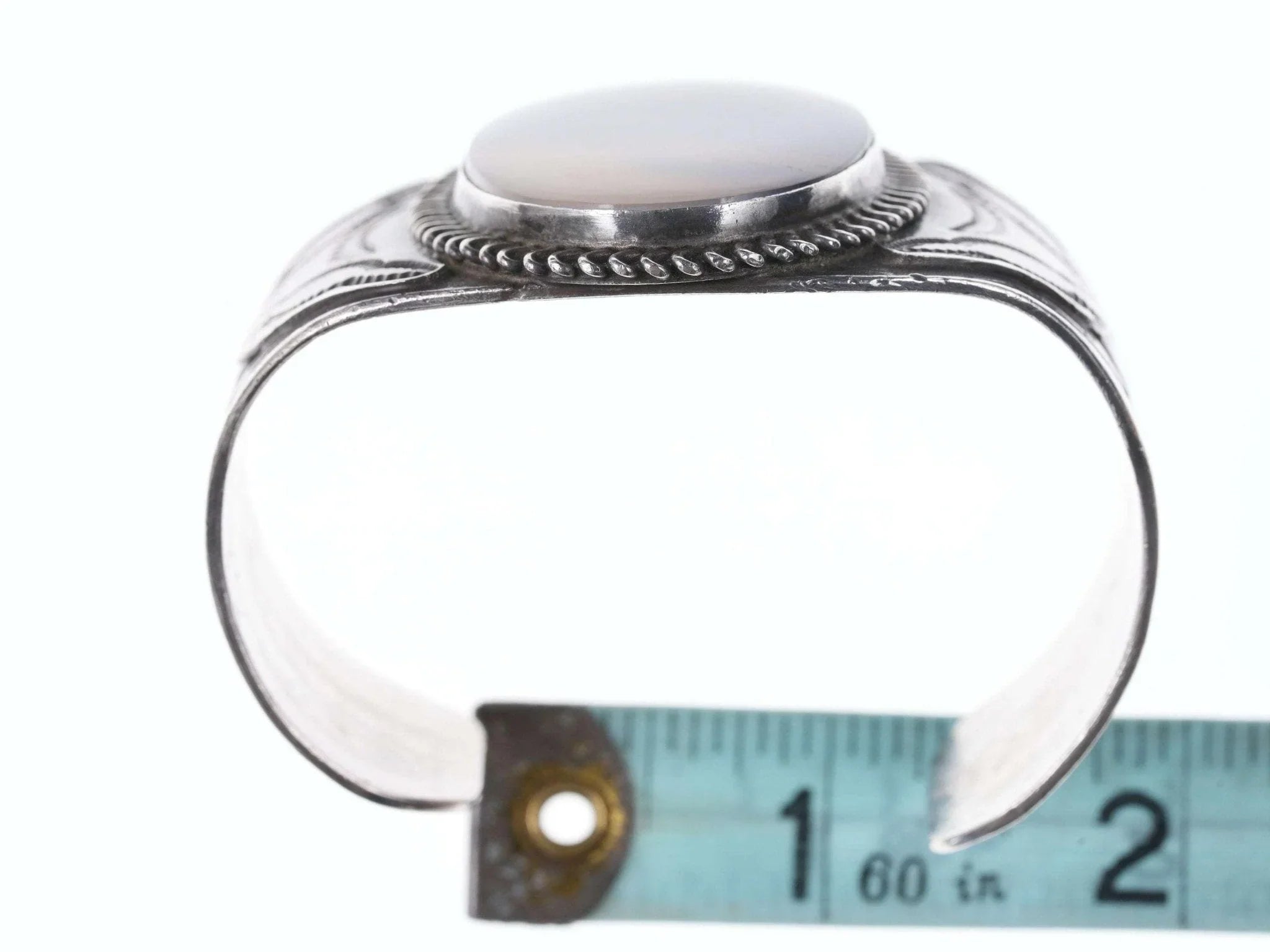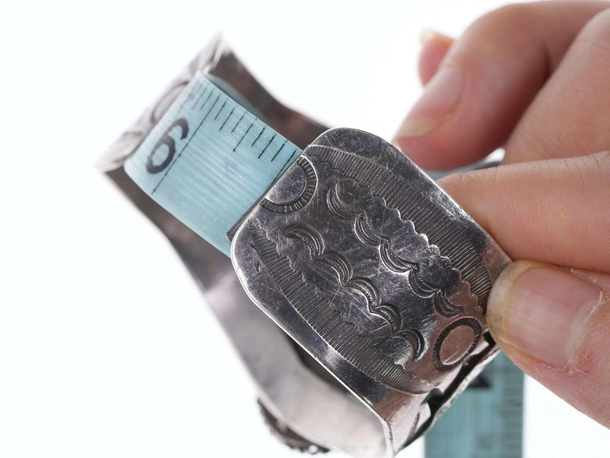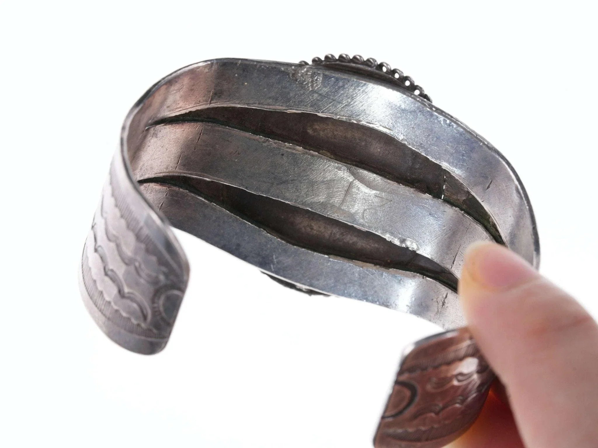 c1940's Native American Heavy stamped silver Agate cuff bracelet