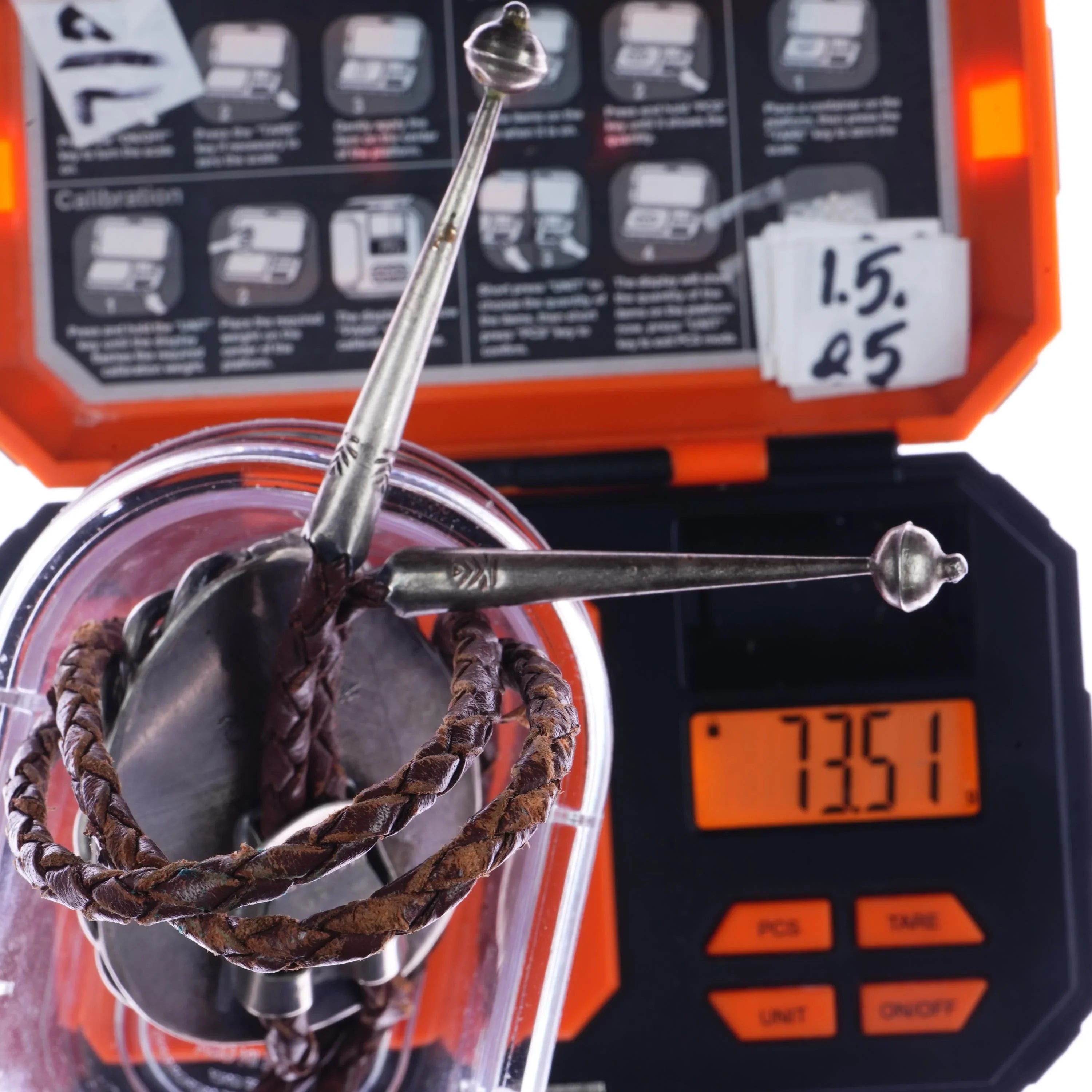c1960 c-31 sterling/turquoise rope edge bolo tie. Solid sterling, weight and measurements in pics (scale tared out with containter, weight shown is just the bolo). No damage, sterling tips and bolo slide. Hallmarked as shown. From huge collection so well preserved, 40" total length. some wear to cord.