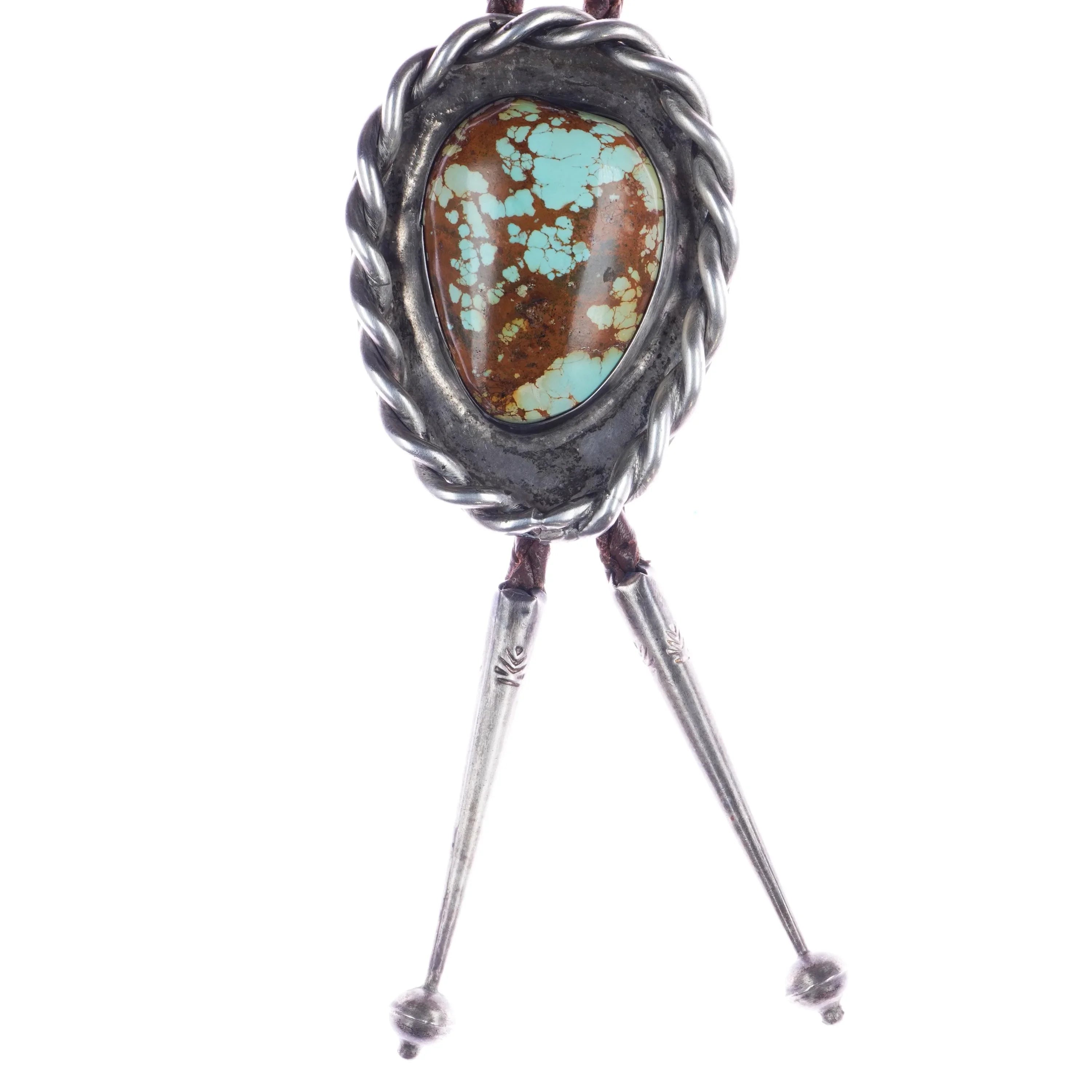 c1960 c-31 sterling/turquoise rope edge bolo tie