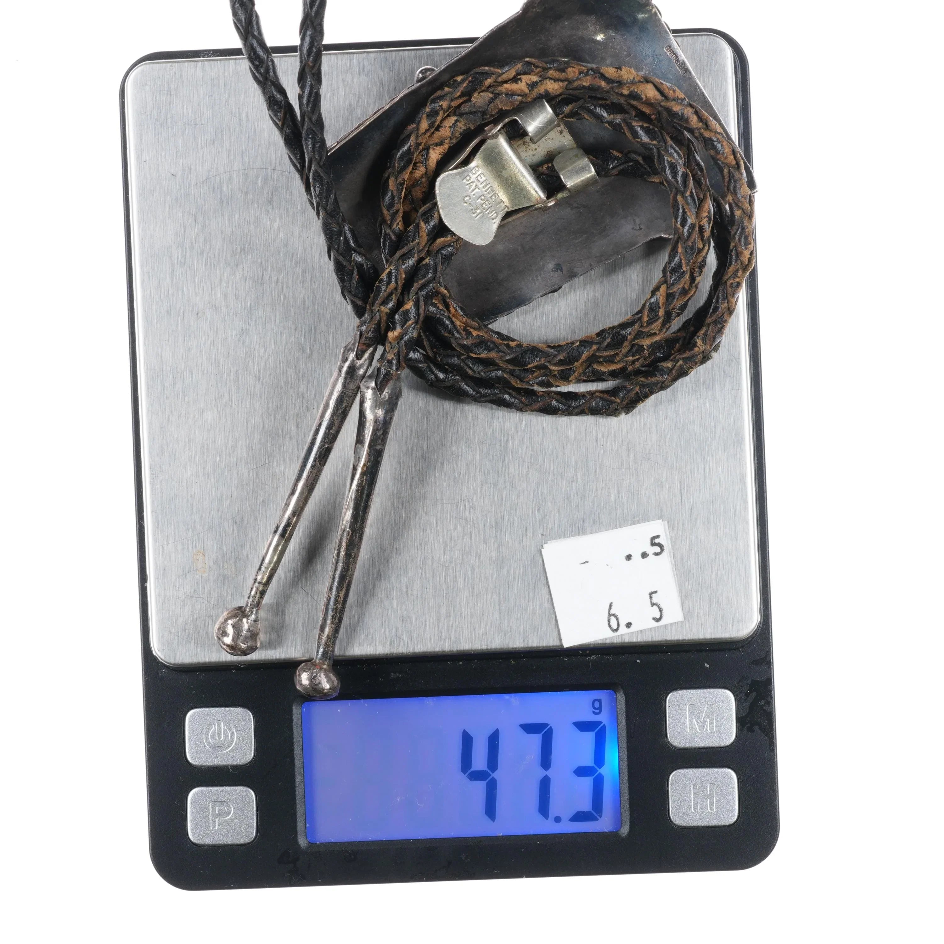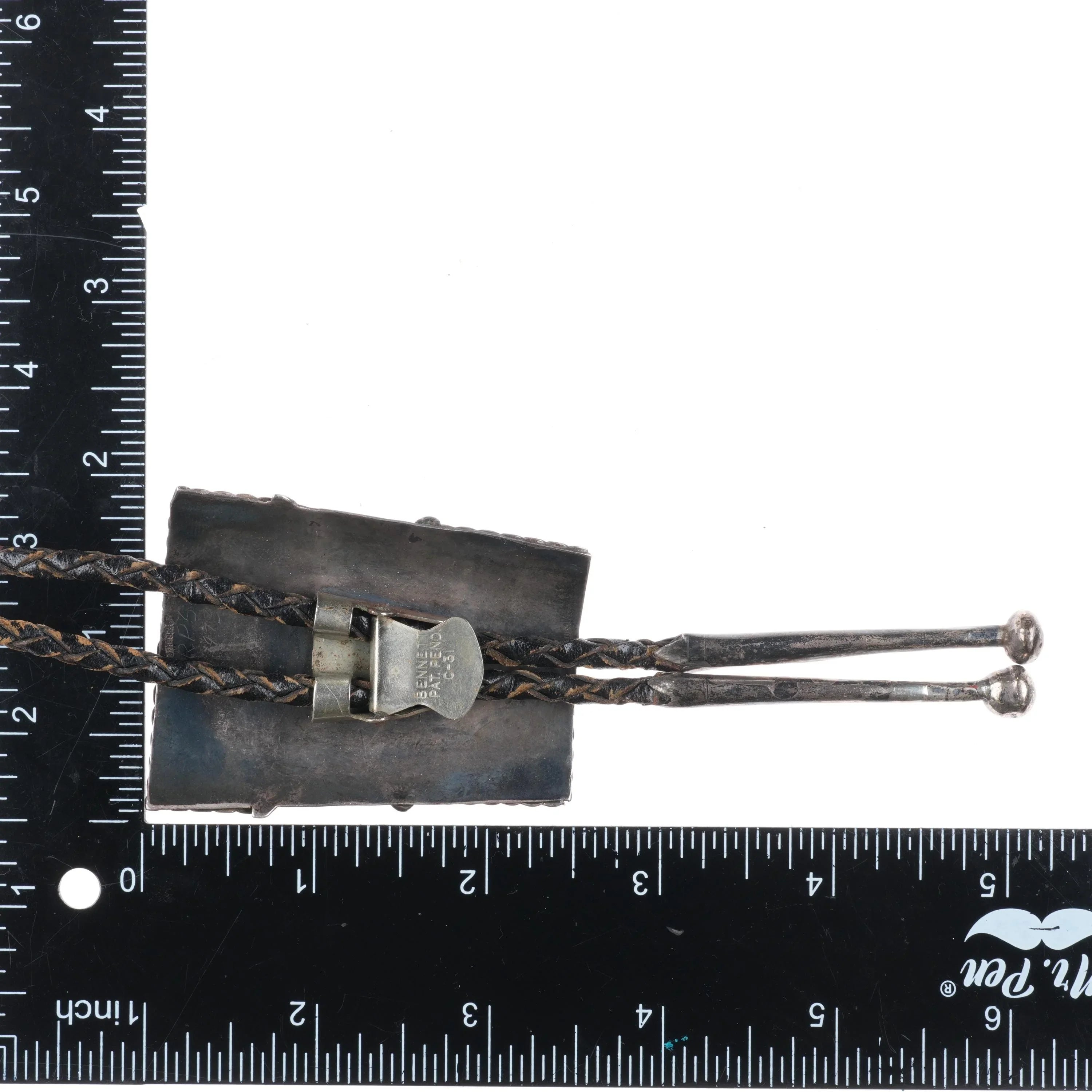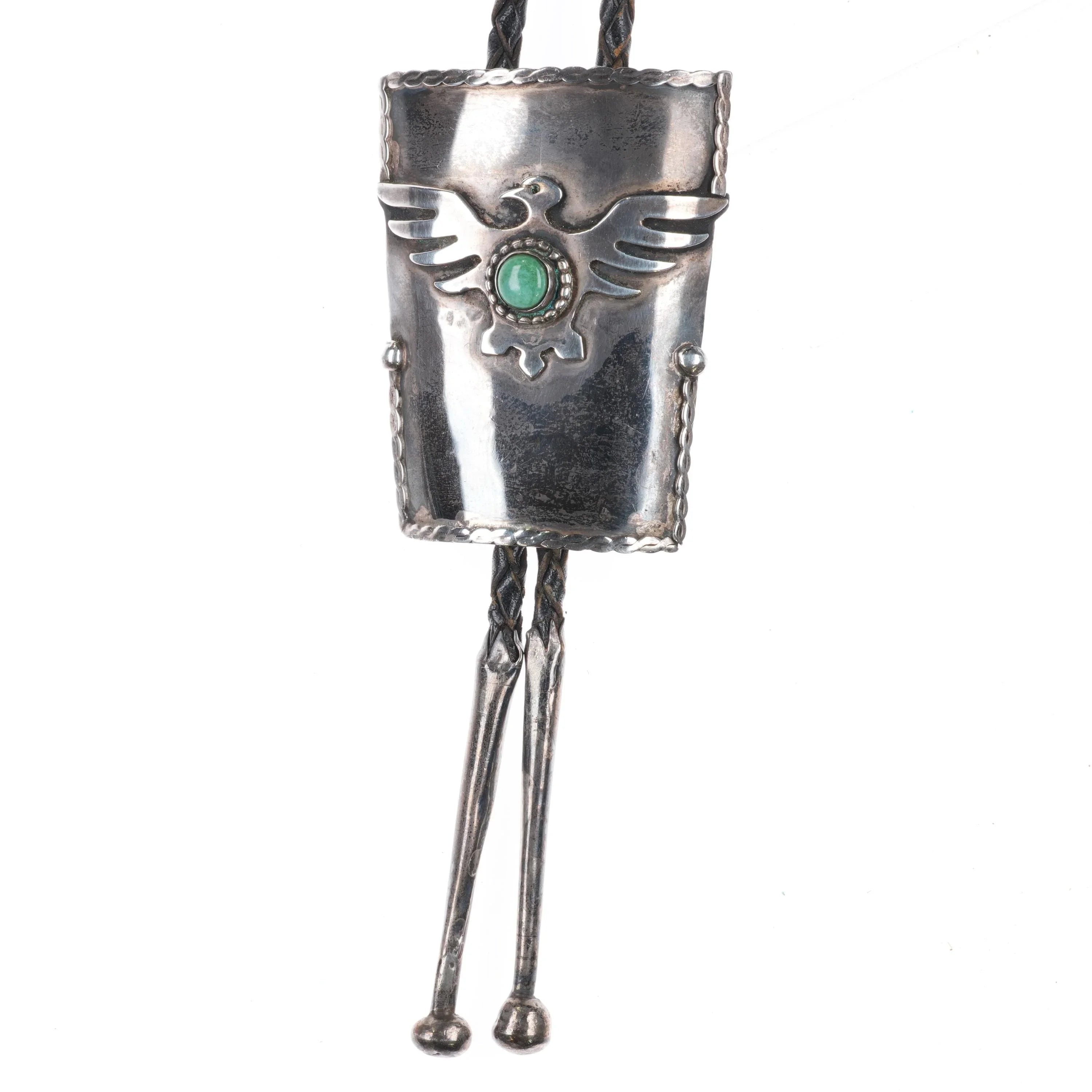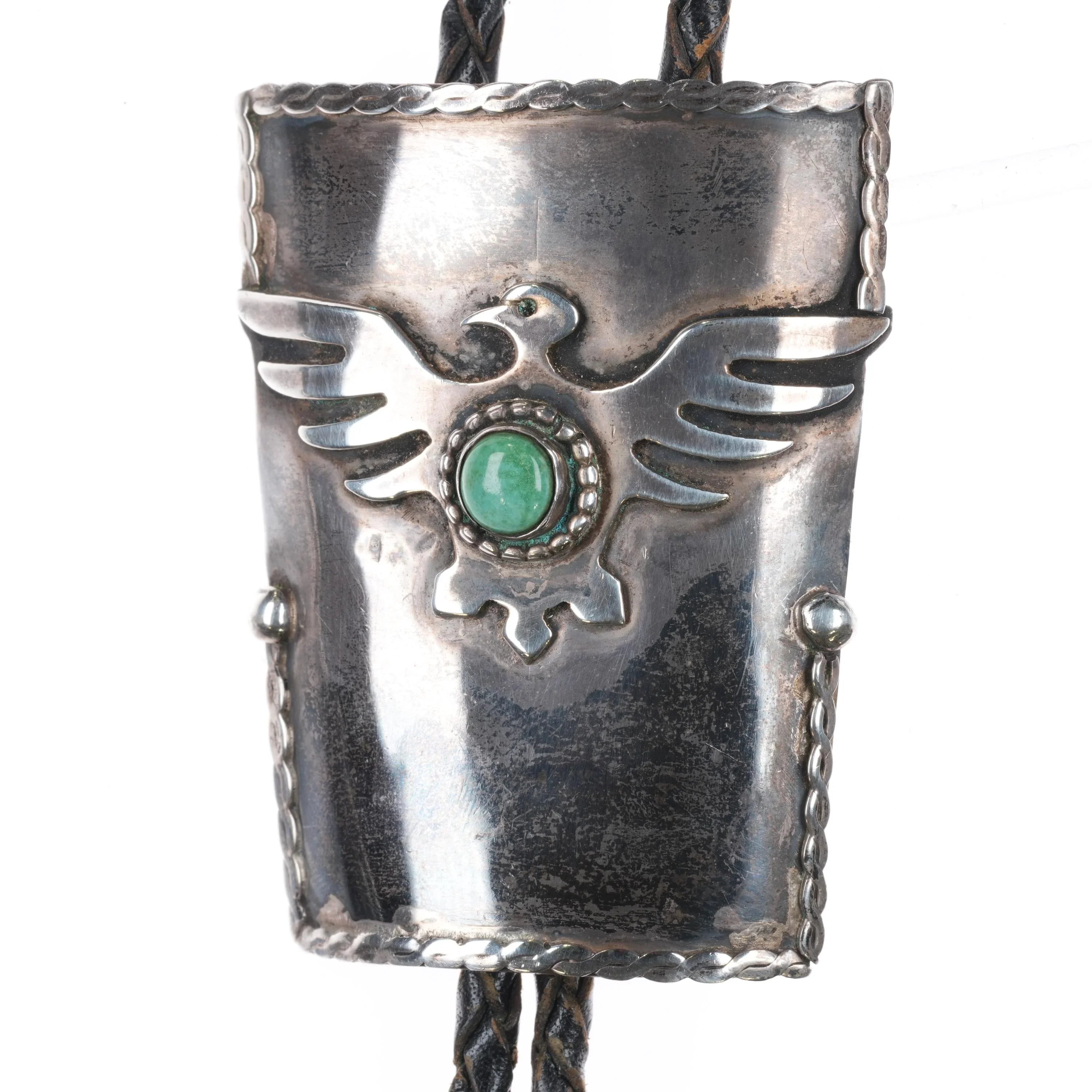 c1960 c-31 Vintage sterling silver thunderbird bolo tie with turquoise