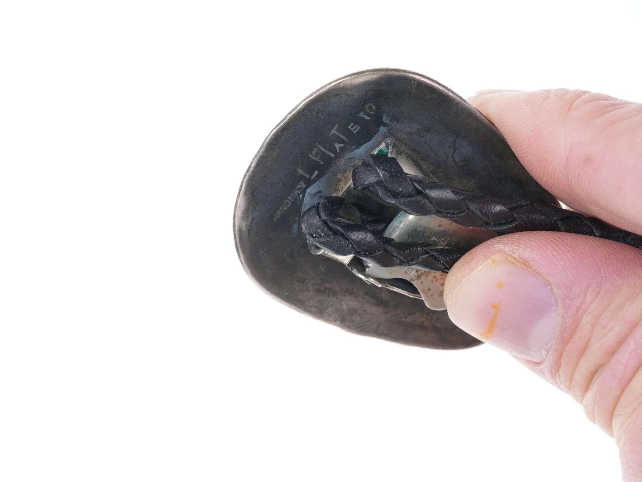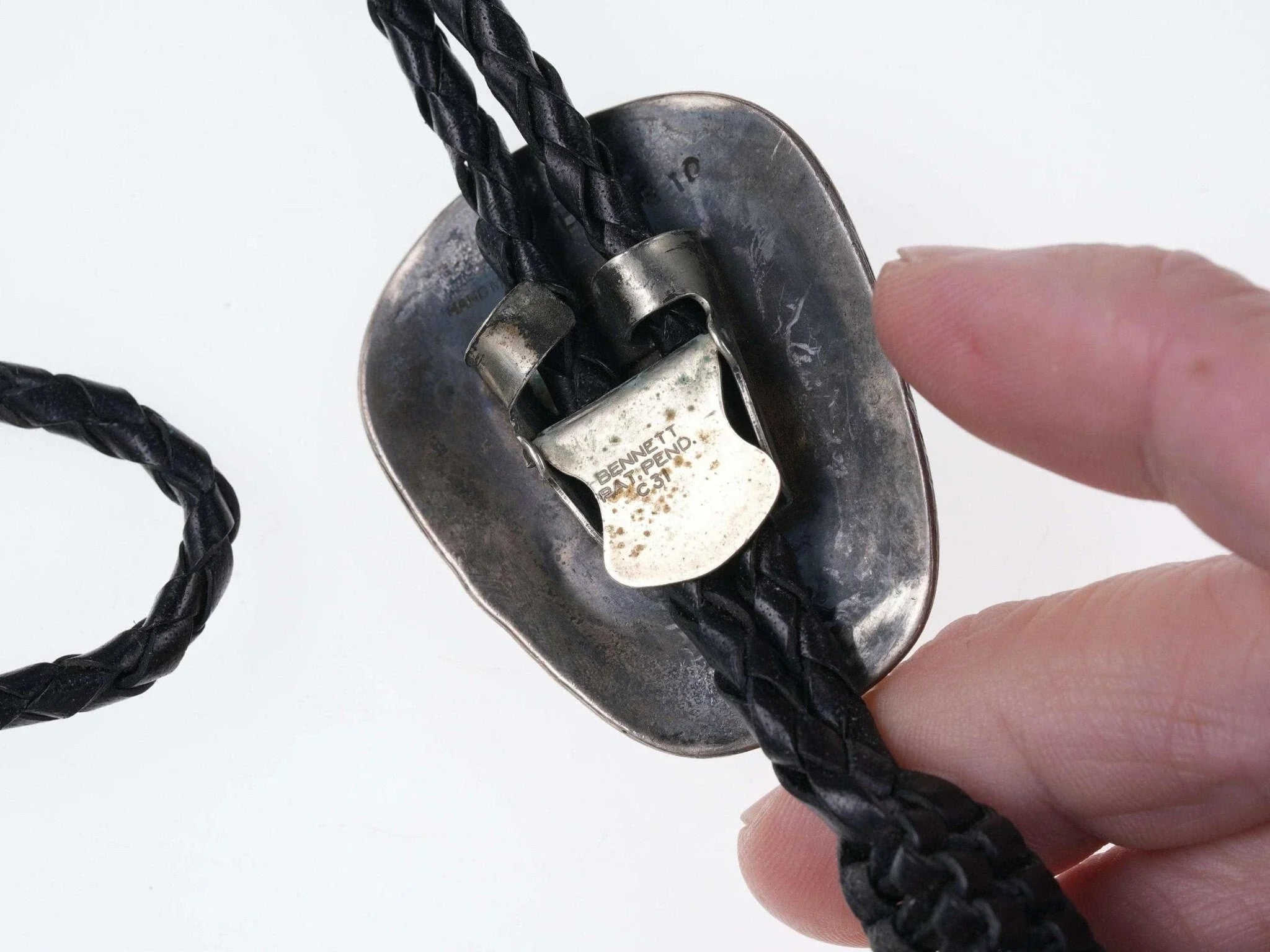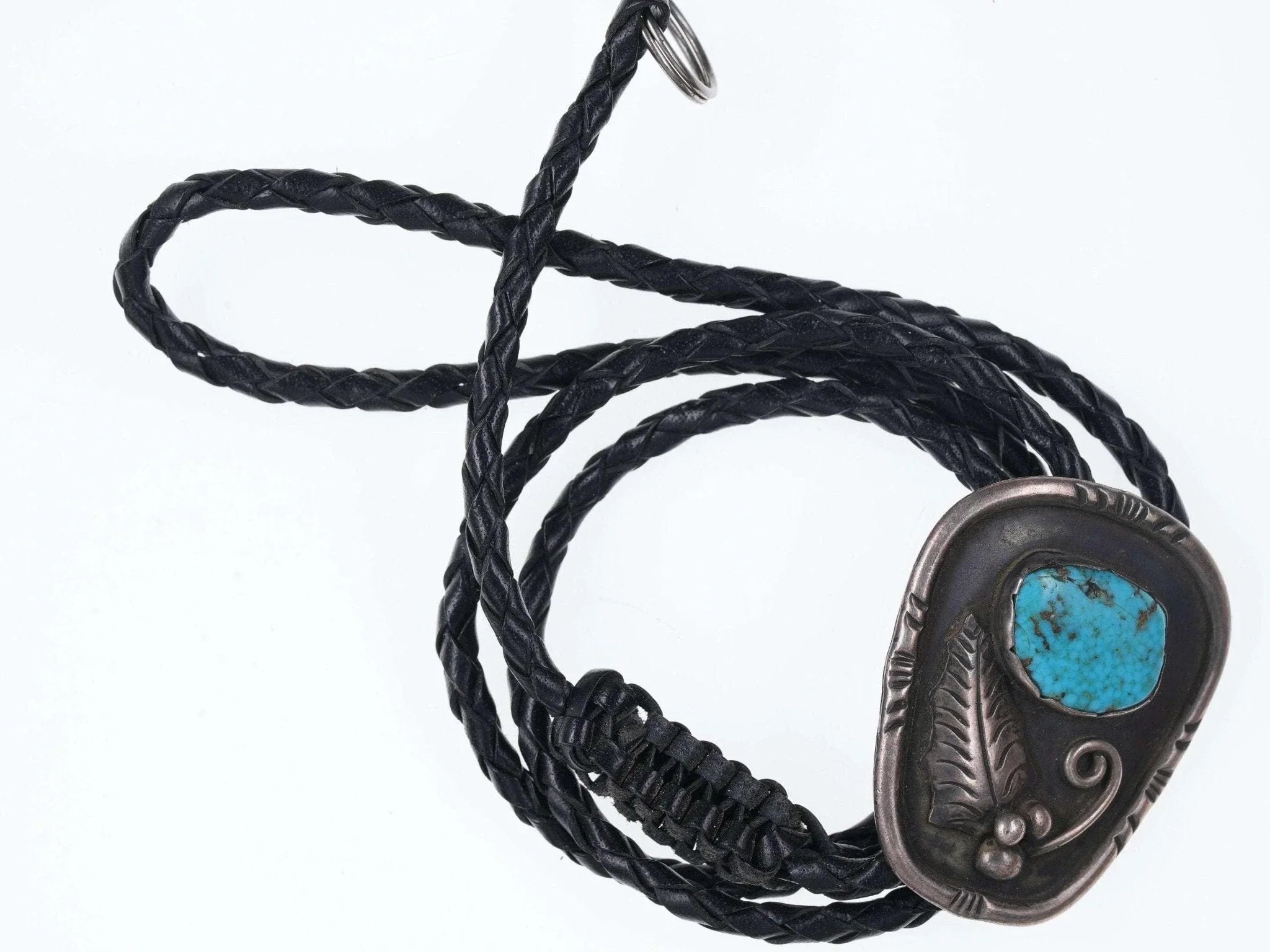 c1960 Louise Platero Navajo Bolo turned lanyard. Signed on back and clip has the<br>early c-31 stamp on the back that tends to be 50's-early 60's. 31.6 grams total<br>weight. Bolo measures 2" x 1 5/8"<br><br>Navajo Silversmith Louse Platero and her husband, jeweler, Ramon Platero were<br>well respected artists likely beginning in the 1960’s. They are credited with<br>creating the holly leaf in their jewelry. Louise Platero’s handmade hallmark is<br>L Platero. Louise and her husband had 10 daughters and 3 sons.