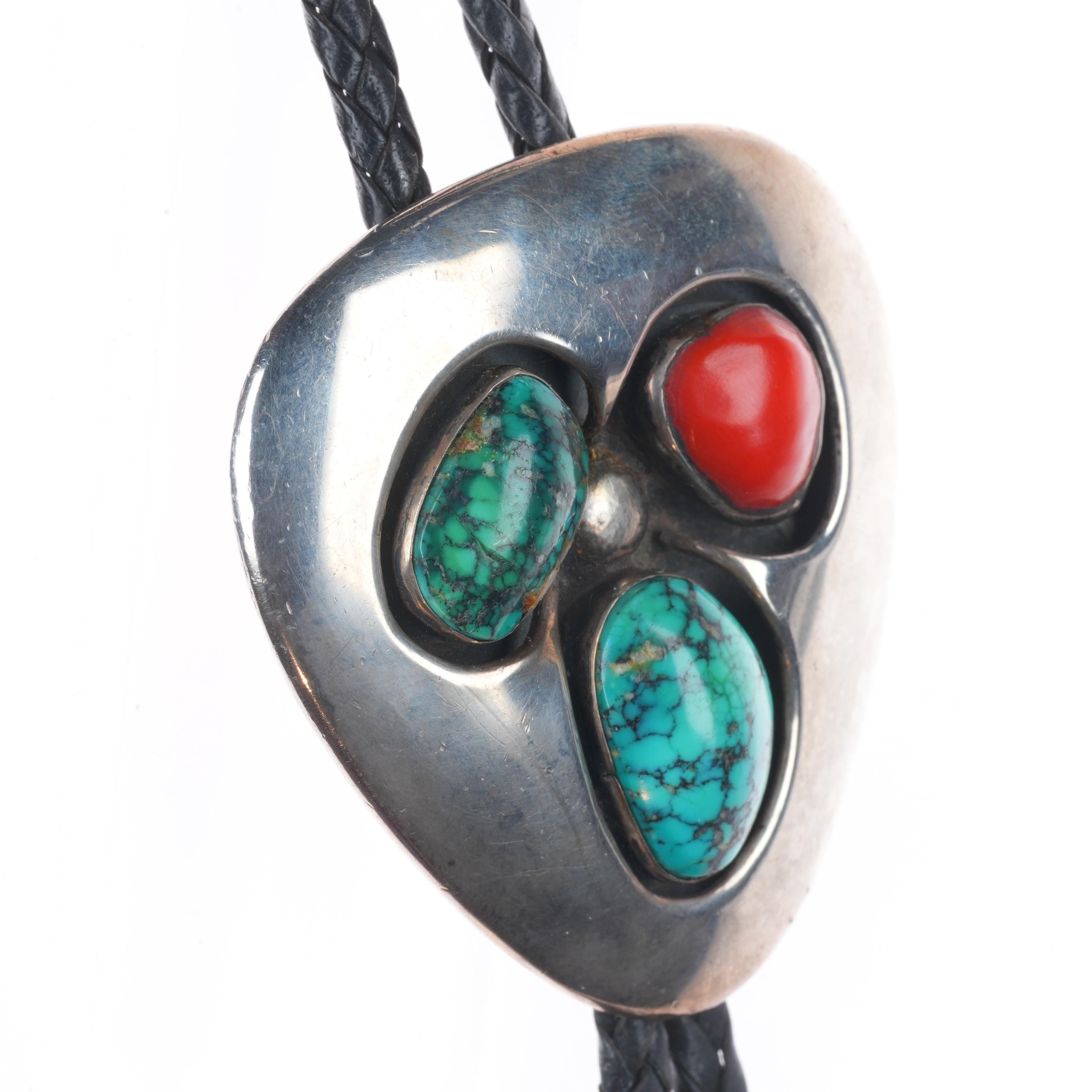 Carl Allen Begay (1912-1972) Navajo sterling silver turquoise/coral bolo tie