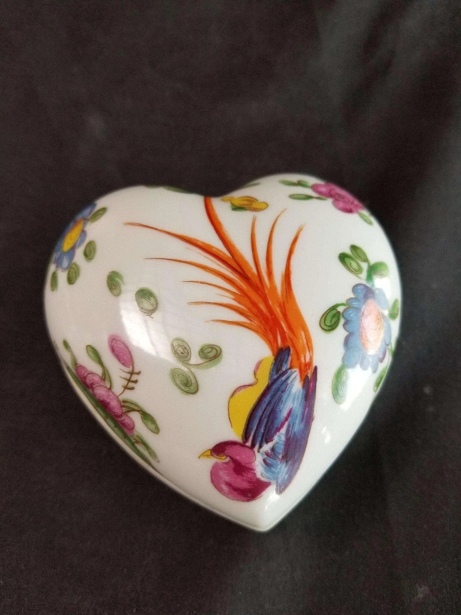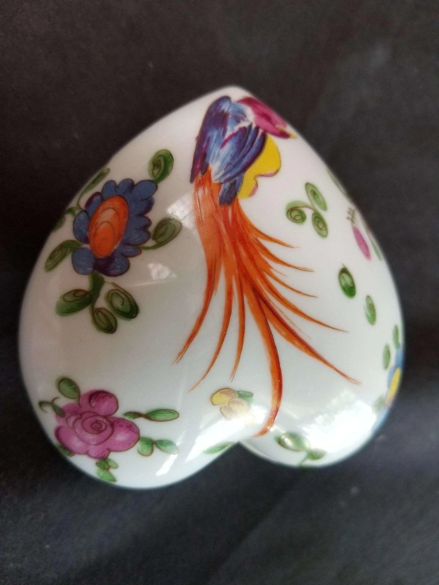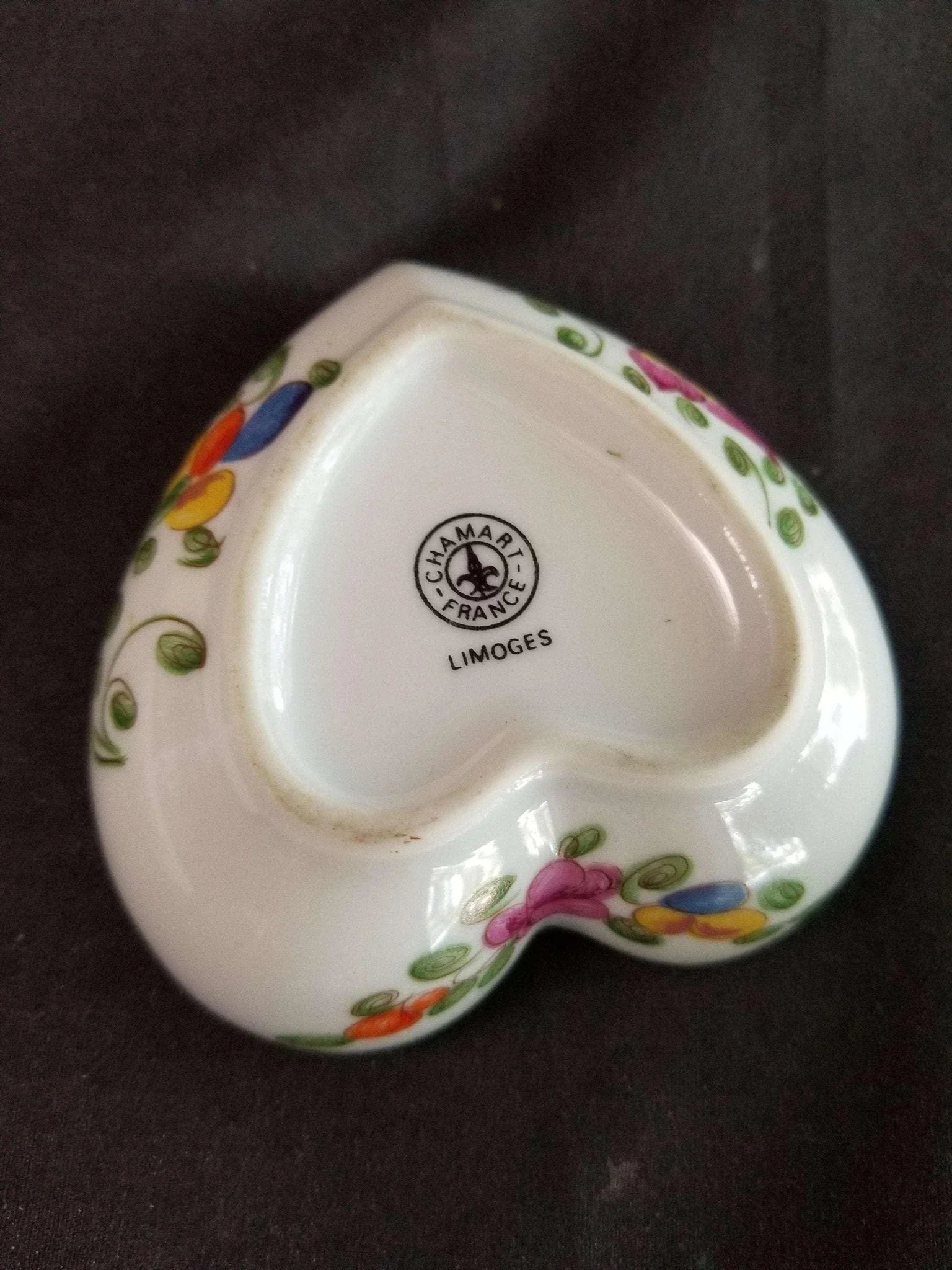 CHAMART Limoges Trinket Box Heart Shaped Bird of paradise and floral decoration