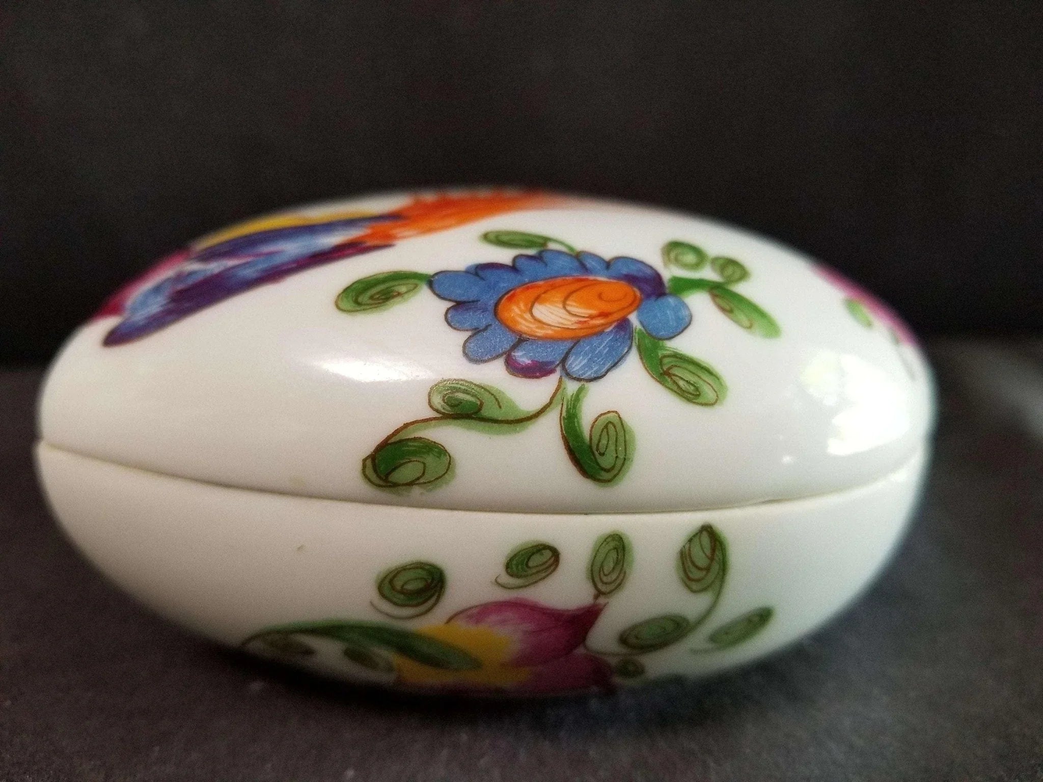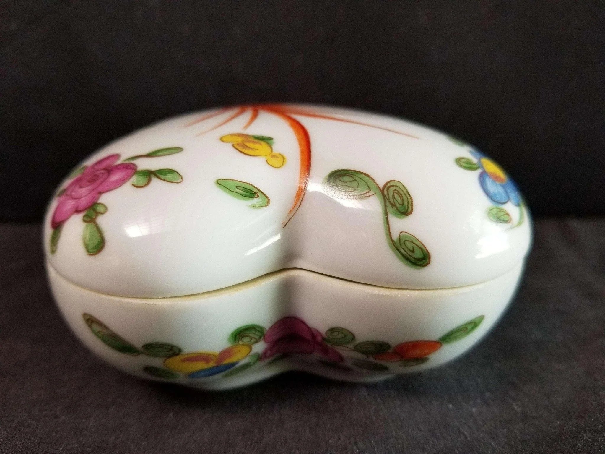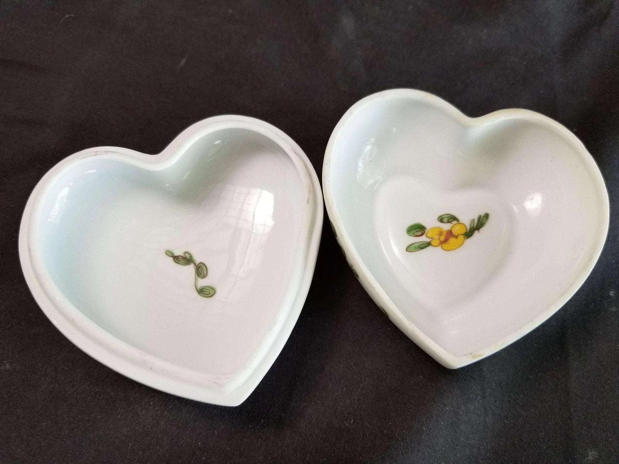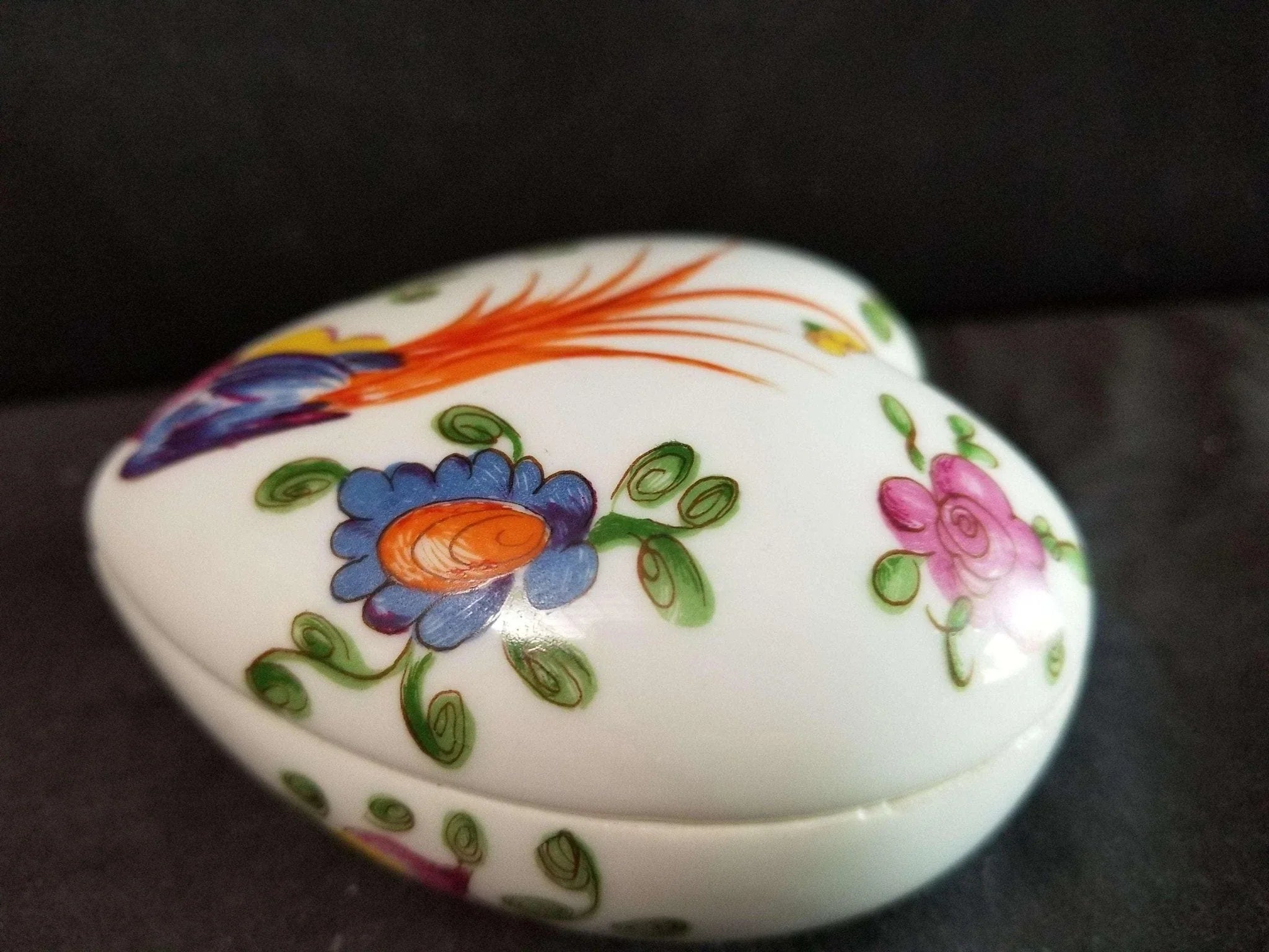 CHAMART Limoges Trinket Box Heart Shaped Bird of paradise and floral decoration