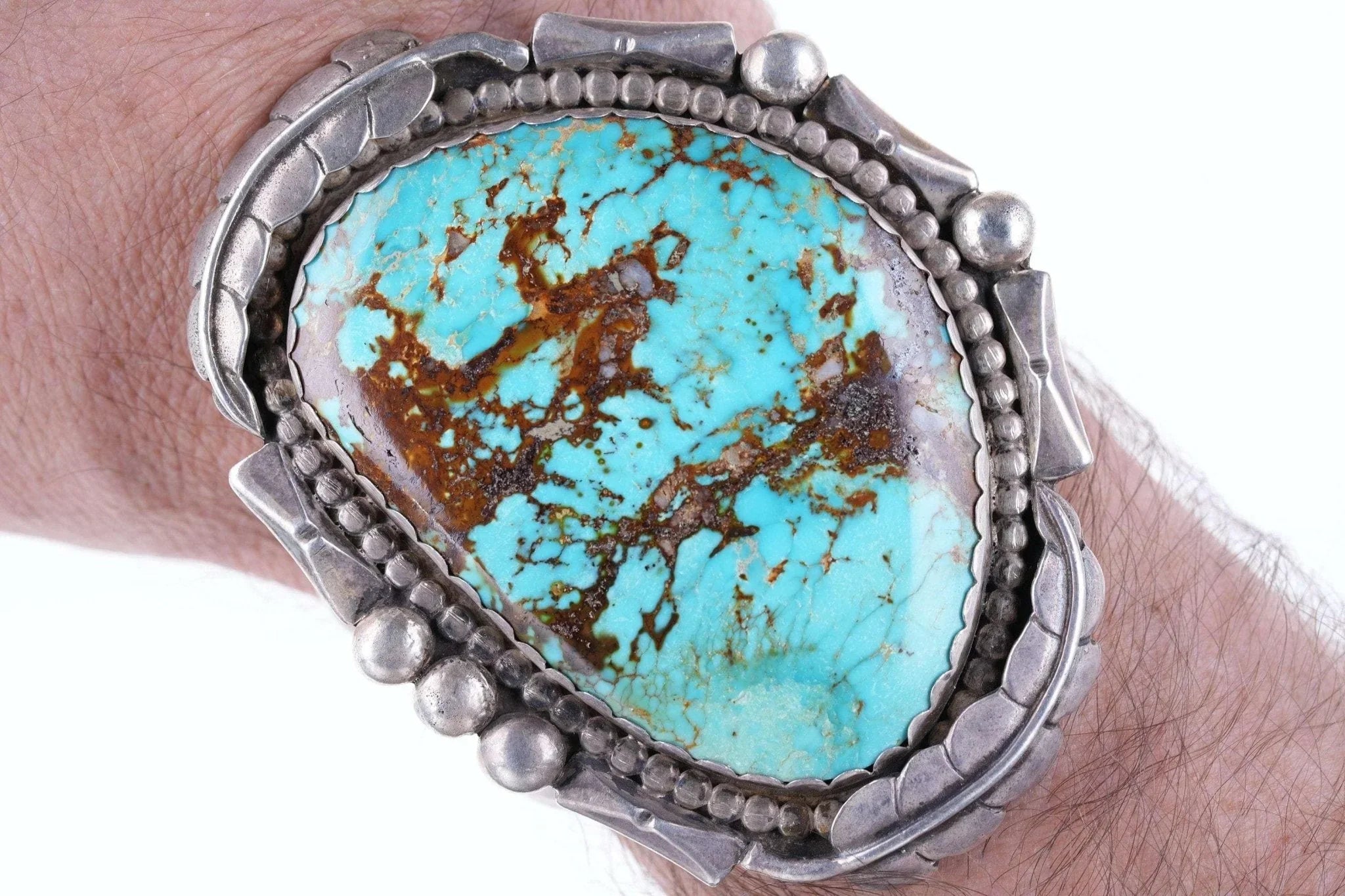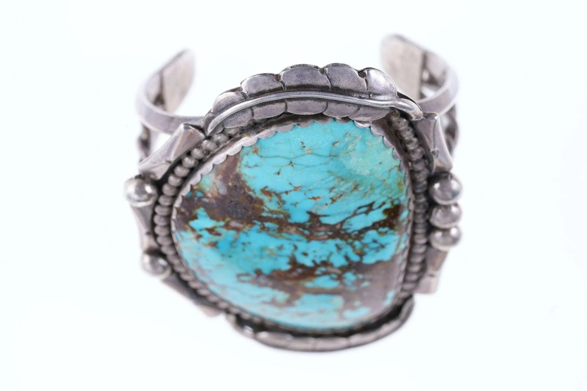 6.75" Large Vintage Native American sterling Turquoise cuff bracelet