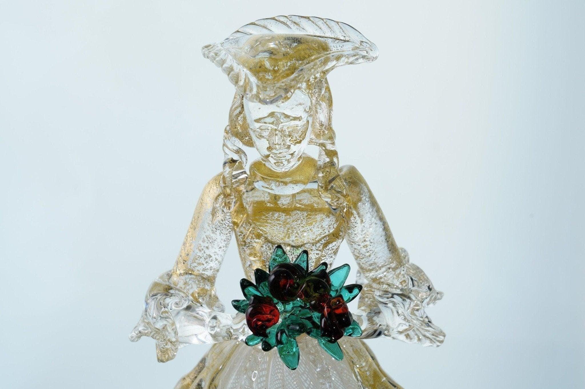 1950's Large Barovier and Toso Murano Woman with Bouquet figure