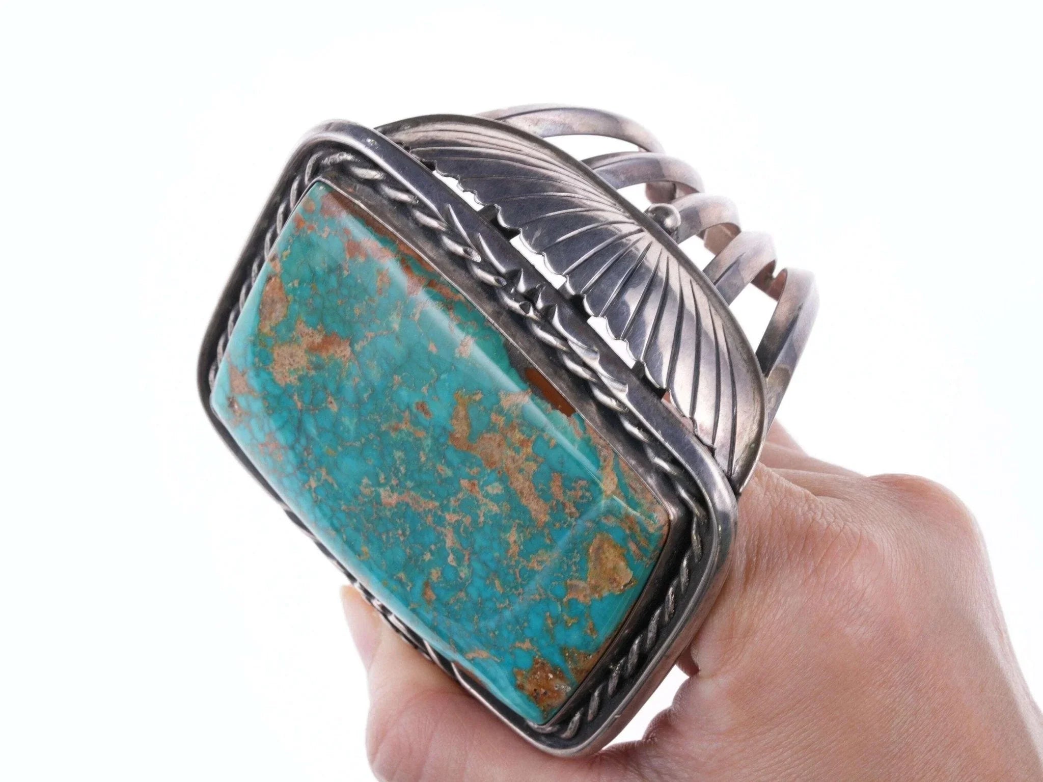 6.625" 306ct Vintage Navajo Silver and Turquoise cuff bracelet Huge