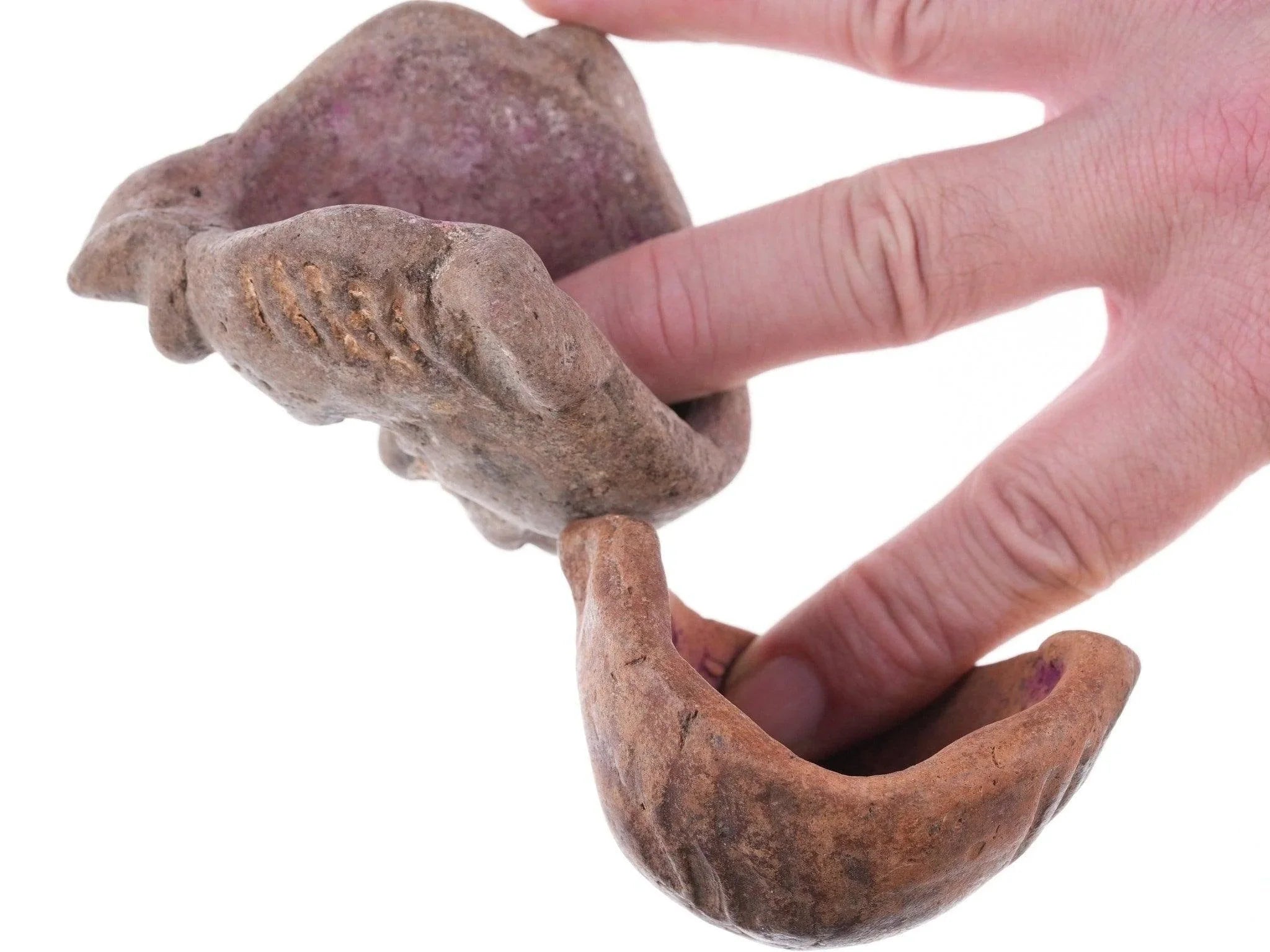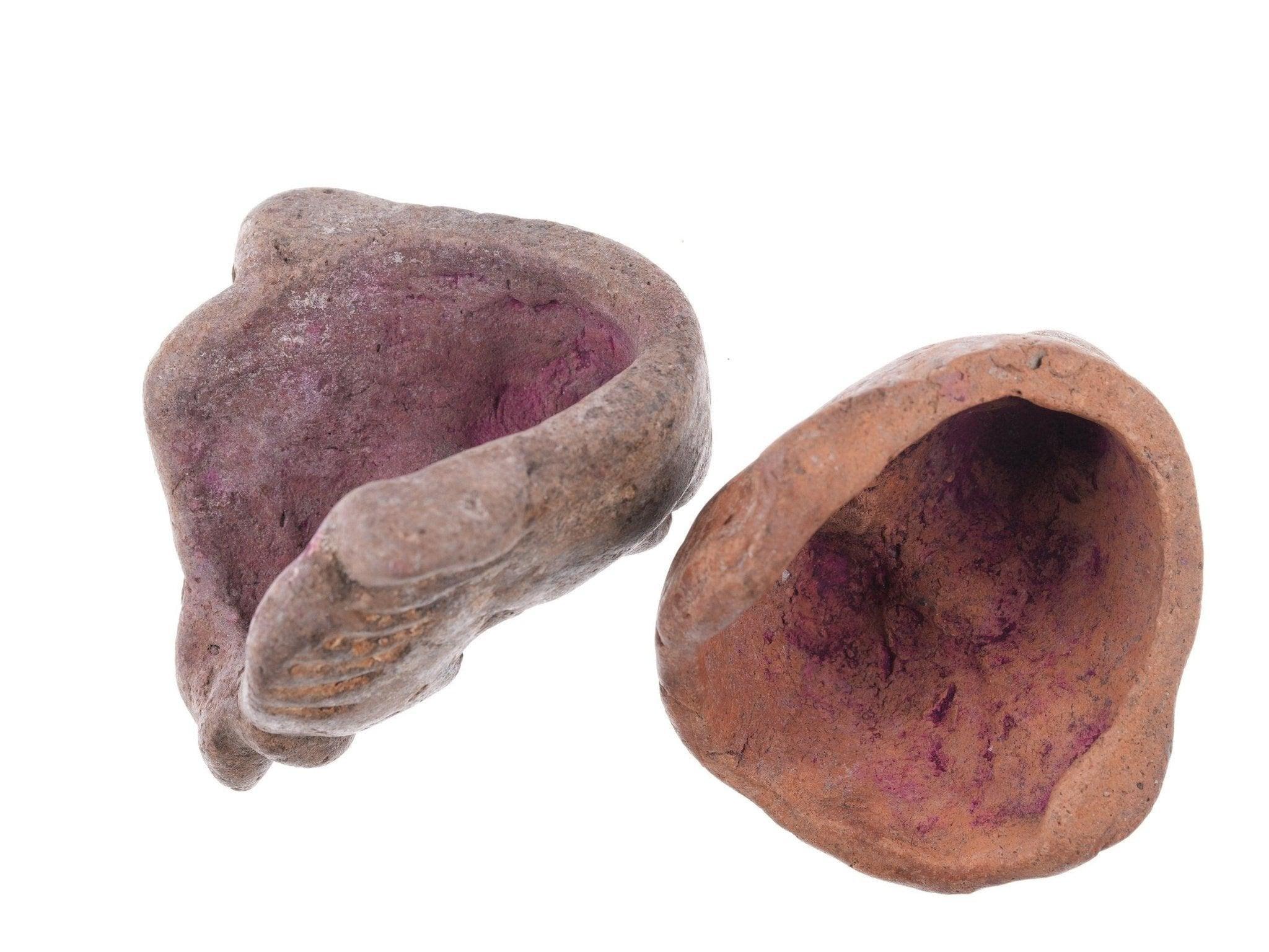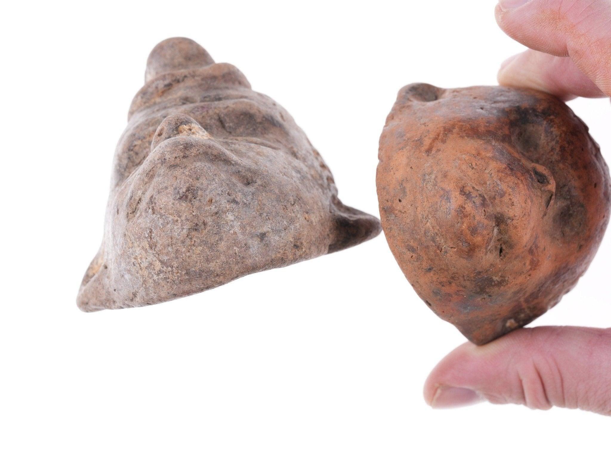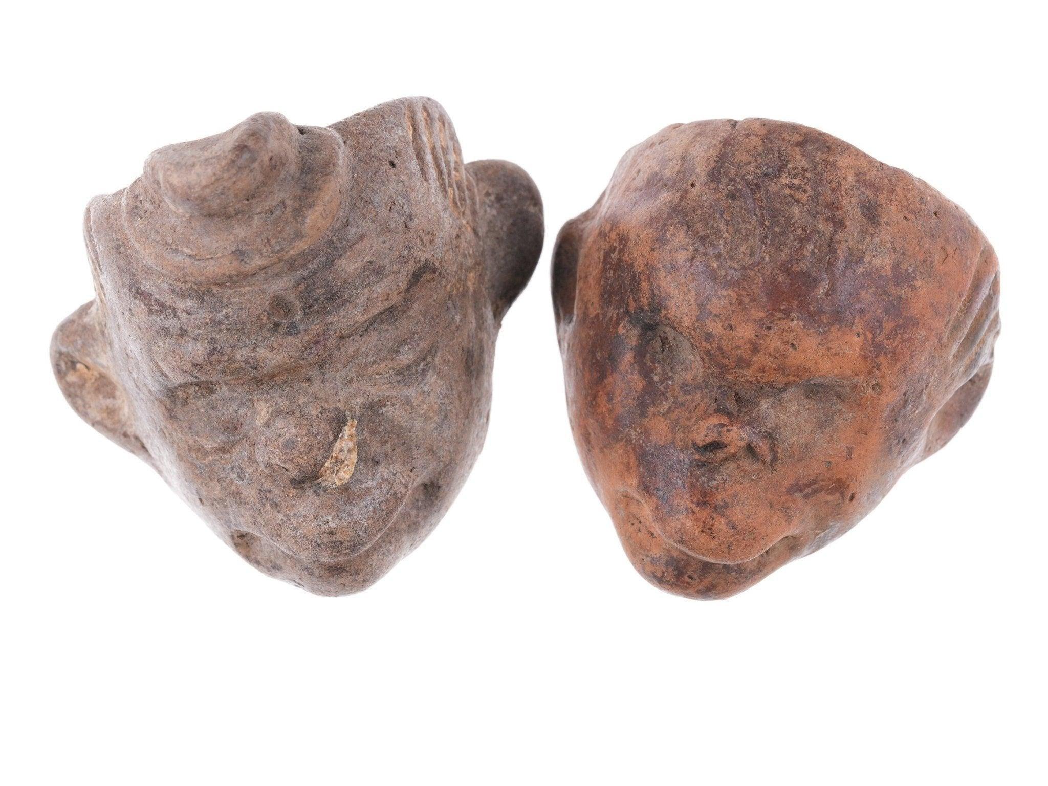 2 Antique Central American Clay Monkey Mask molds.  These are very old, not sure<br>how old.  They are molds for papier mache masks. They were part of a very<br>extensive Mexican/central American mask collection. They are small largest 3.25"<br>both ways. Selling both.