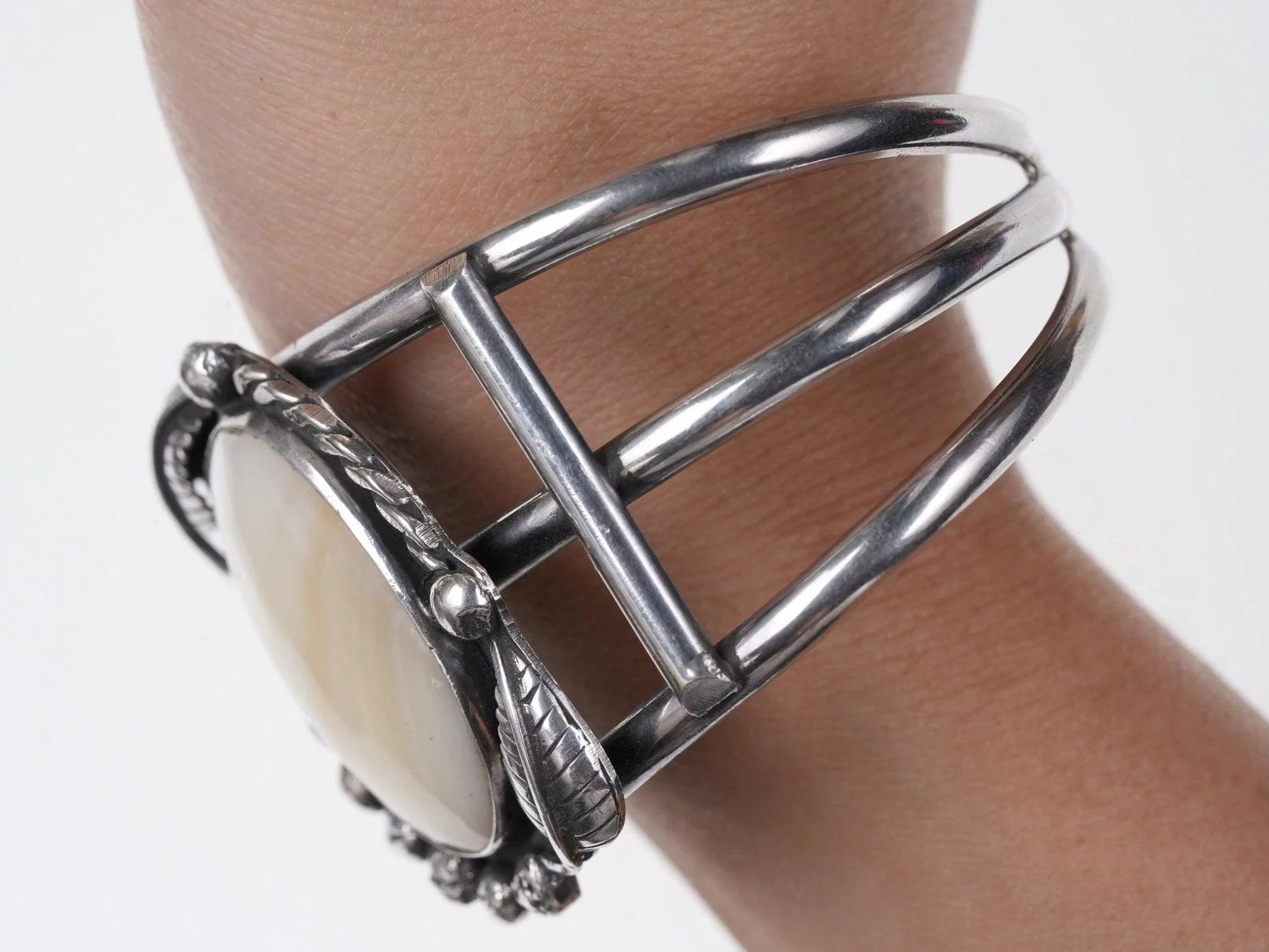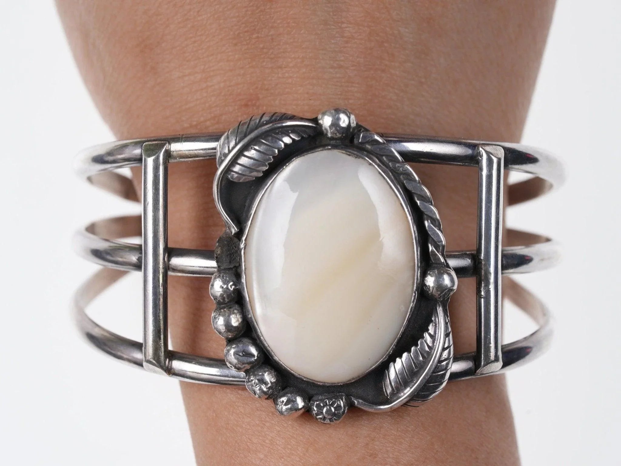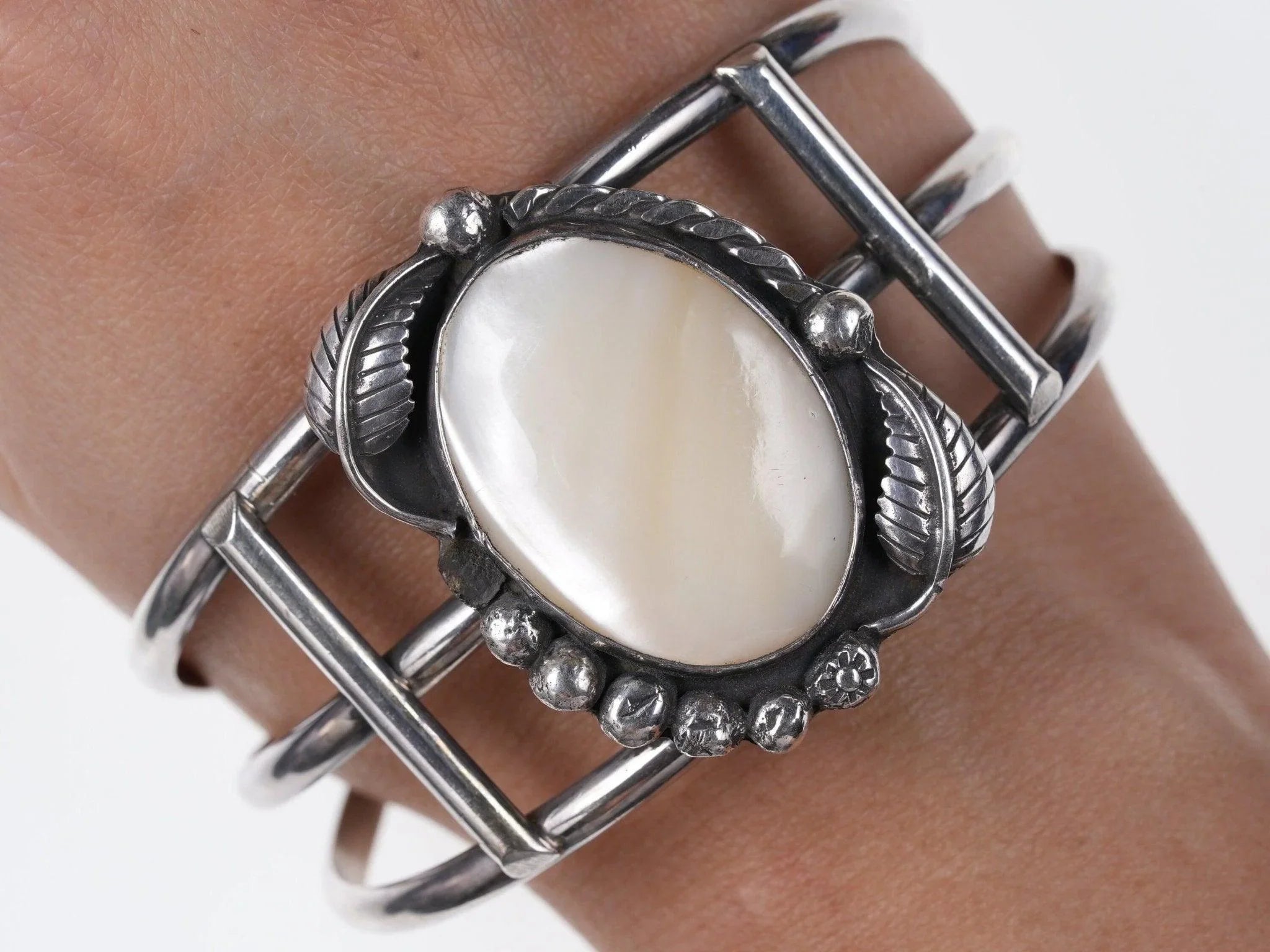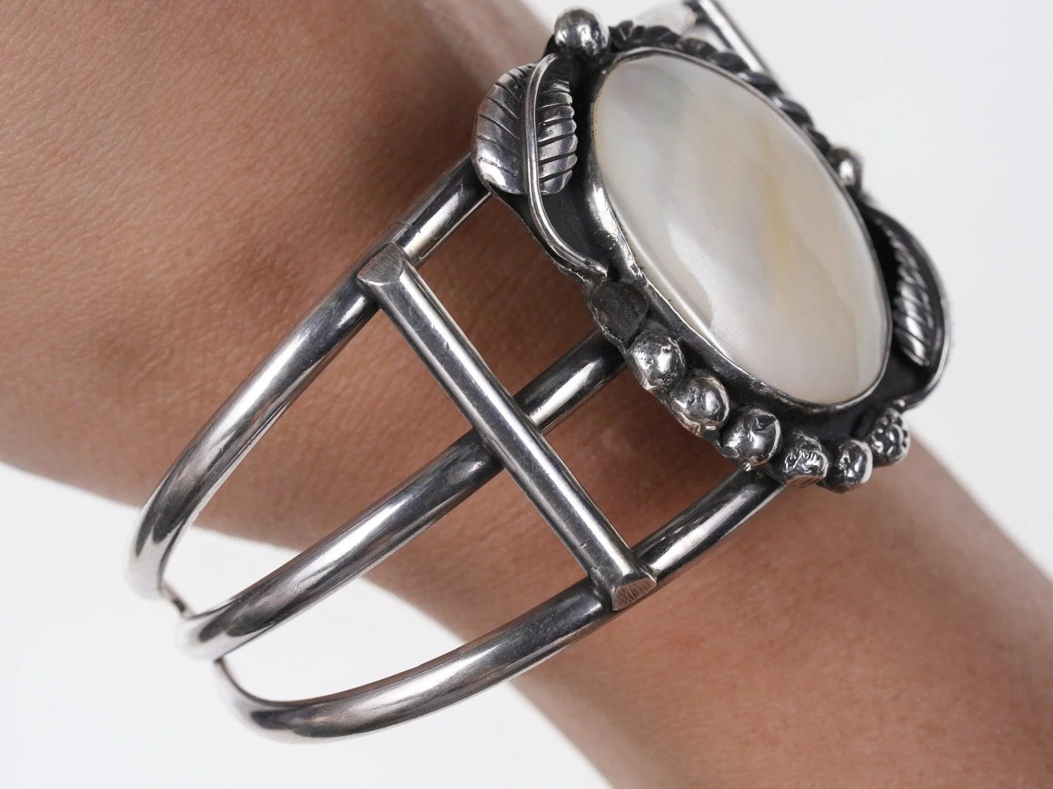 7.5" Native American Sterling silver and abalone cuff bracelet