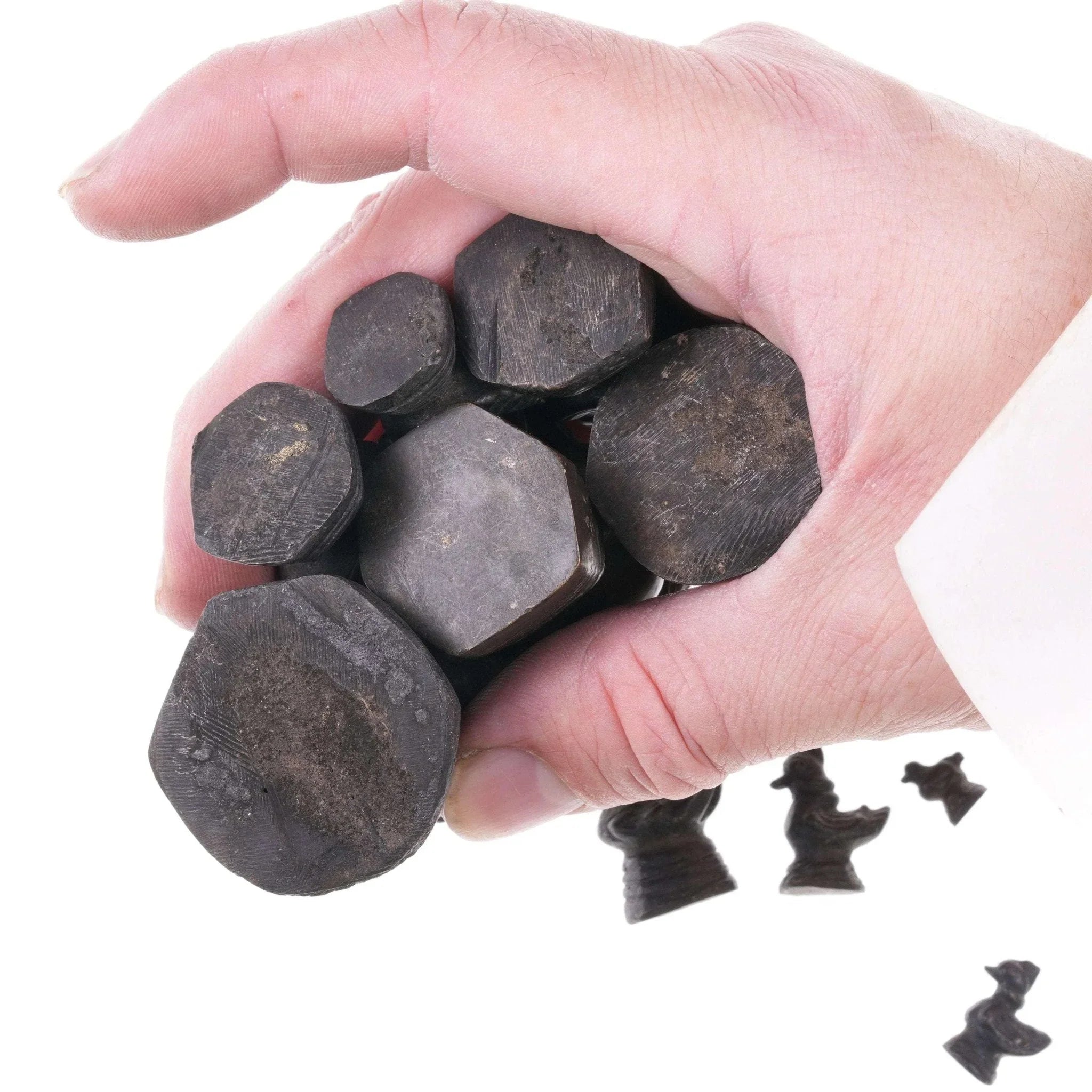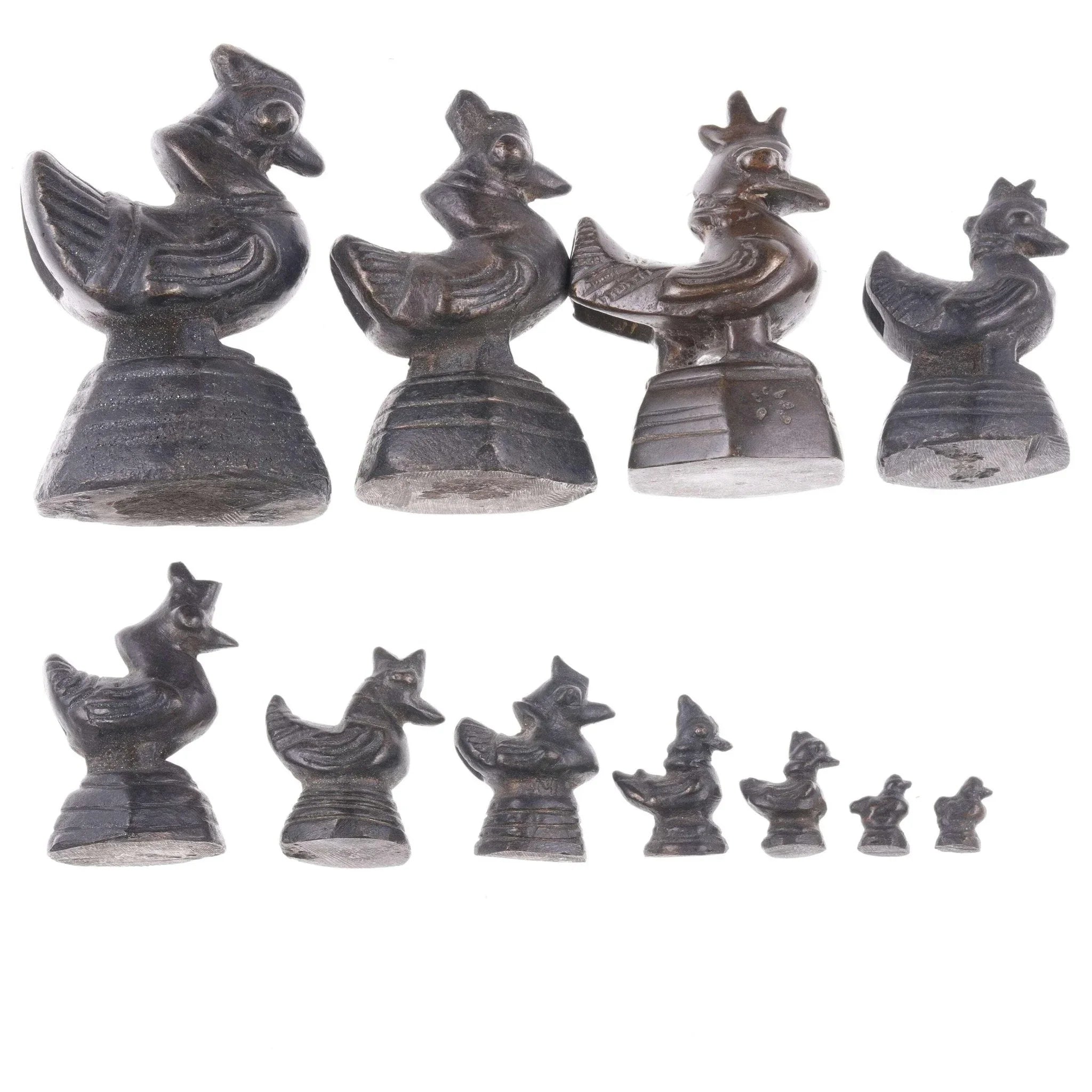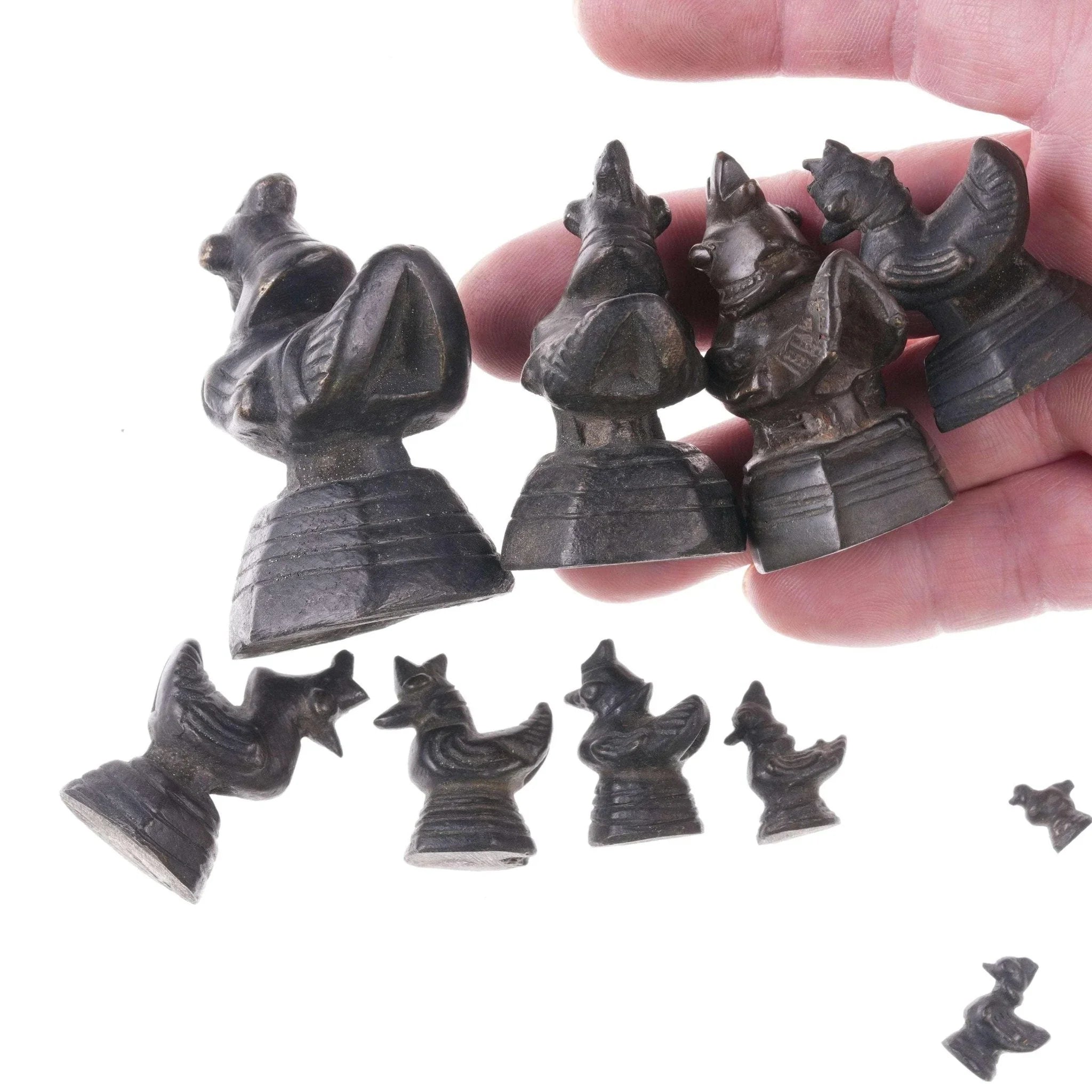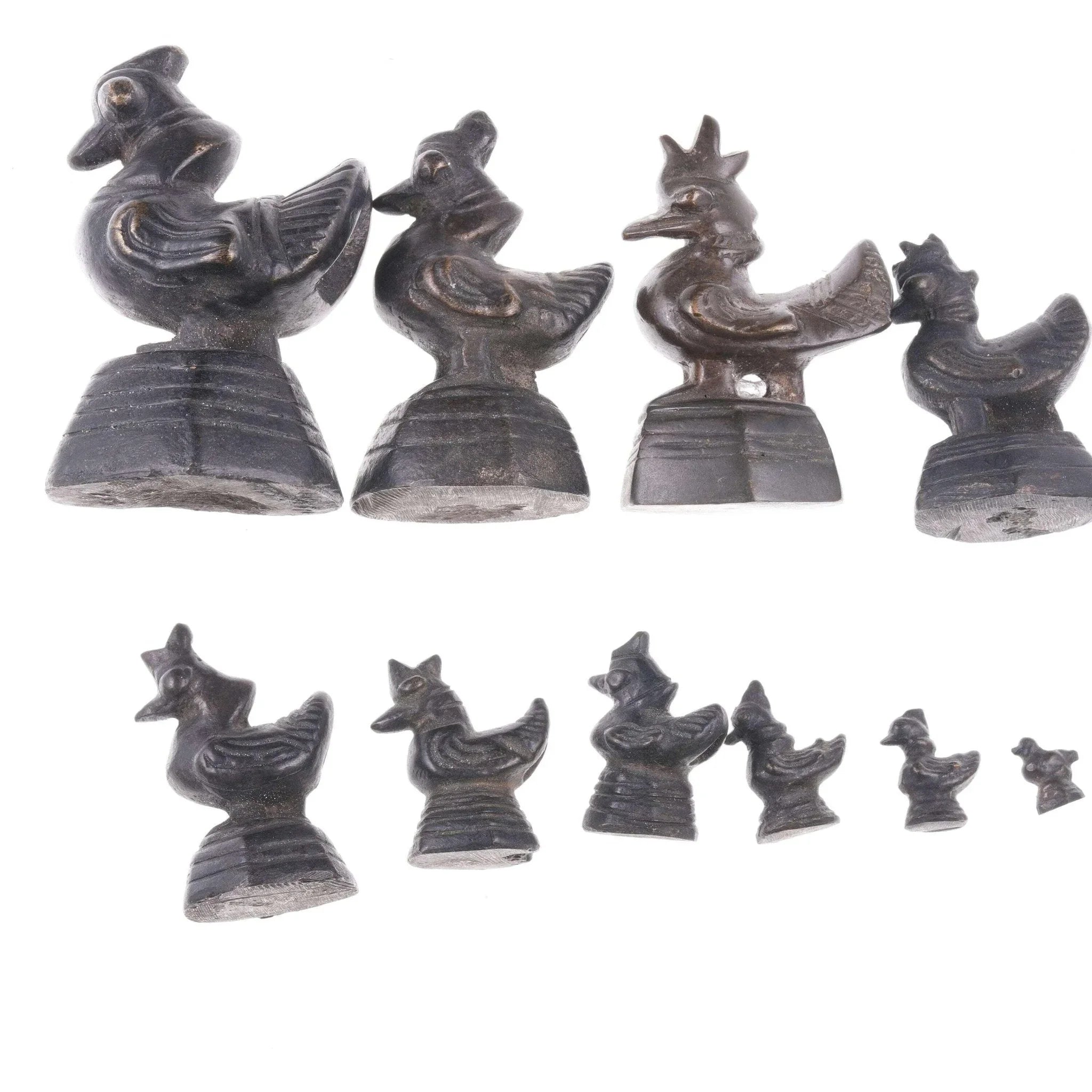 Extensive Antique Burmese Bronze opium weight set. Largest 2.5" tall 240.7 grams. Smallest 3/8" tall 1.4 grams, very extensive set collected in the mid 20th century.