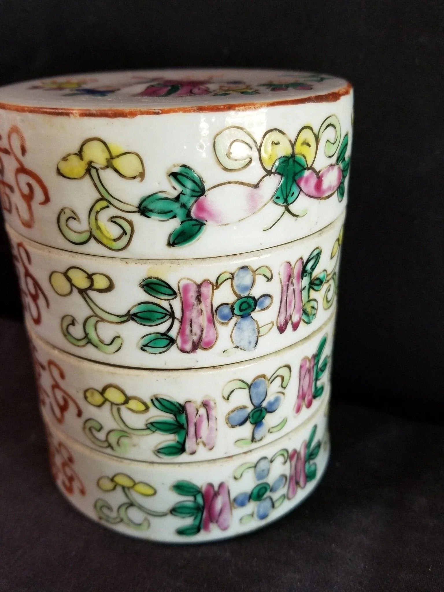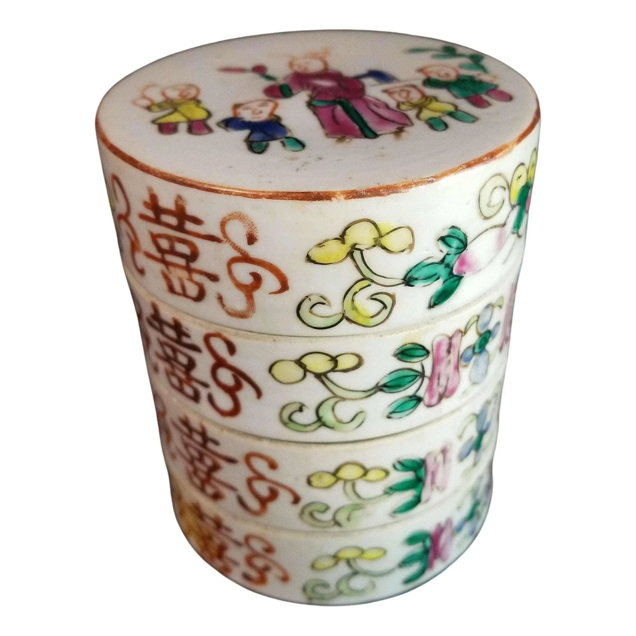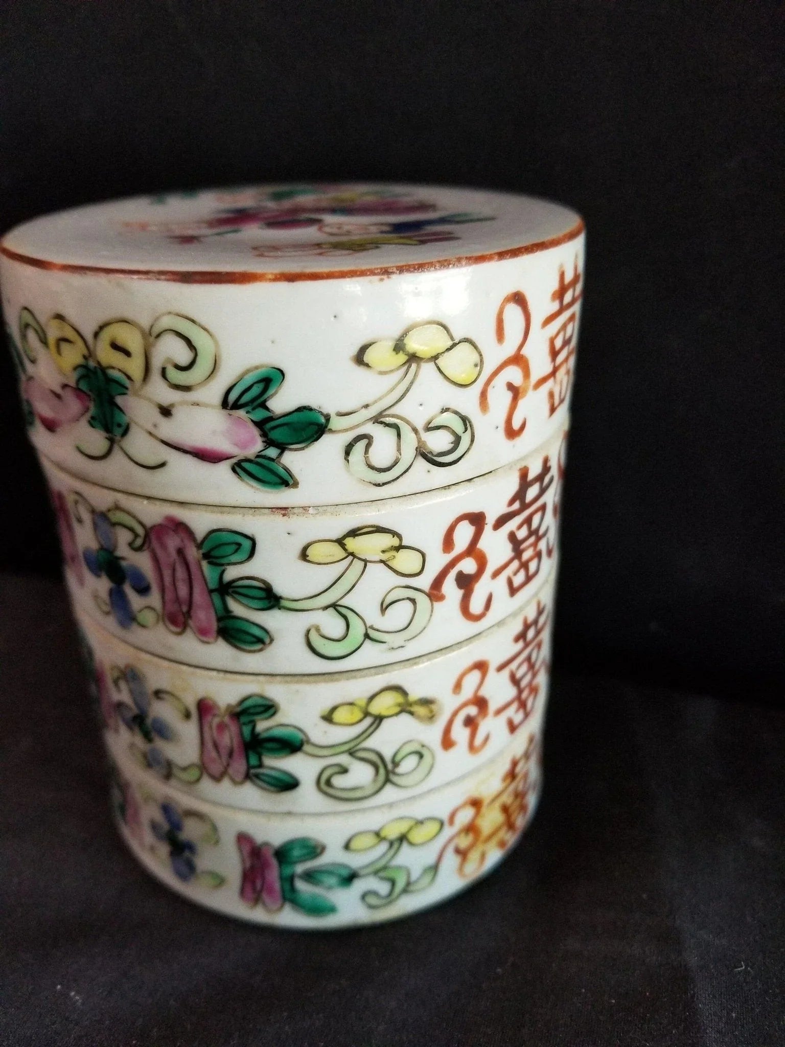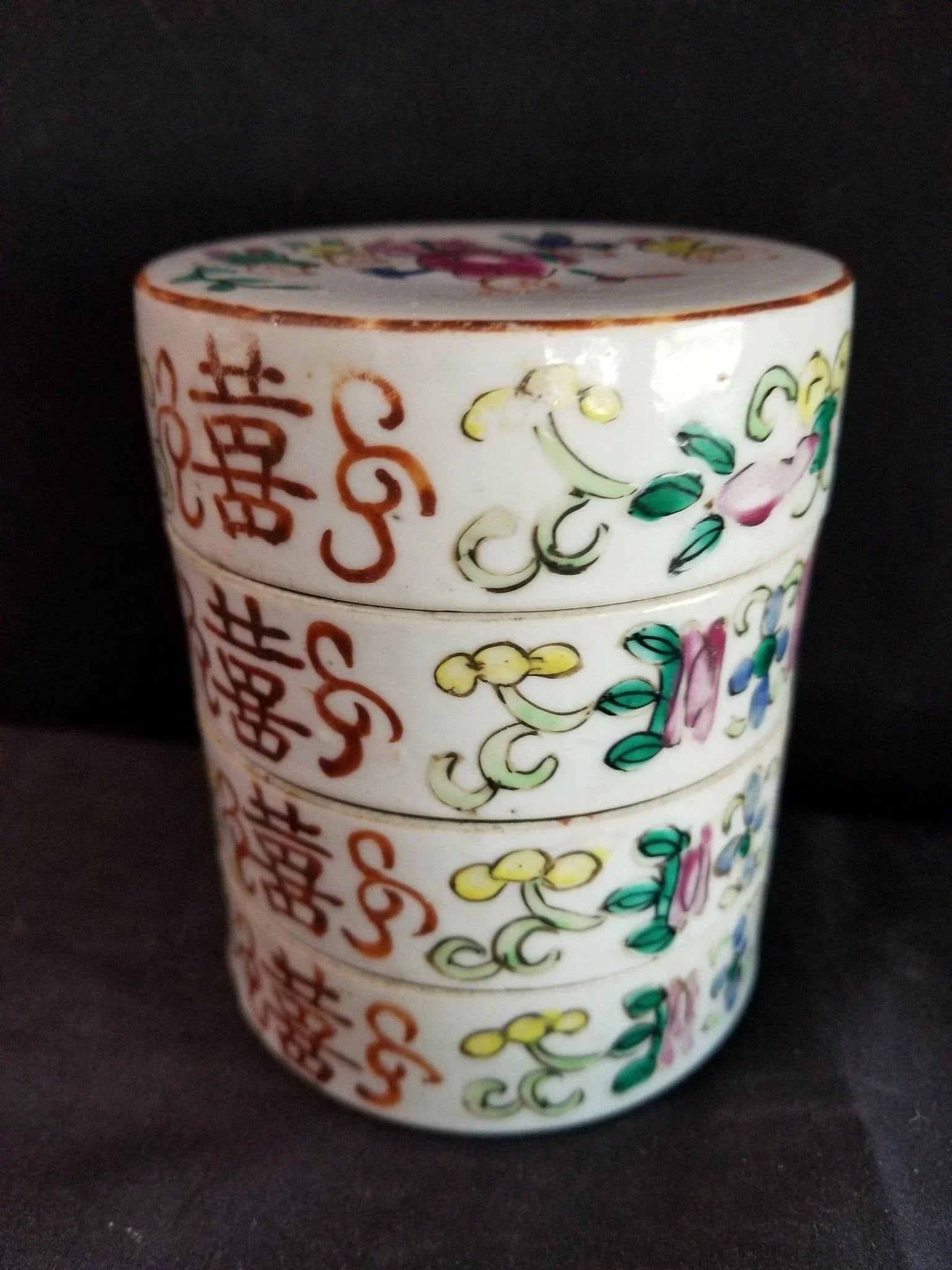 Antique Famille Rose Stacking box Set Teacher, Children, Double Happiness Qing