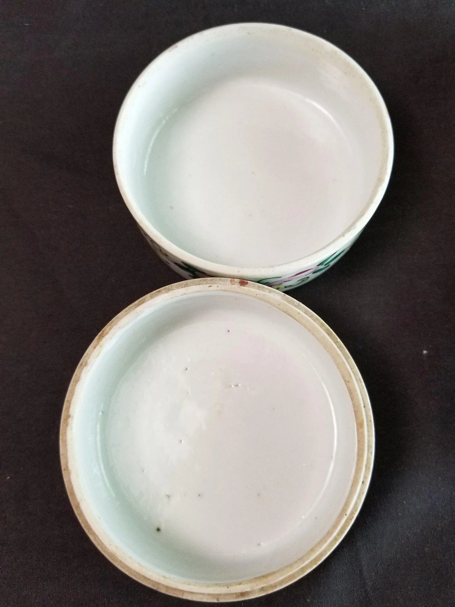 Guaranteed circa 19th century to Late Qing Dynasty. Nice whimsical decoration 4.5" tall x 3 5/8" wide. Some minor flakes shown in pics. Very functional and presentable. Wheel thrown and hand decorated. No cracks or restorations.