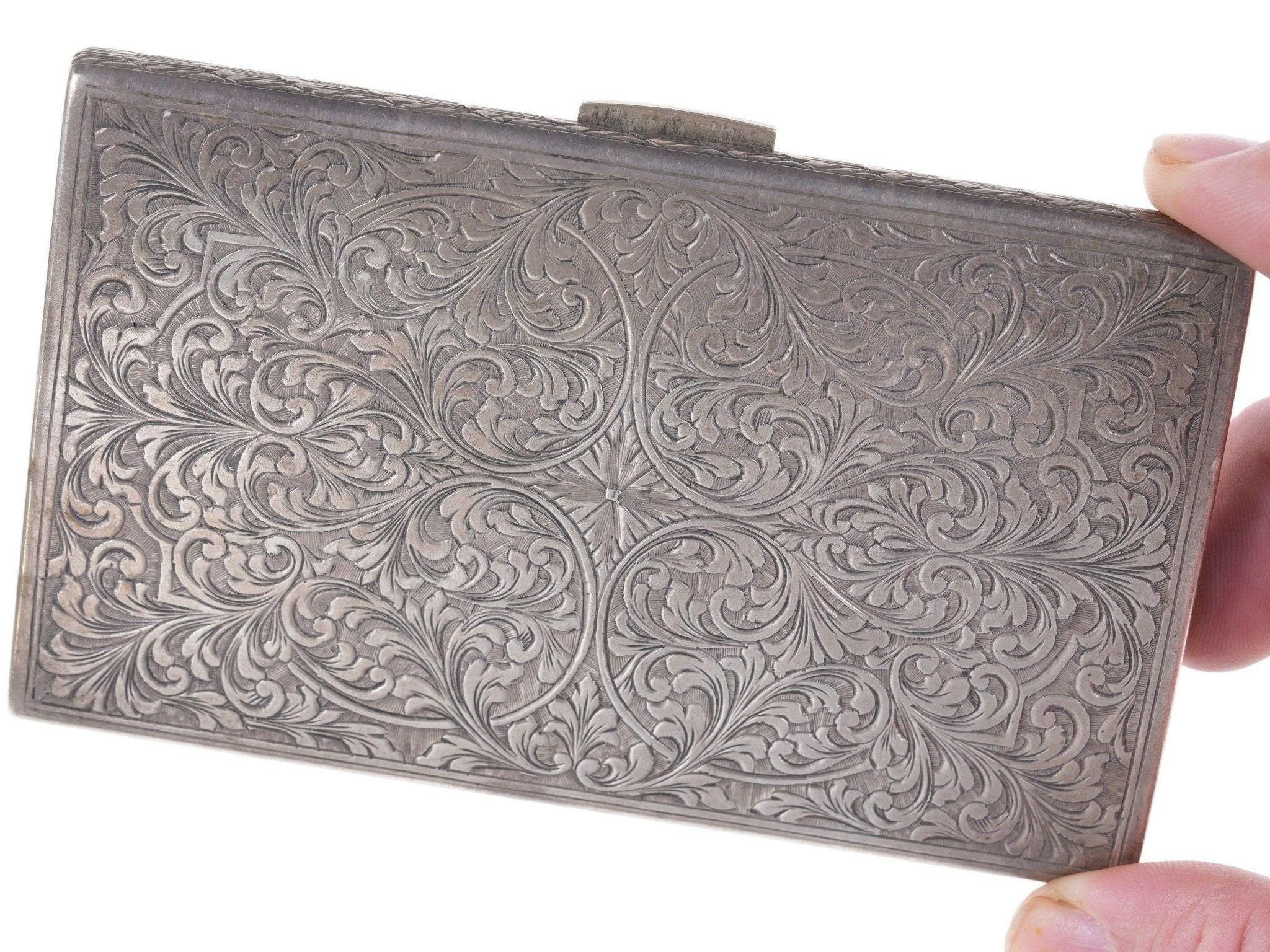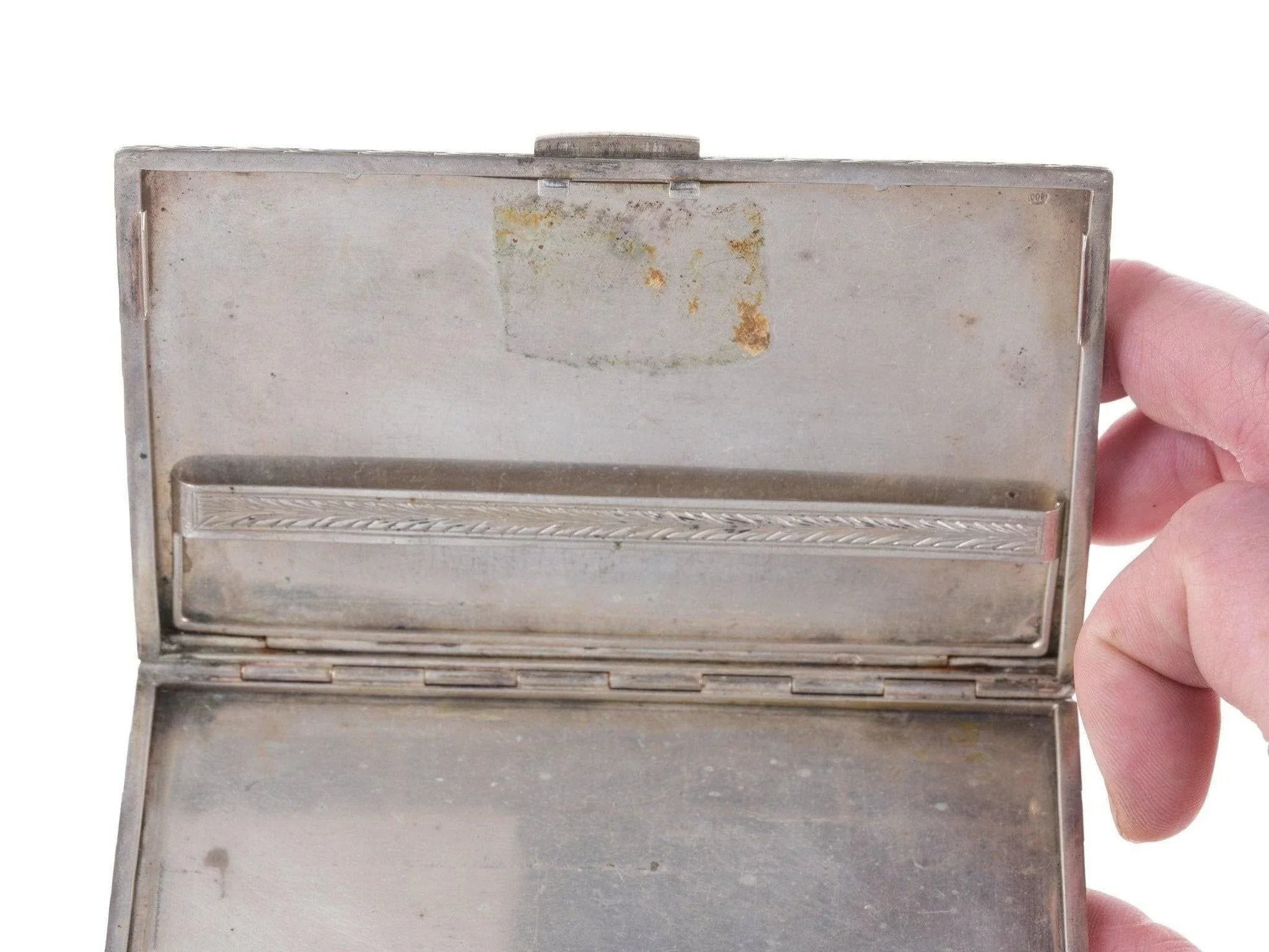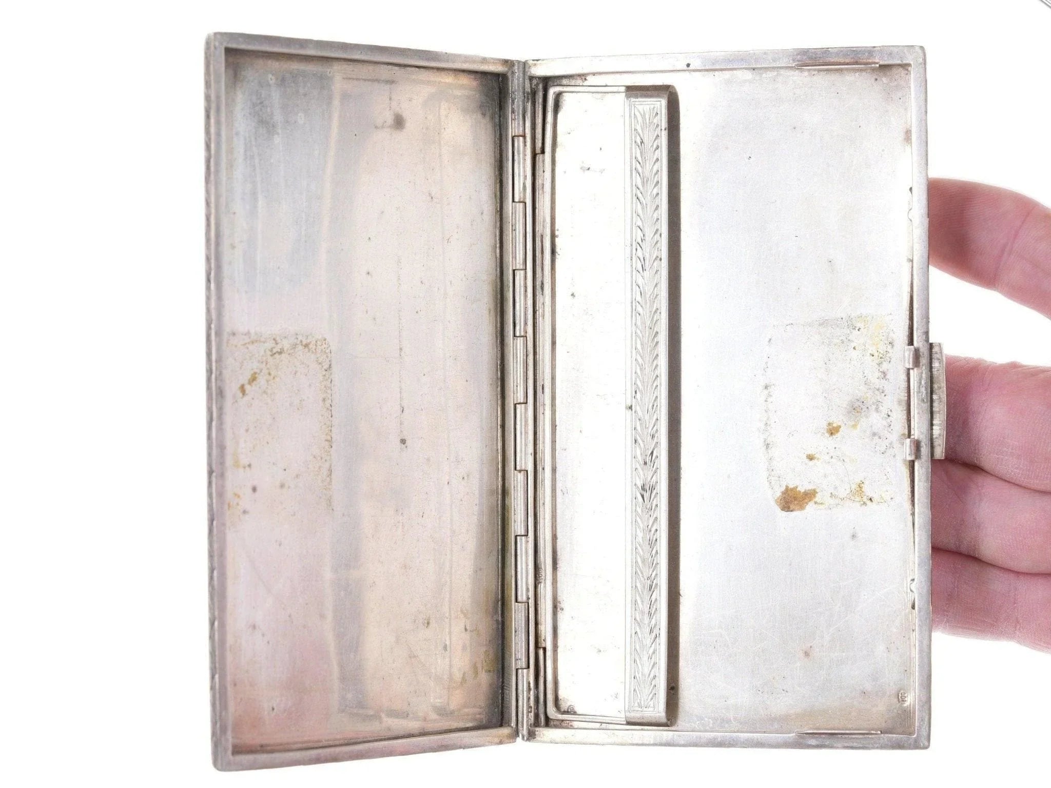 Antique Engraved 800 Silver case. Fancy and heavy with no issues, very well<br>made. Monogrammed as shown, marked 800 top right inside, tested 80% silver or<br>more. 5 1/8" x 3.25". Inside compartment will hold s or anything else of similar<br>size up to 2.75" long. 184 grams.