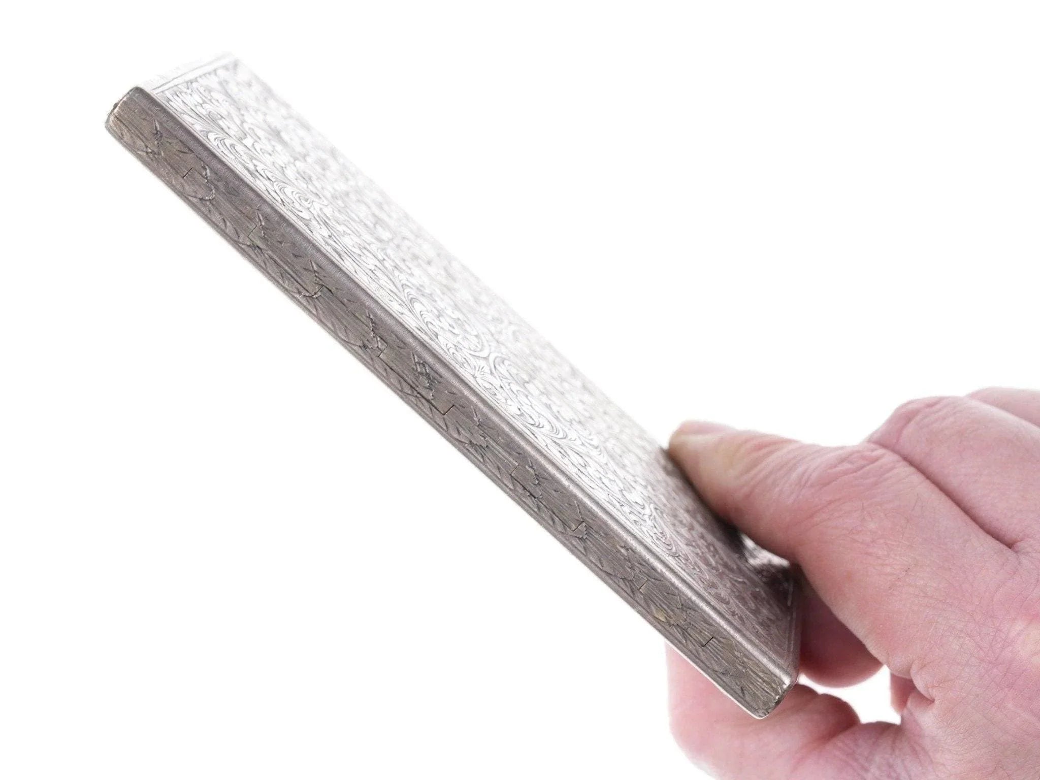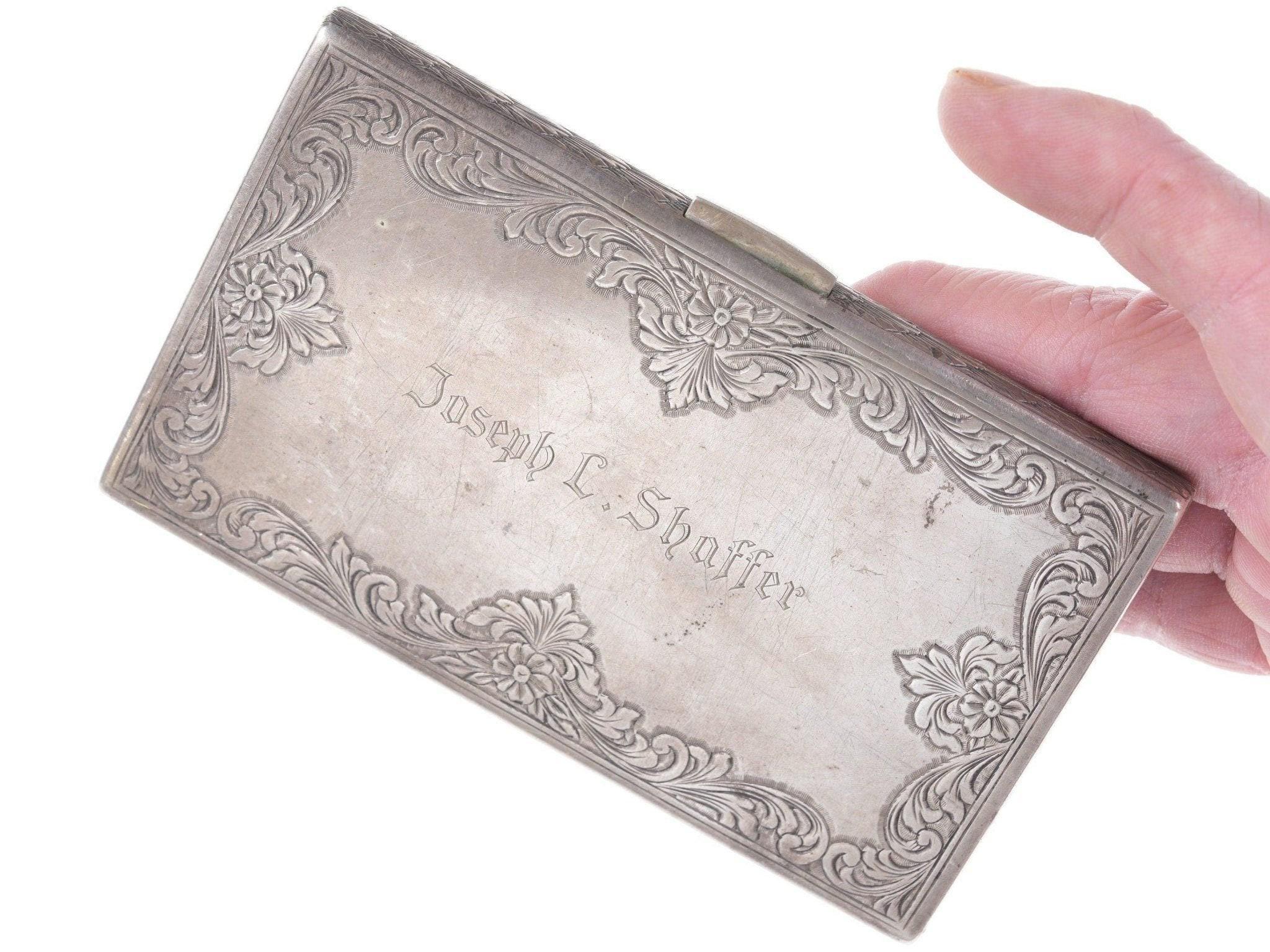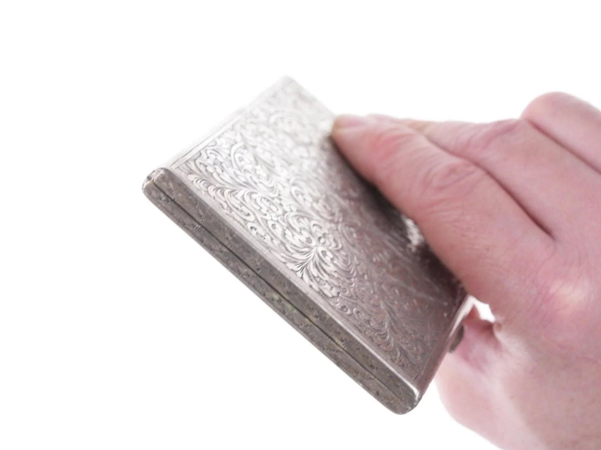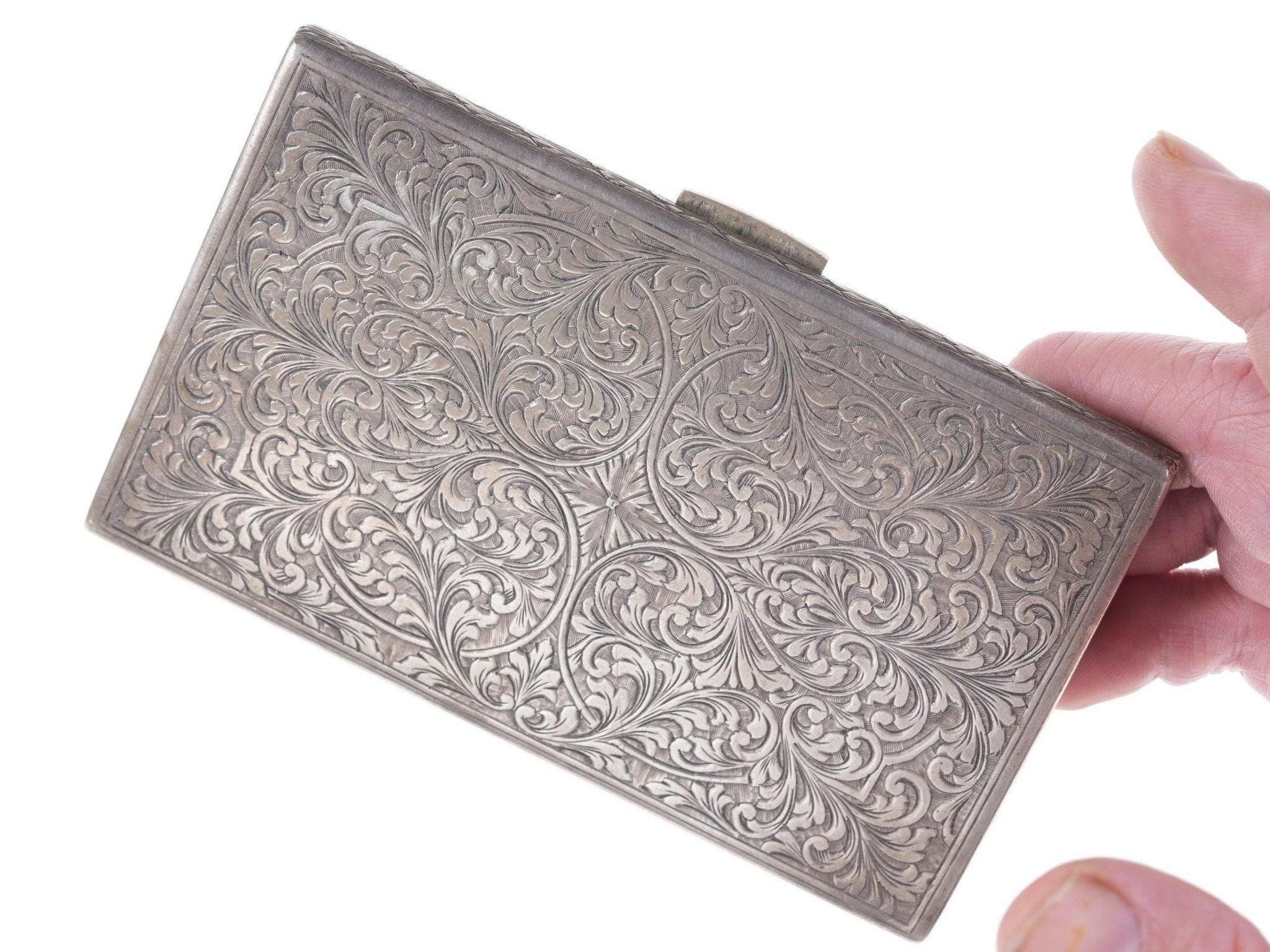 Antique Engraved 800 Silver case. Fancy and heavy with no issues, very well<br>made. Monogrammed as shown, marked 800 top right inside, tested 80% silver or<br>more. 5 1/8" x 3.25". Inside compartment will hold s or anything else of similar<br>size up to 2.75" long. 184 grams.