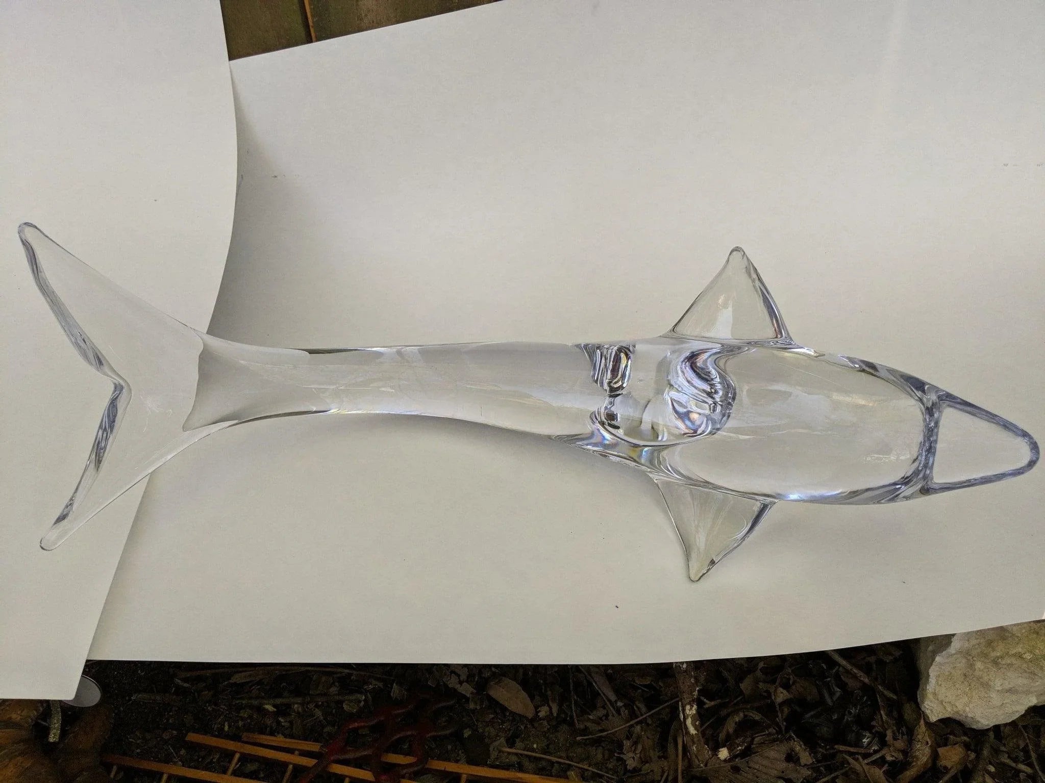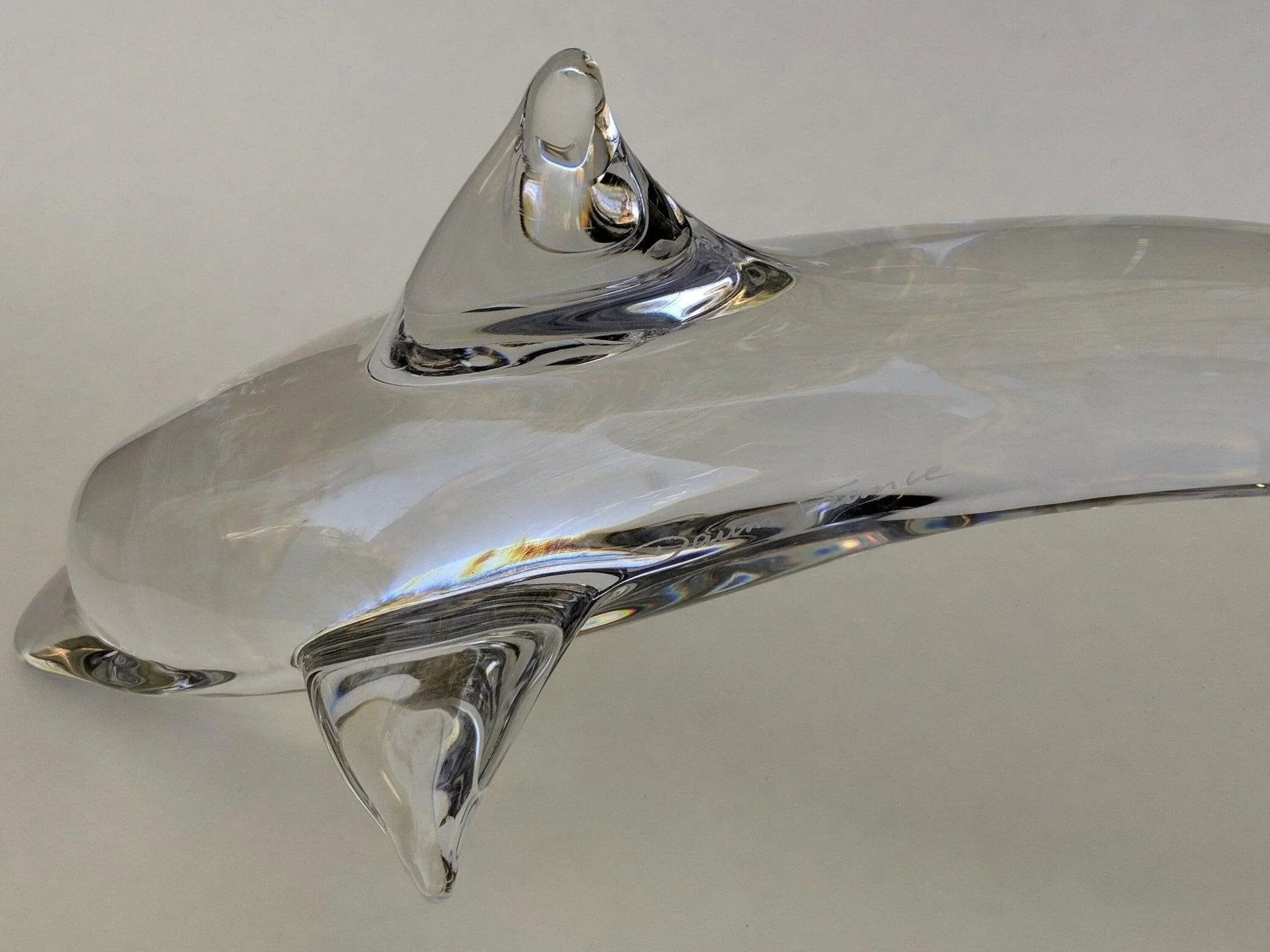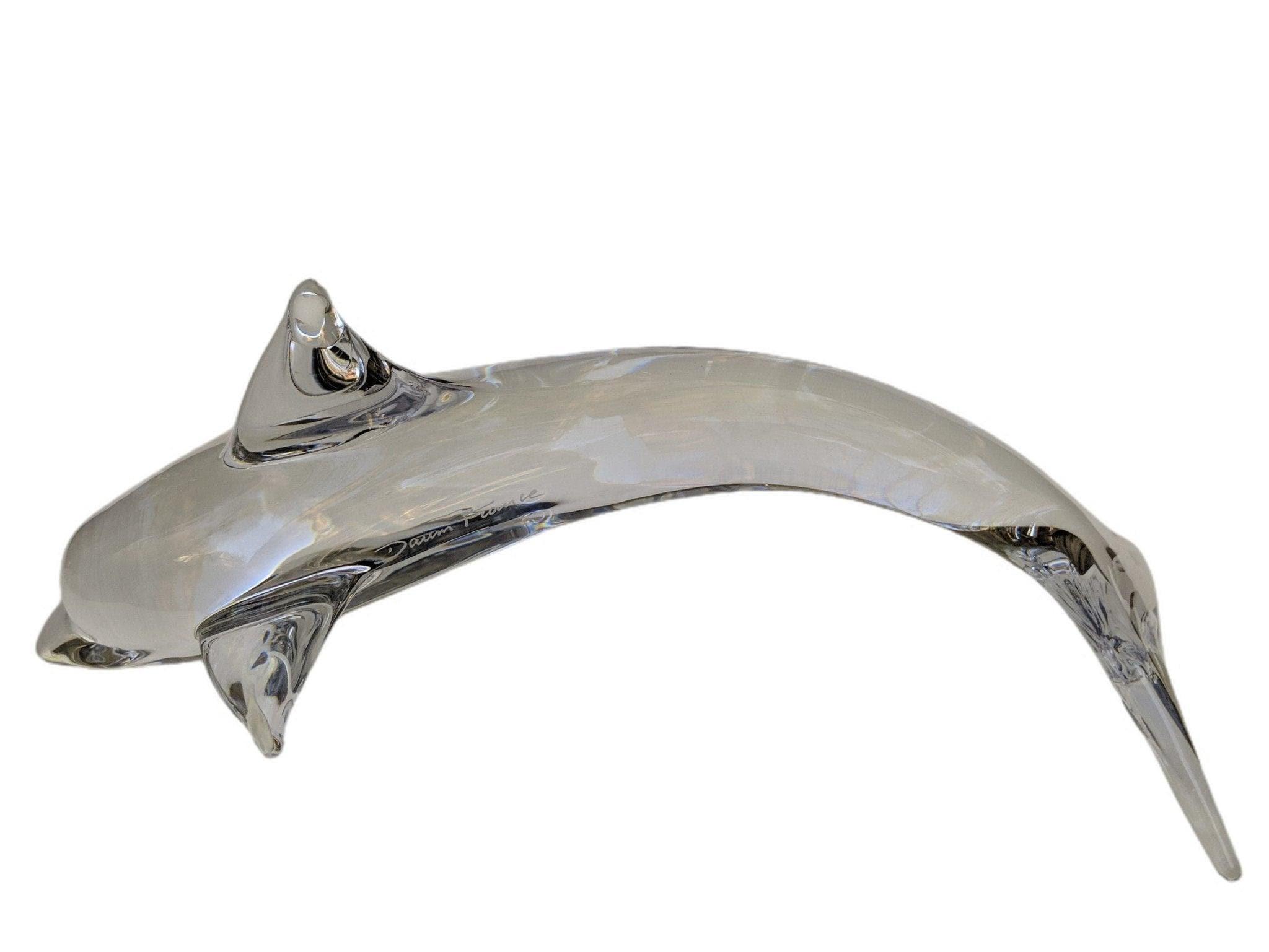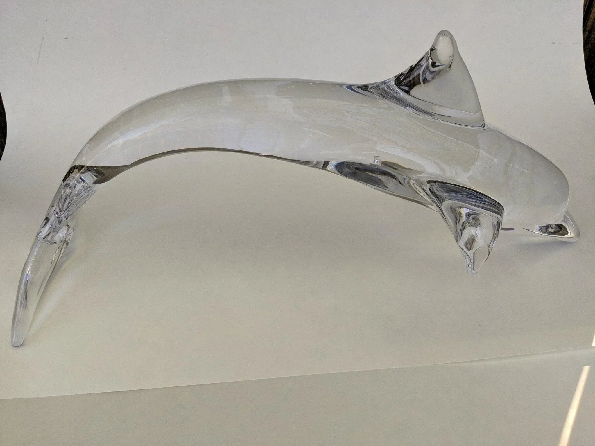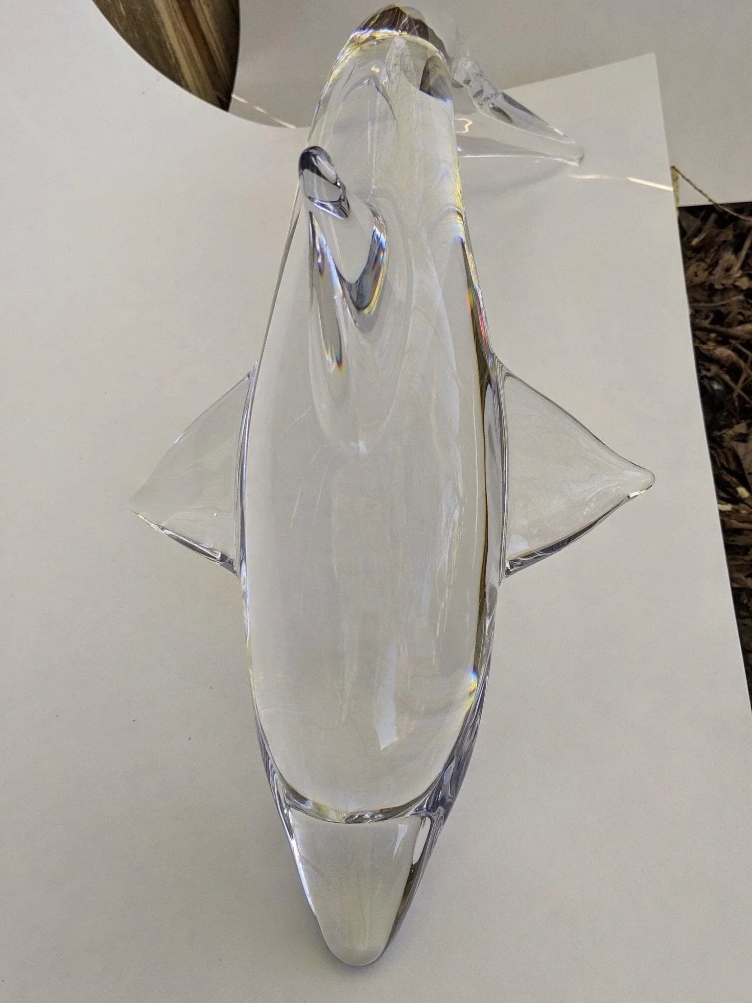 20" Daum French Crystal Dolphin Sculpture 7.5" wide and very heavy with no<br>cracks, chips, or scratches. Very heavy for its size, guaranteed authentic<br>French Daum crystal.