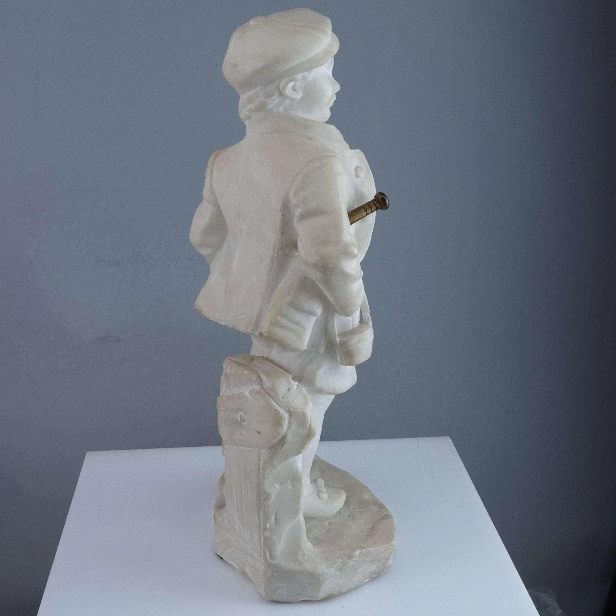 c1890 Sportsman Carved Italian Alabaster Figure by Picciole 11" tall