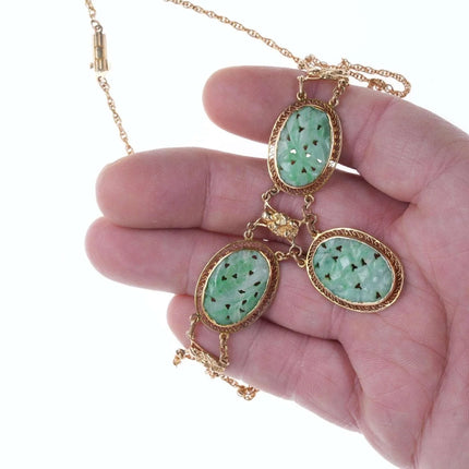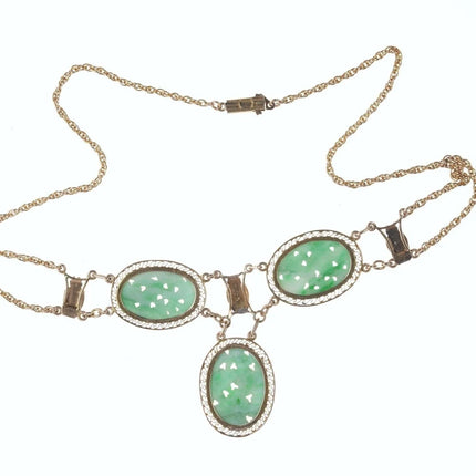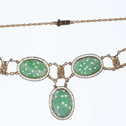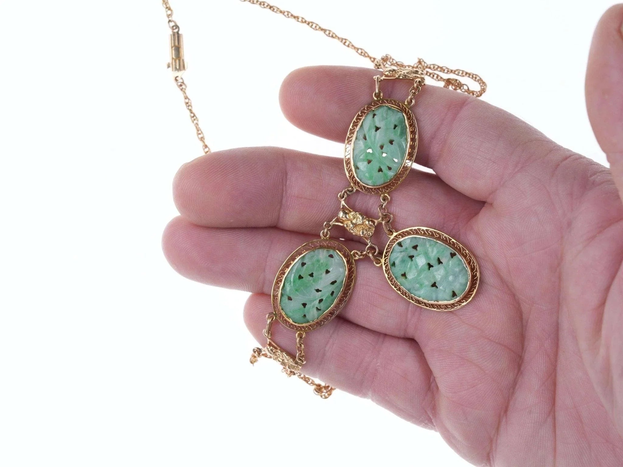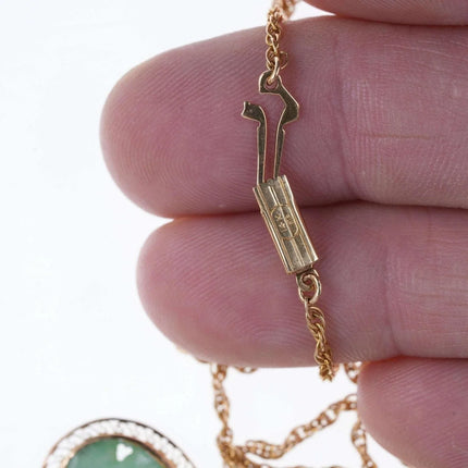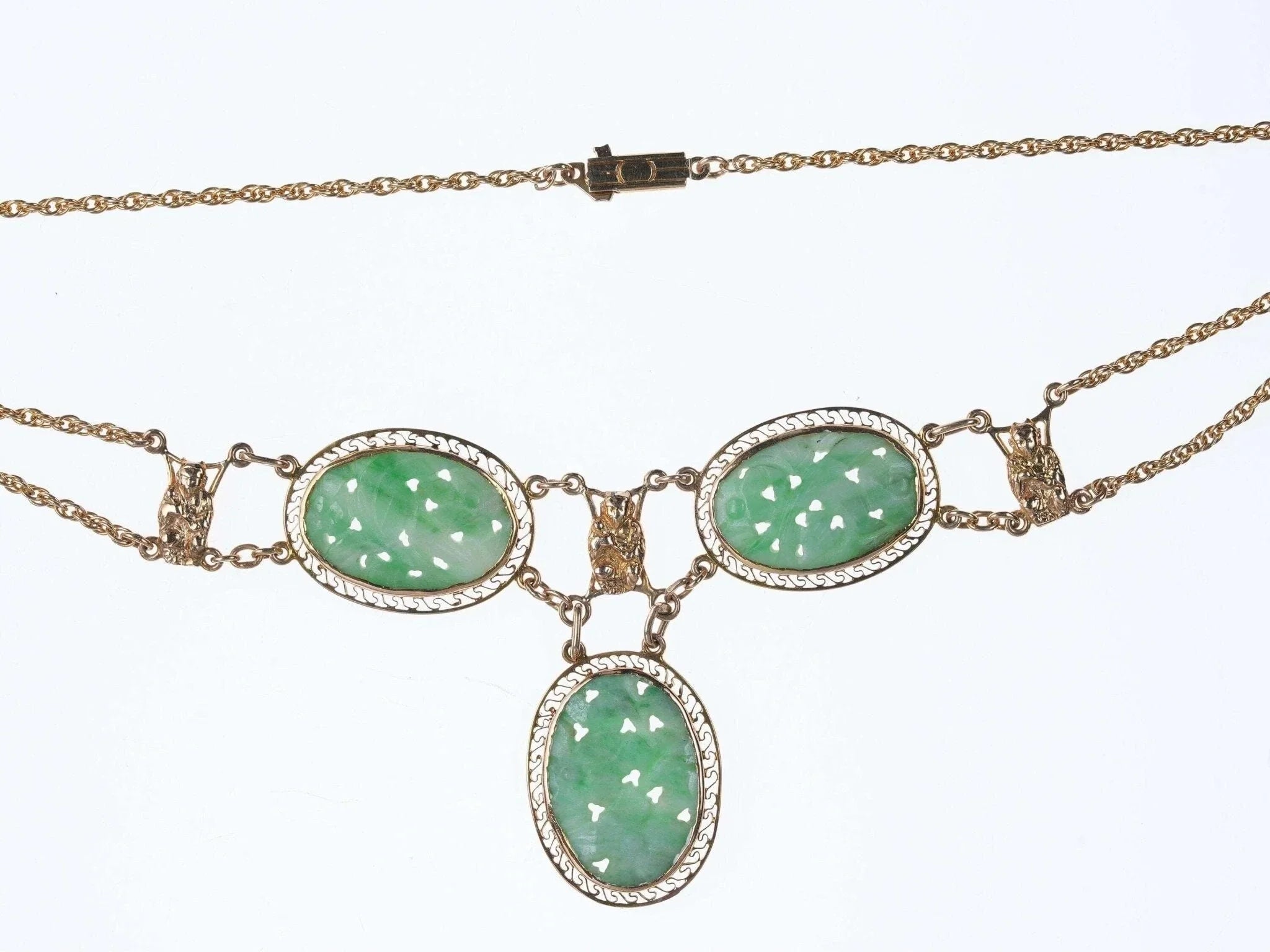 c1920's 14k/Jade Art Deco Period Necklace. Great necklace from the second<br>quarter of the 20th century with no issues. 16" long 15.5 grams, Marked and<br>tested 14k gold. Manufacturer/gold mark shown in last pic. I have seen this mark<br>on other Chinese exported jewelry from the period but I never tried to figure<br>out who it was.