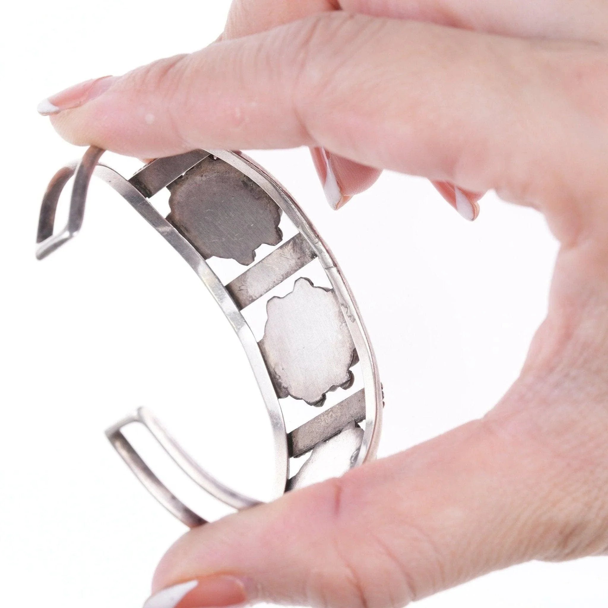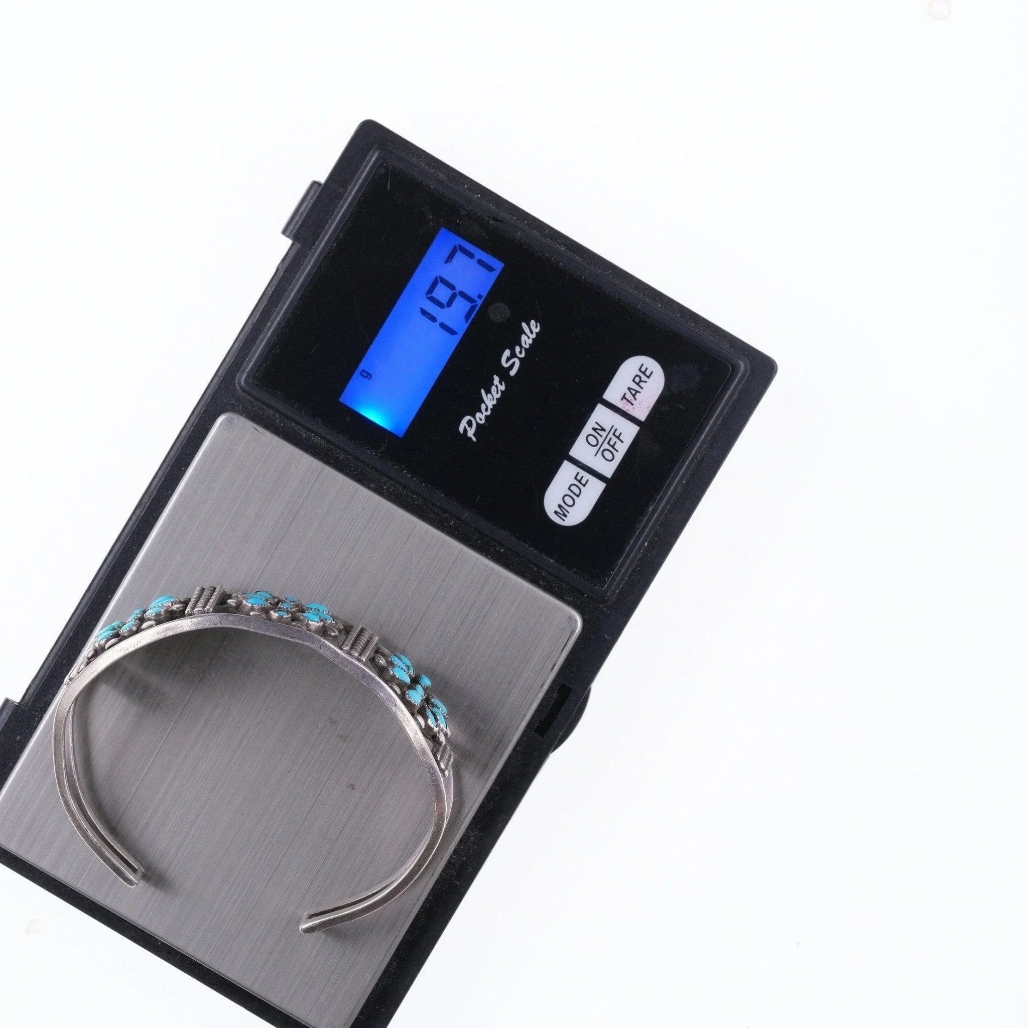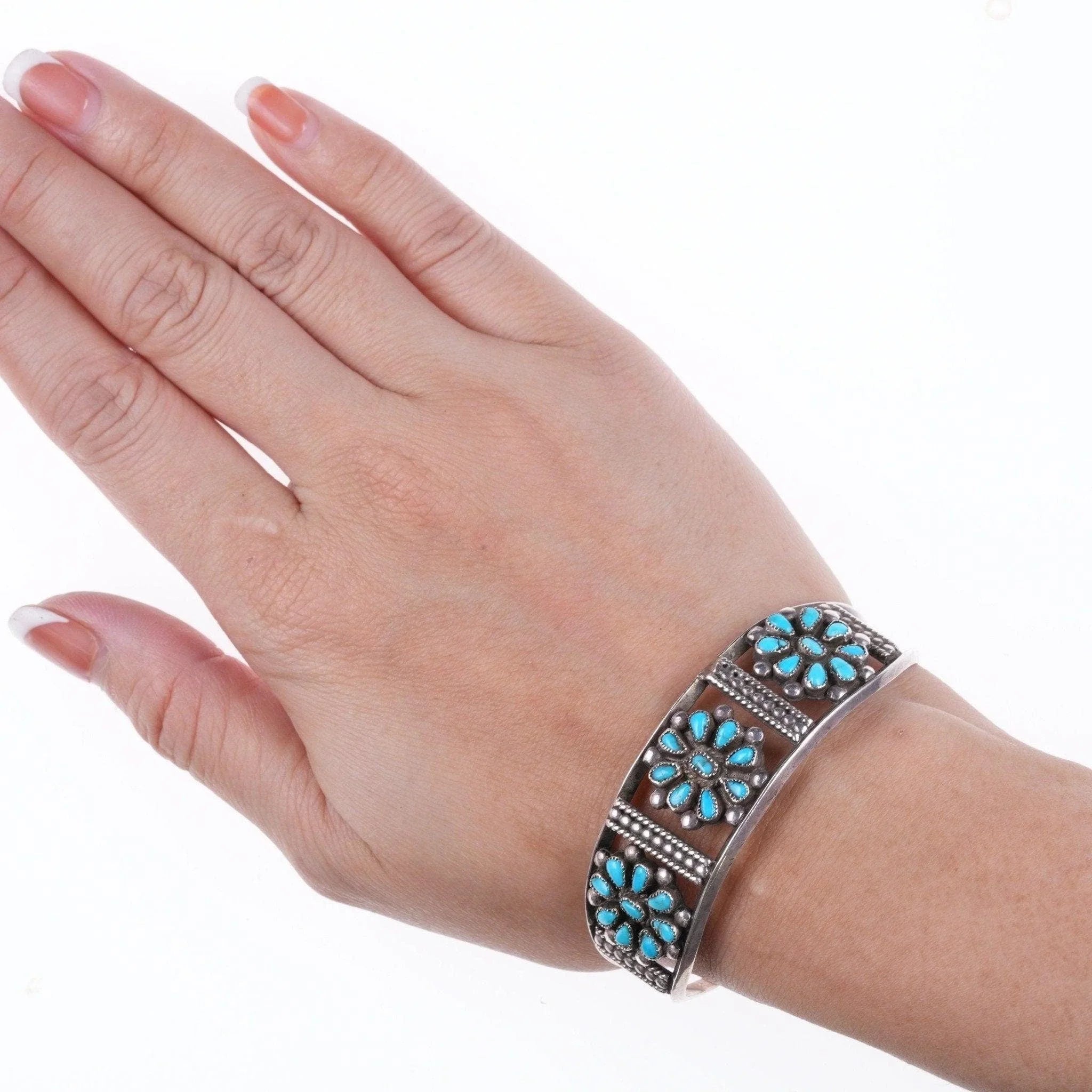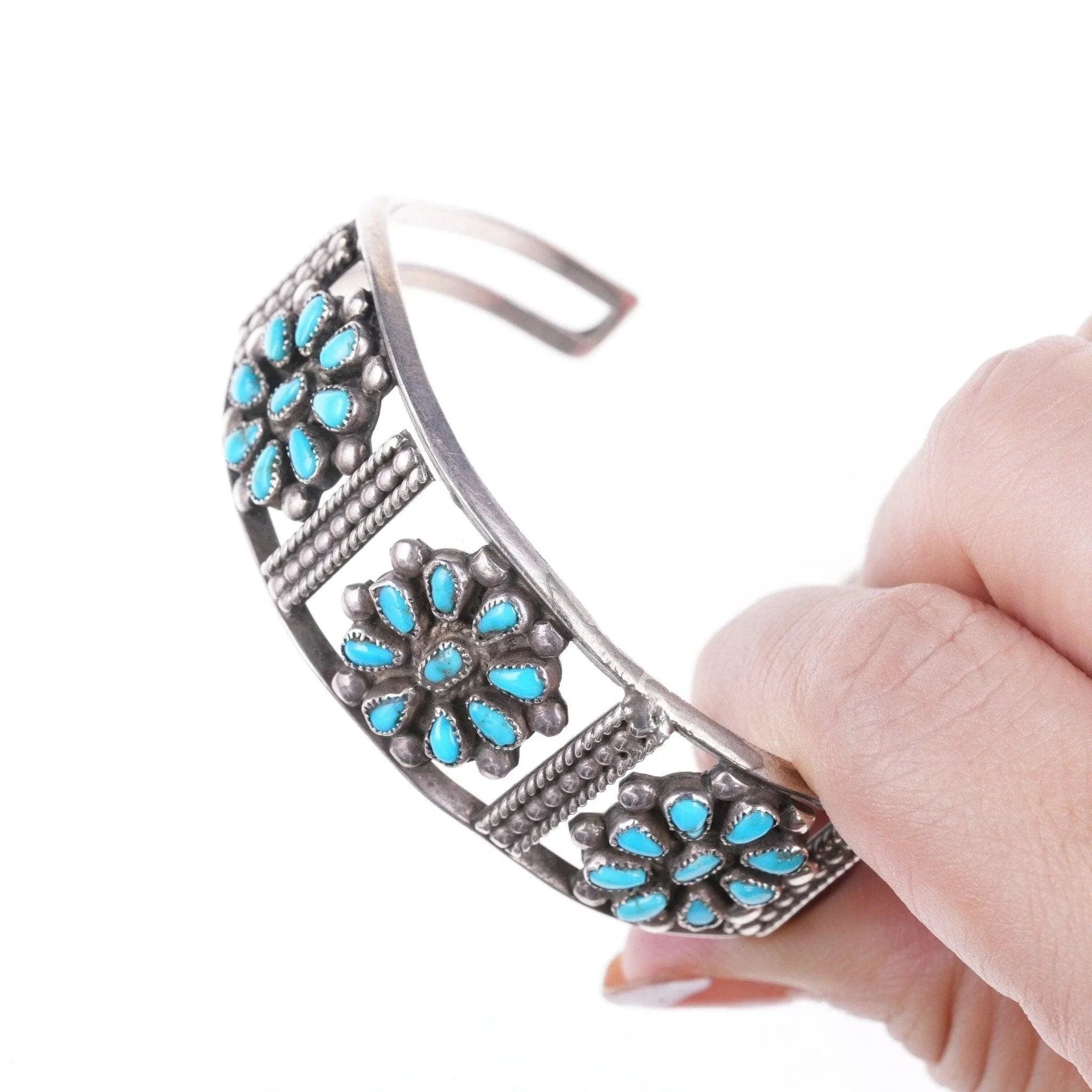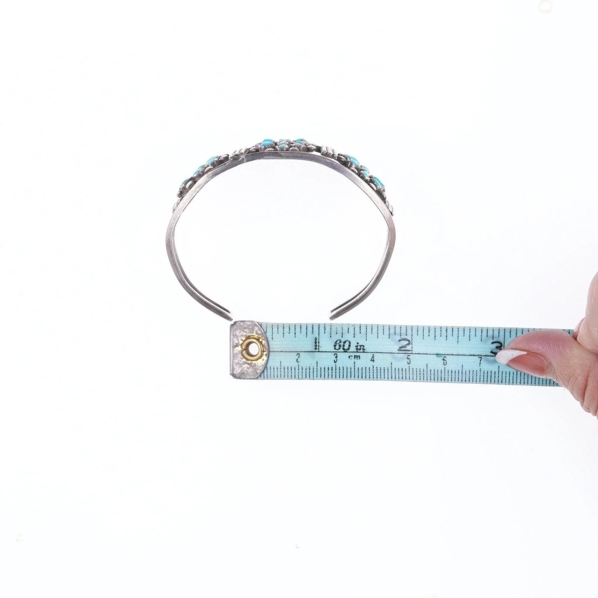 6.375" c1940's Native American silver and turquoise cluster cuff bracelet