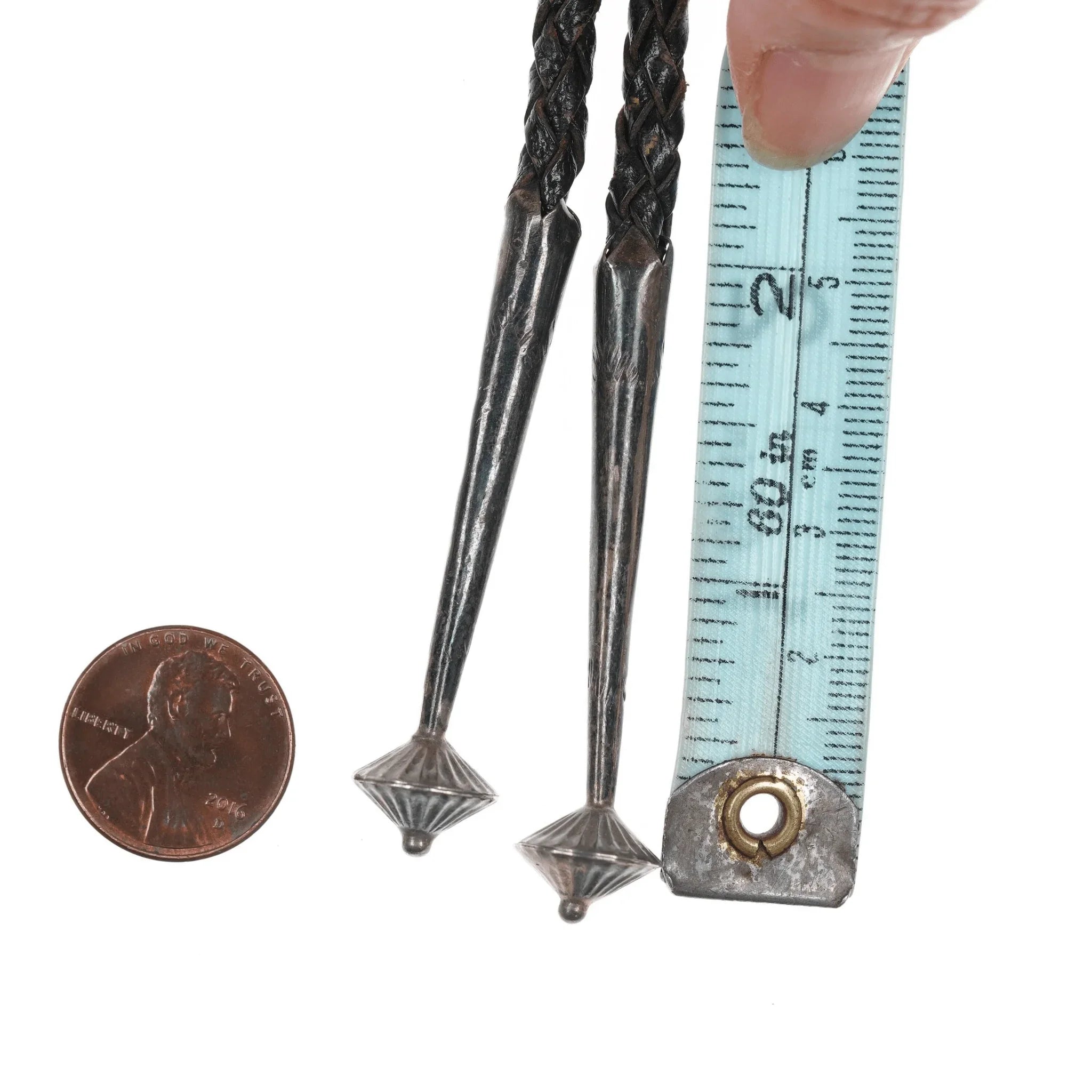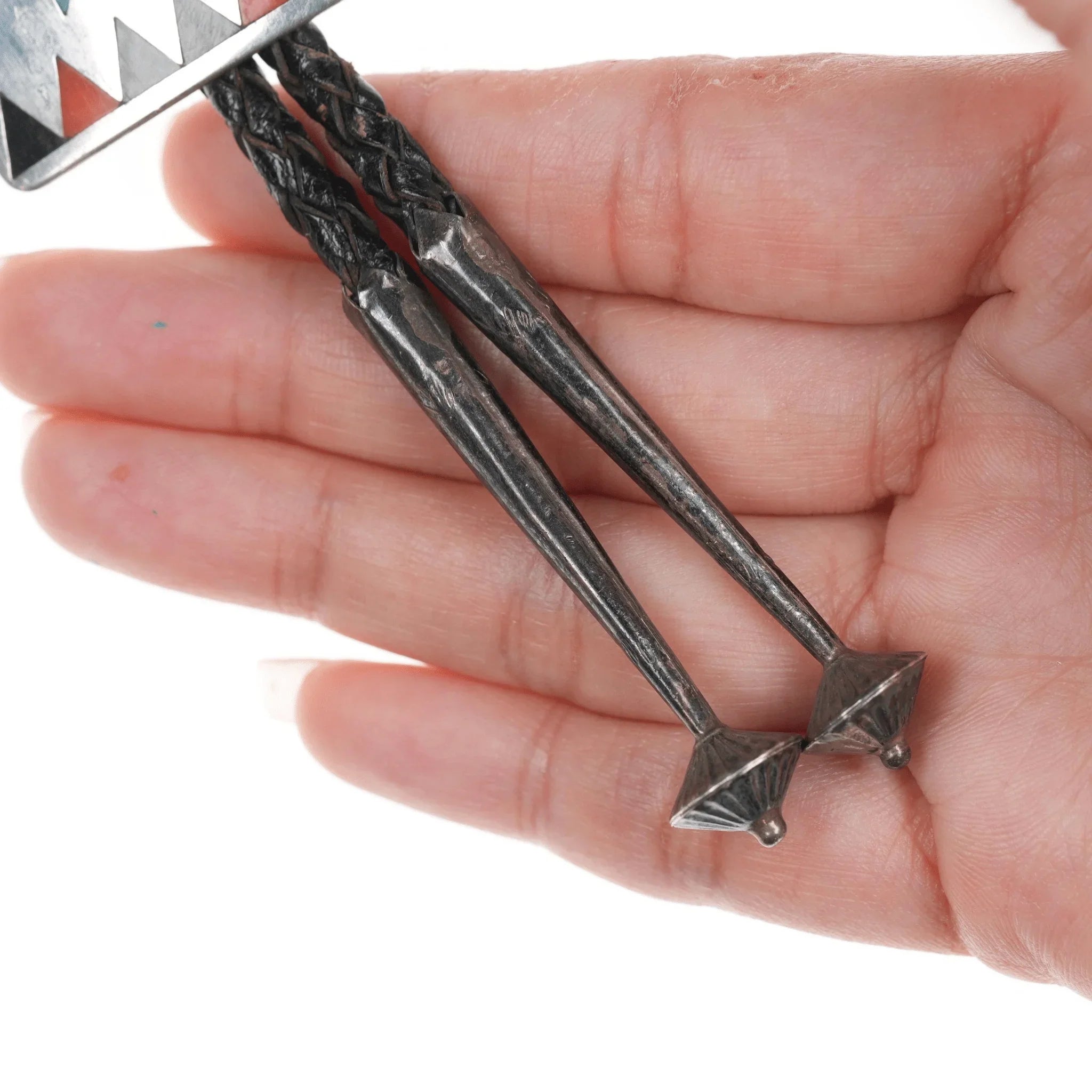 Fred and Lolita Natachu Zuni c1970's Sterling inlay bolo tie 40" long, everything else in pics.