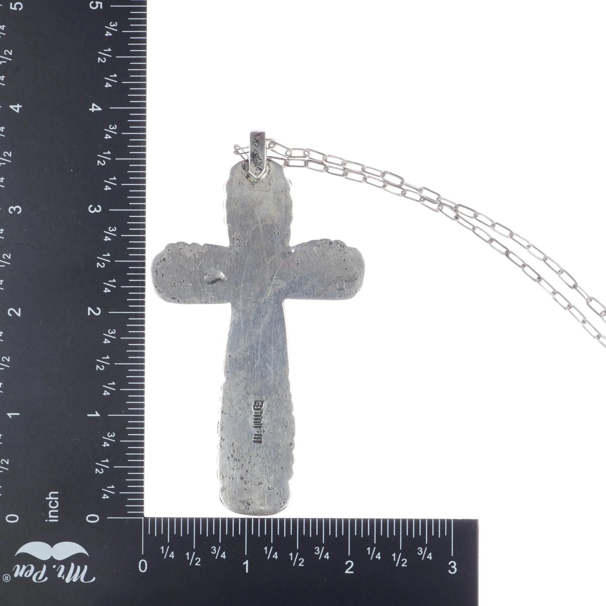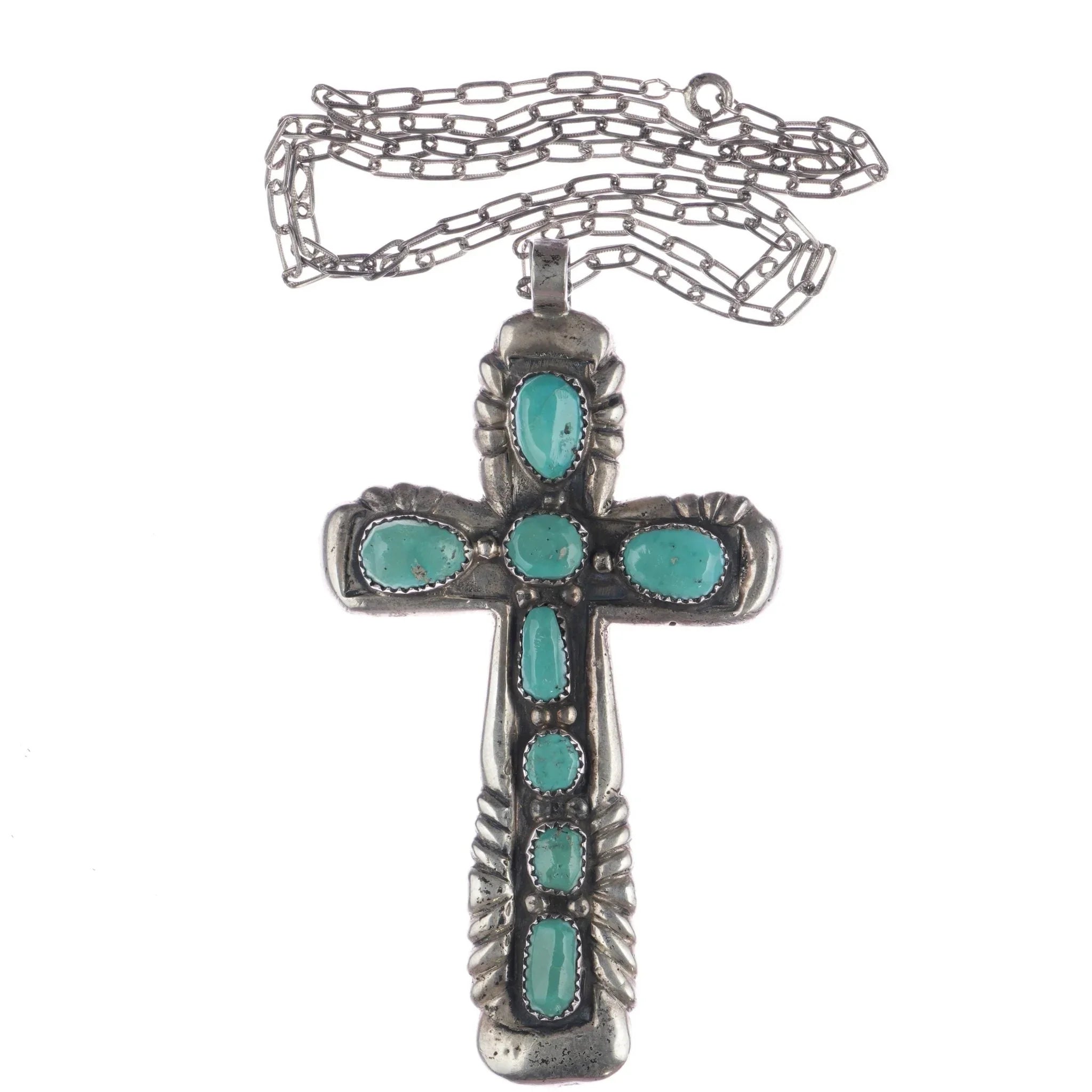 Horace Iule (1901-1978) Zuni Huge cast sterling and turquoise cross pendant. Throwing in 22" necklace. I have had quite a few Horace Iule crosses and never anything close to this size, very substantial with no issues. Weight and measurements in pics.