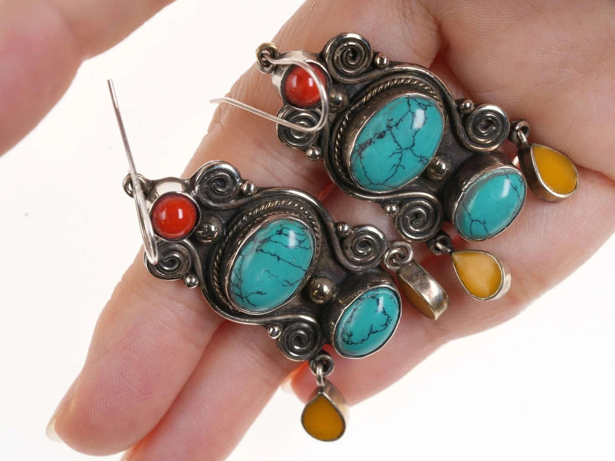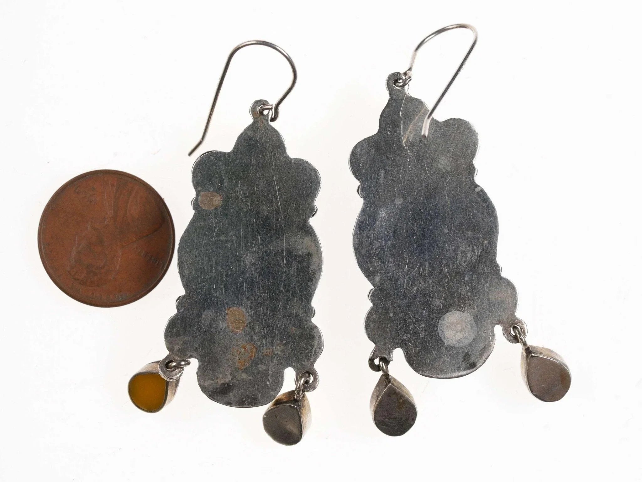 Howlite, Red Jasper, and Sterling Earrings.. Unmarked, tested sterling. 2.5" long 21 grams with no damage.