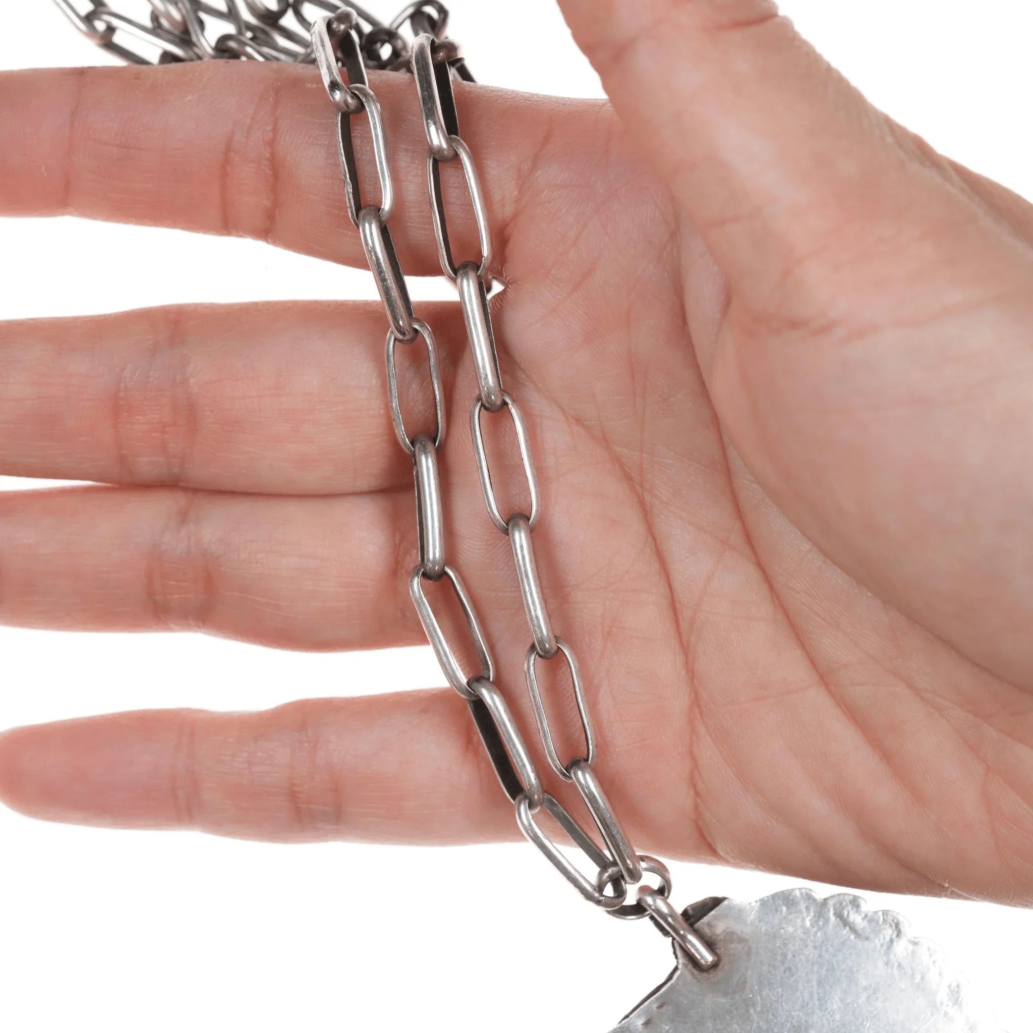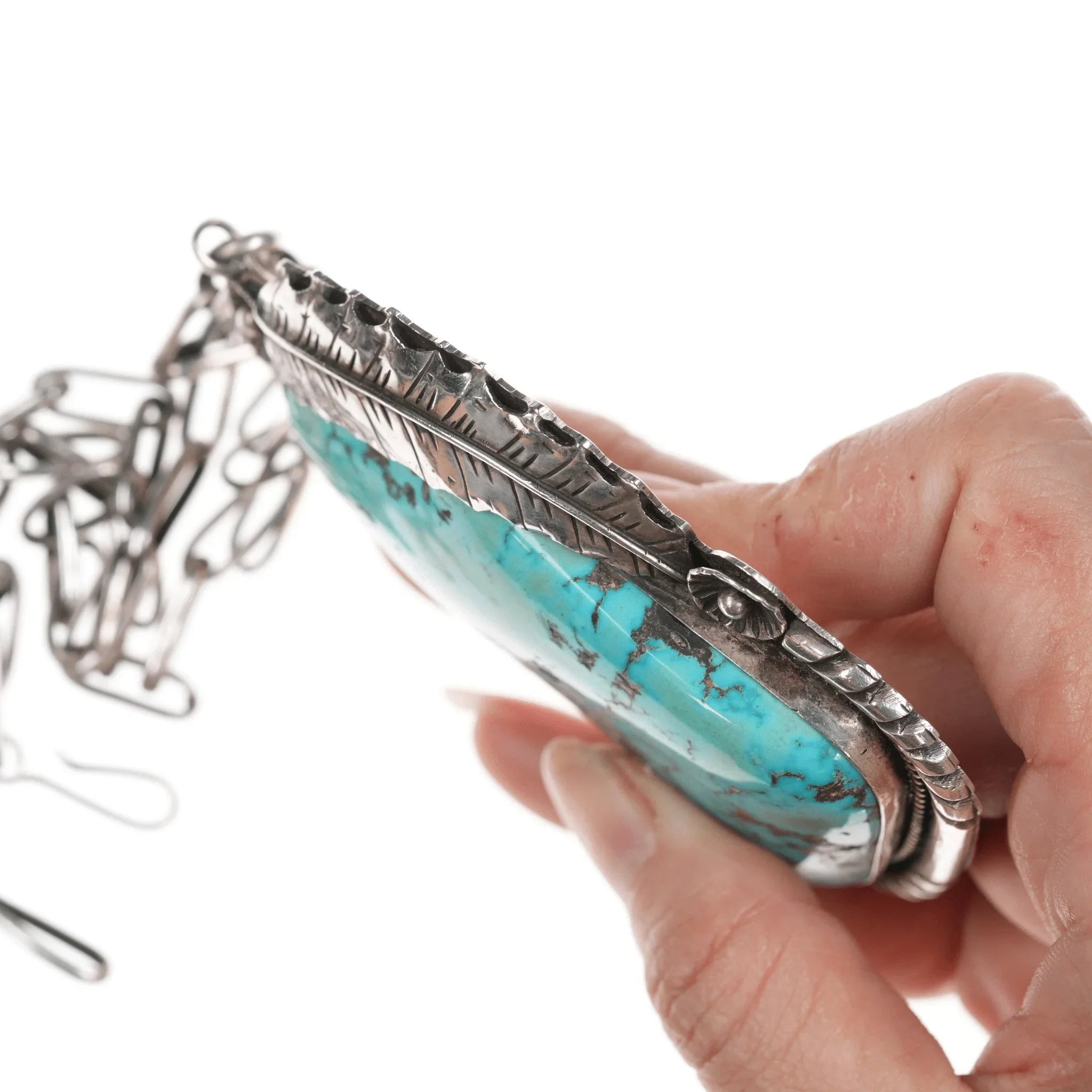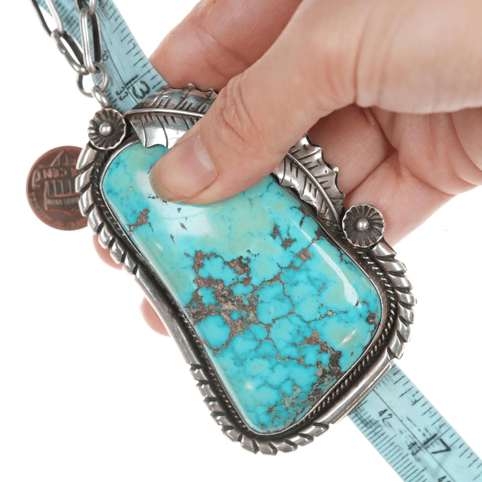 Huge Vintage Ivan V Navajo Turquoise silver pendant/necklace. Very substantial pendant and thick gauge necklace. Measurements in pics, no issues.