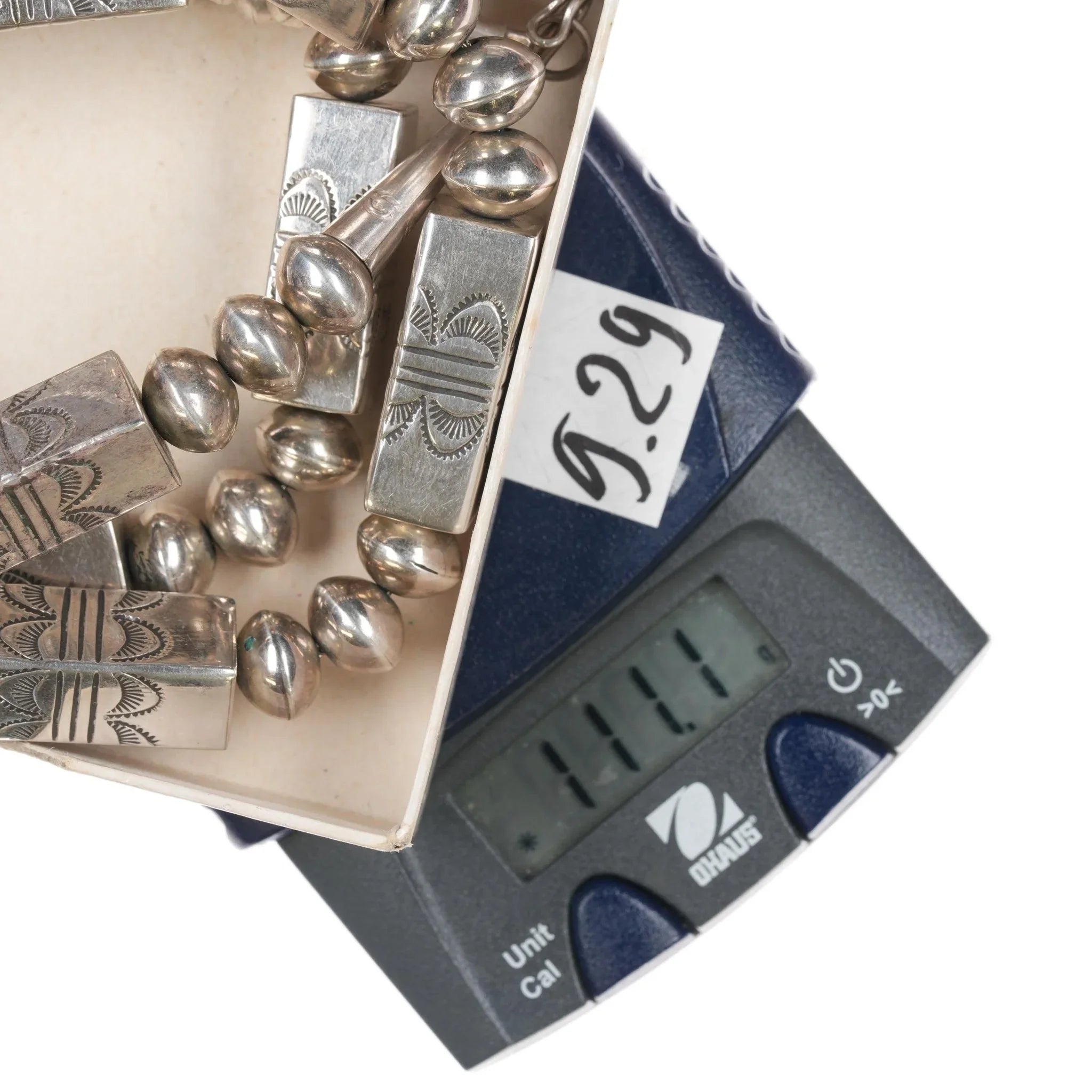 Jasper Nelson Navajo Pearl sterling beaded necklace 26.5" long. These pics don‘t do it justice. Very special necklace with no issues. Weight and measurements in pics.