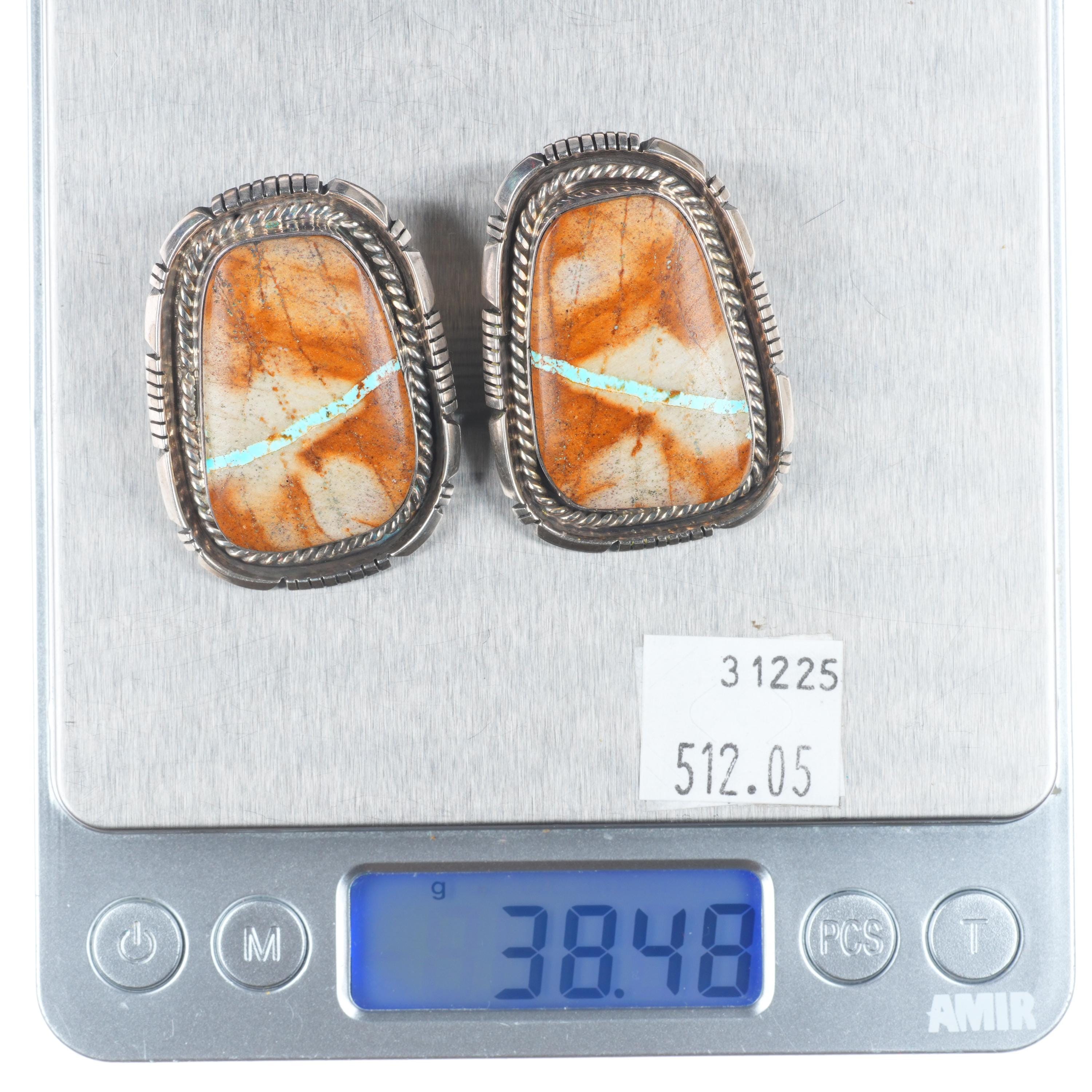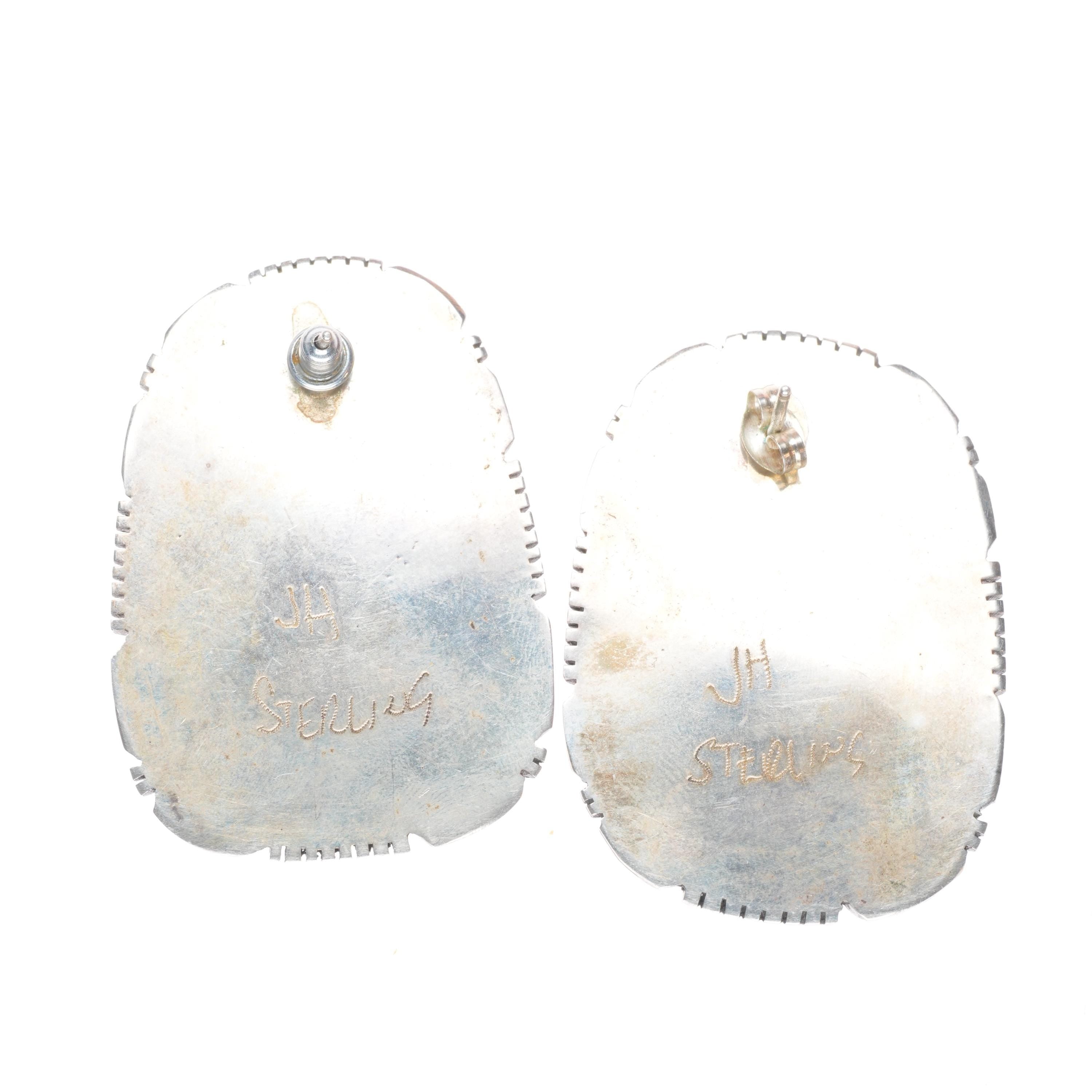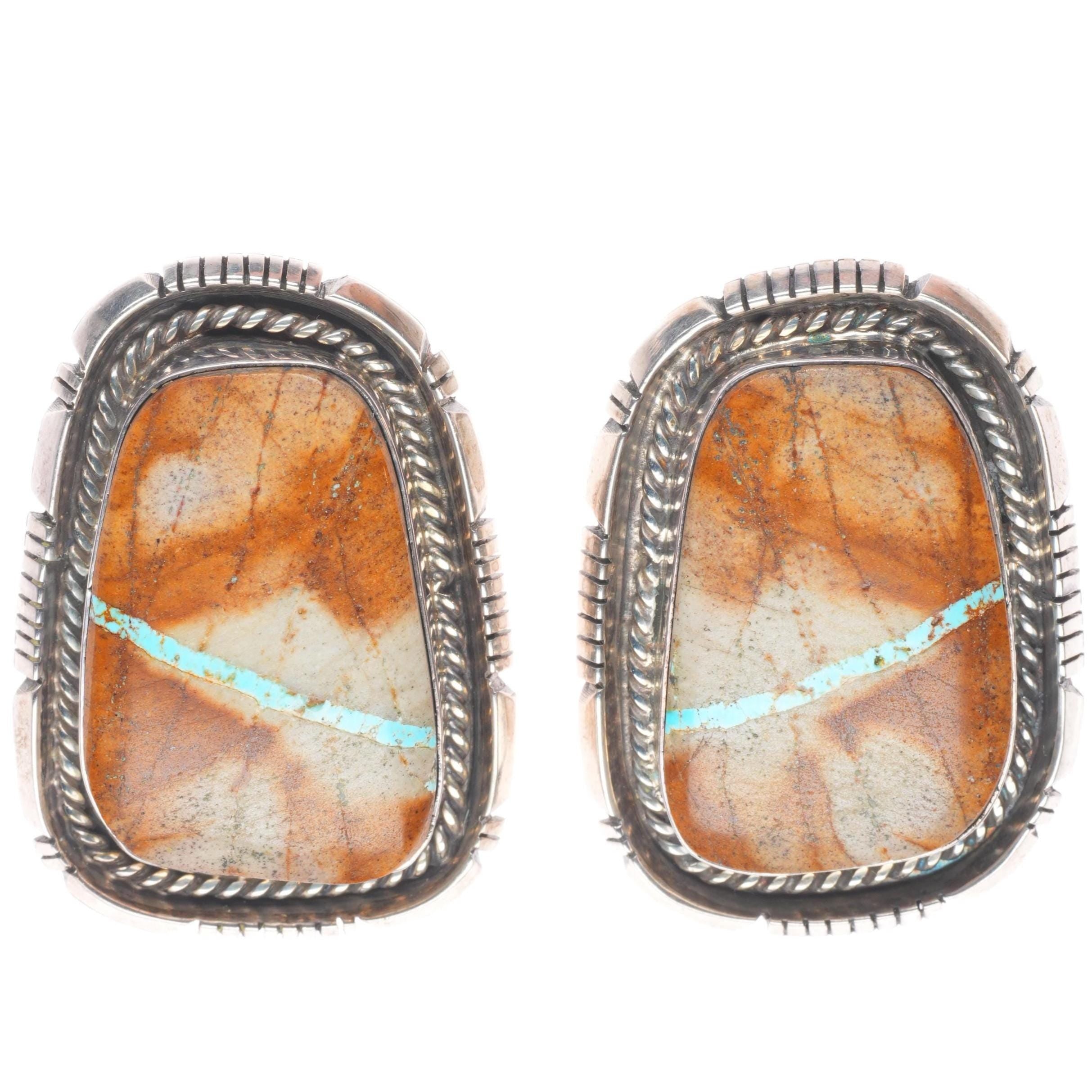 JH Navajo sterling silver ribbon boulder turquoise large earrings.. Great earrings, tested and guaranteed solid sterling silver with weight, and measurements will be shown in the pictures. Circa last quarter of the 20th century.